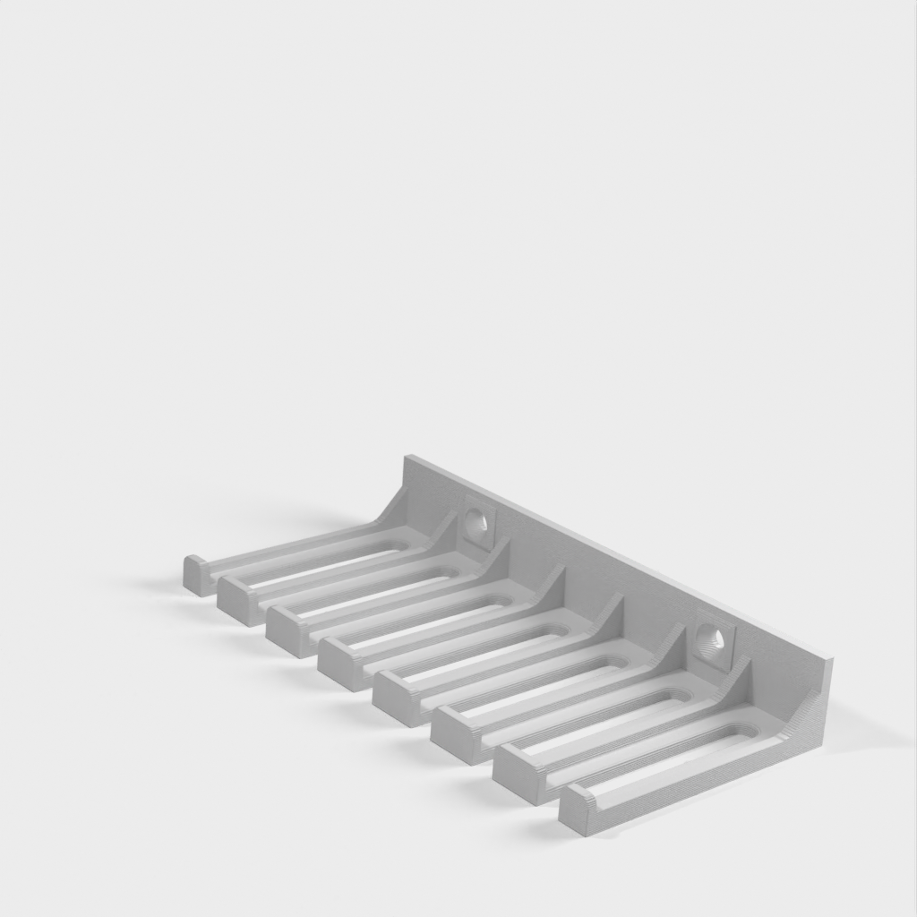 Dies ist ein Kabelhalter für Tischkabel. Das Design enthält Schraubenlöcher und ist für eine bessere Festigkeit um die Löcher herum verstärkt. Ideal für den Einsatz in Laboren und Büros, um Ihre Kabel organisiert und sicher aufzubewahren. Einfache Montage mit eigenen Schrauben. Das Produkt trägt dazu bei, Ihren Arbeitsbereich aufgeräumter und organisierter zu gestalten.