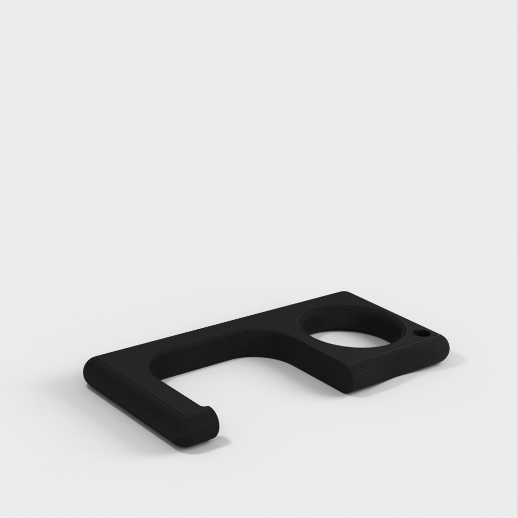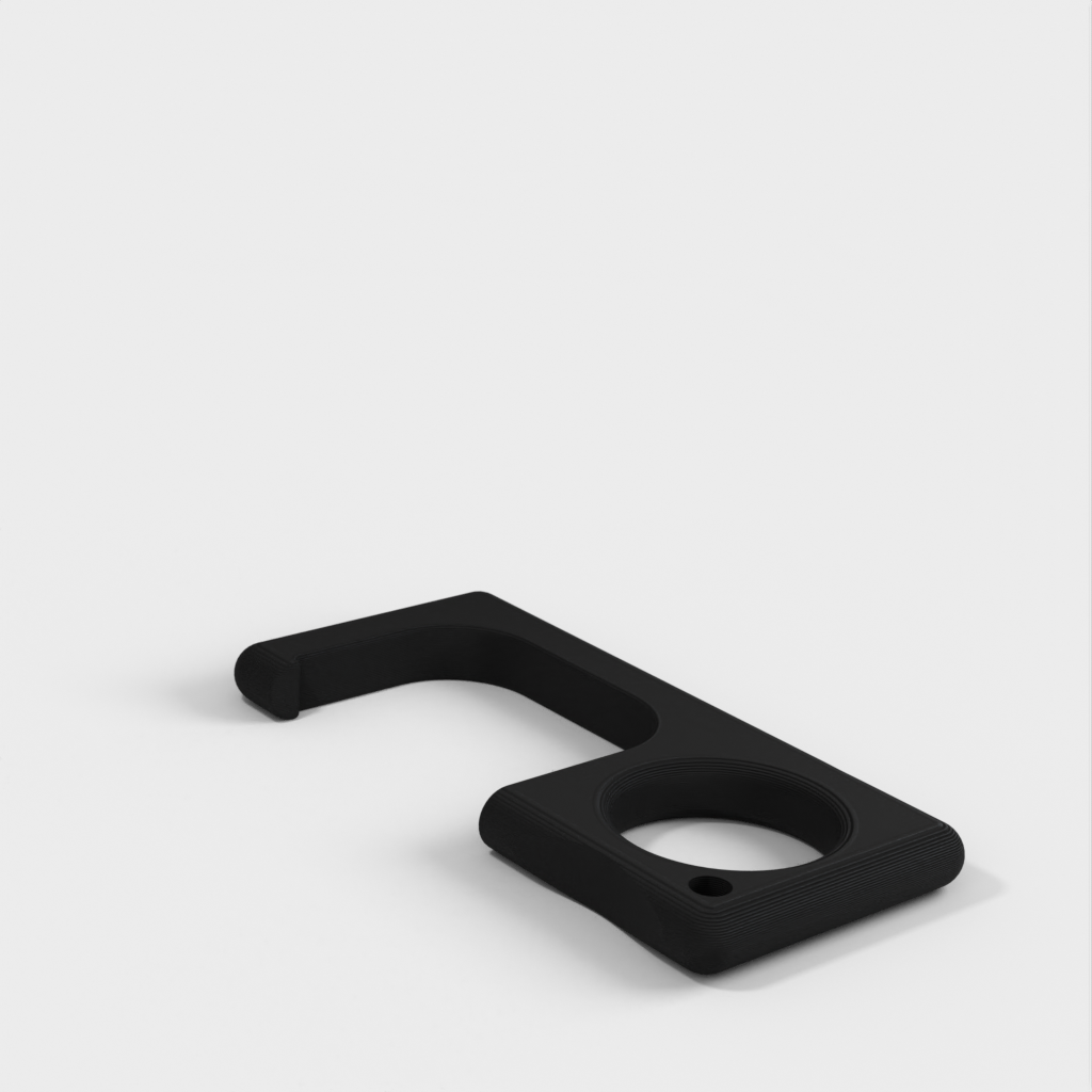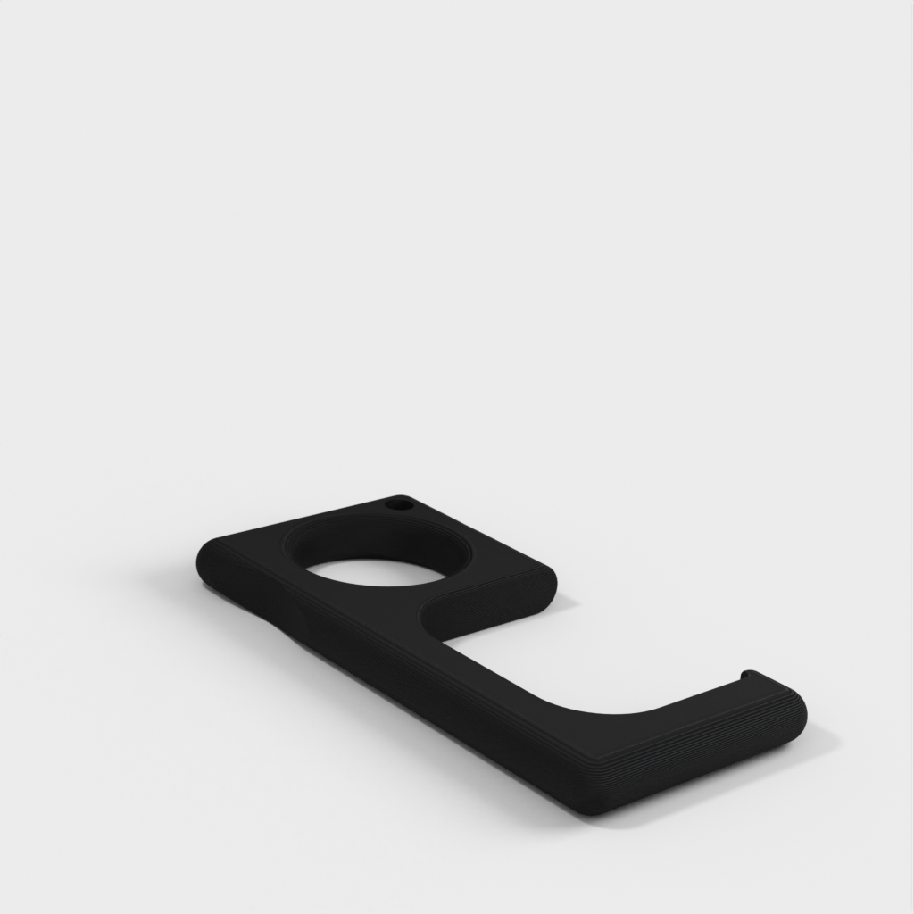 Ein einfacher Türgriff, der leicht an einem Schlüsselring befestigt werden kann. Es funktioniert mit den meisten Türgriffen. Bei schweren Türen kann es jedoch zum Bruch kommen, typischerweise in Industrie- oder bestimmten Gewerbegebäuden.