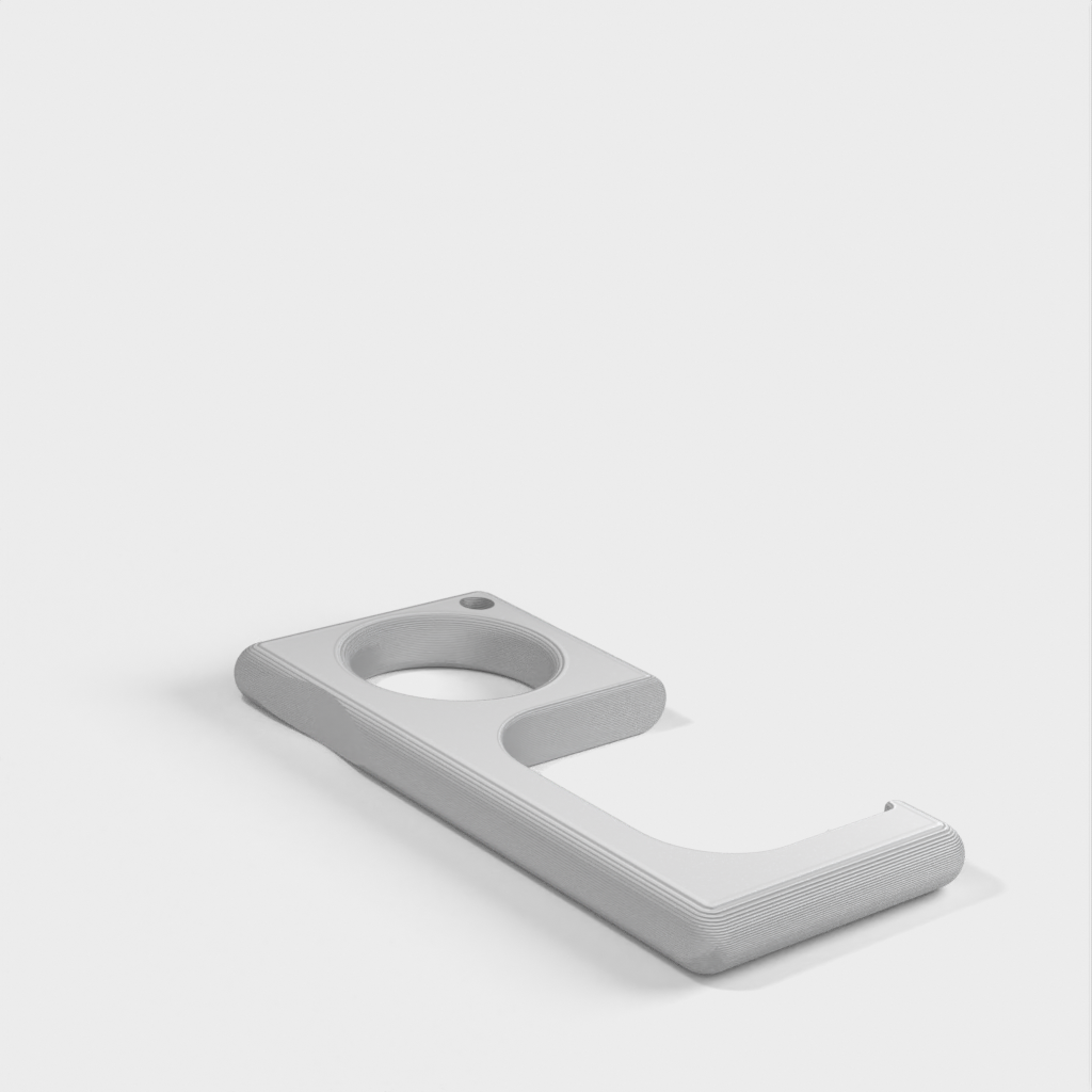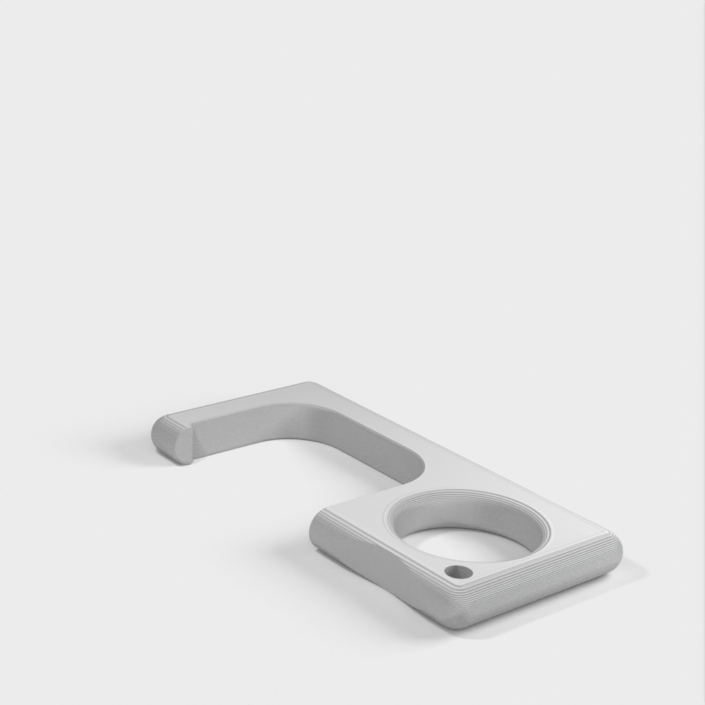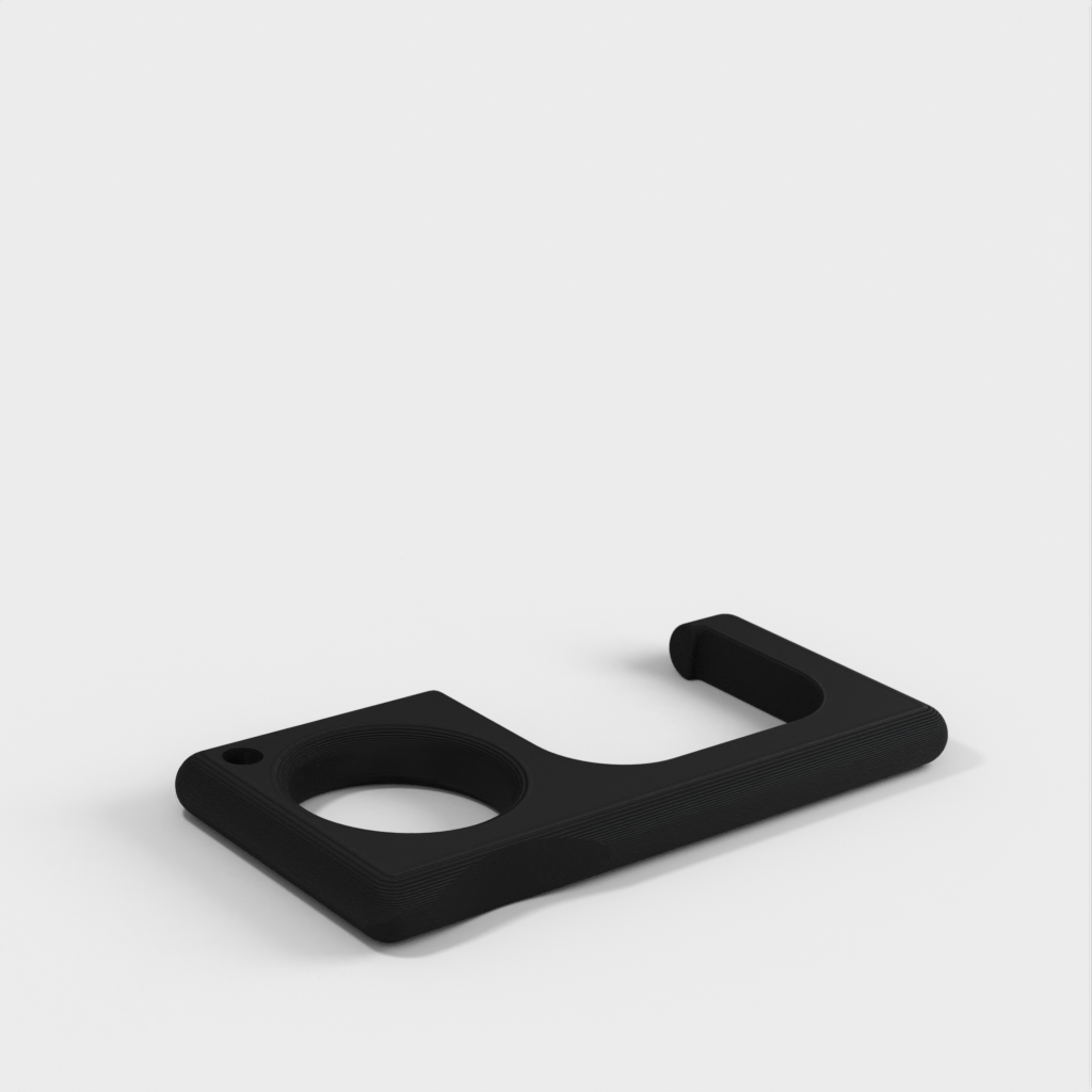 Ein einfacher Türgriff, der leicht an einem Schlüsselring befestigt werden kann. Es funktioniert mit den meisten Türgriffen. Bei schweren Türen kann es jedoch zum Bruch kommen, typischerweise in Industrie- oder bestimmten Gewerbegebäuden.