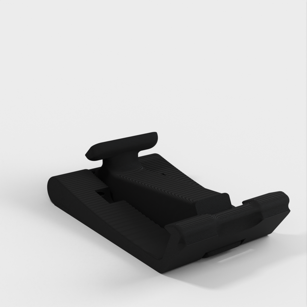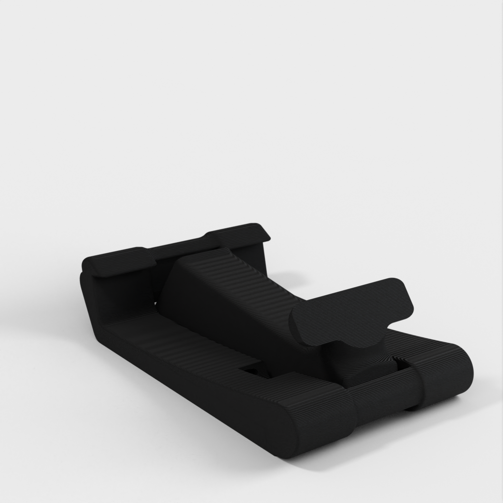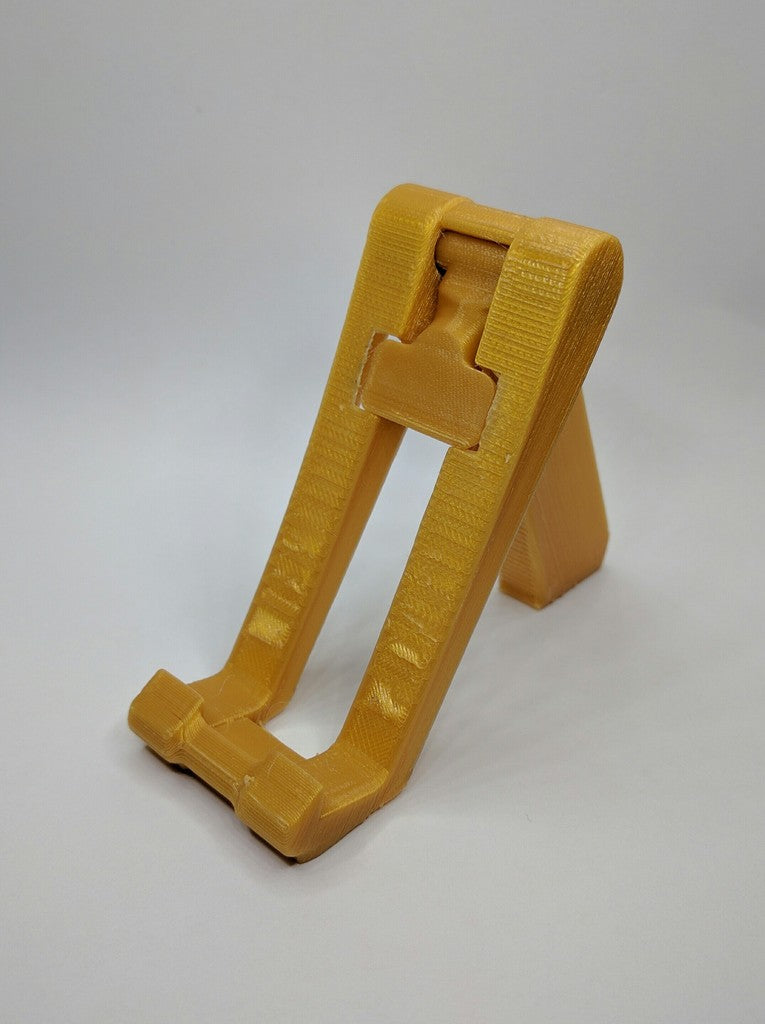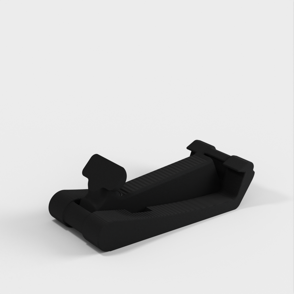 Dies ist ein faltbarer Ständer für Telefone/Smartphones. Ich brauchte einen kleinen, tragbaren Ständer, der auch auf Reisen ein größeres Smartphone tragen kann.