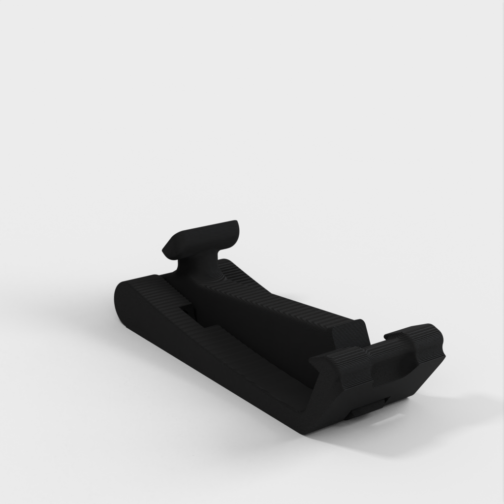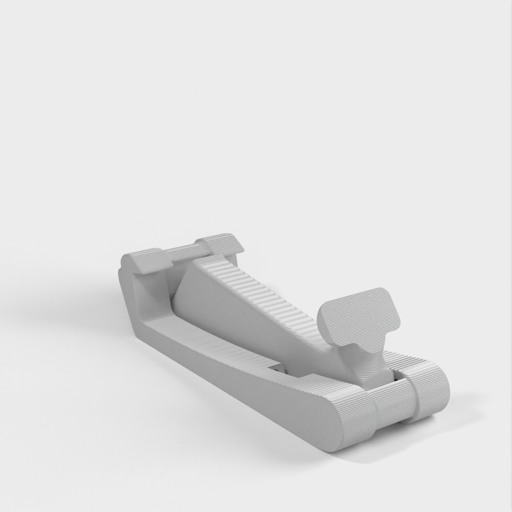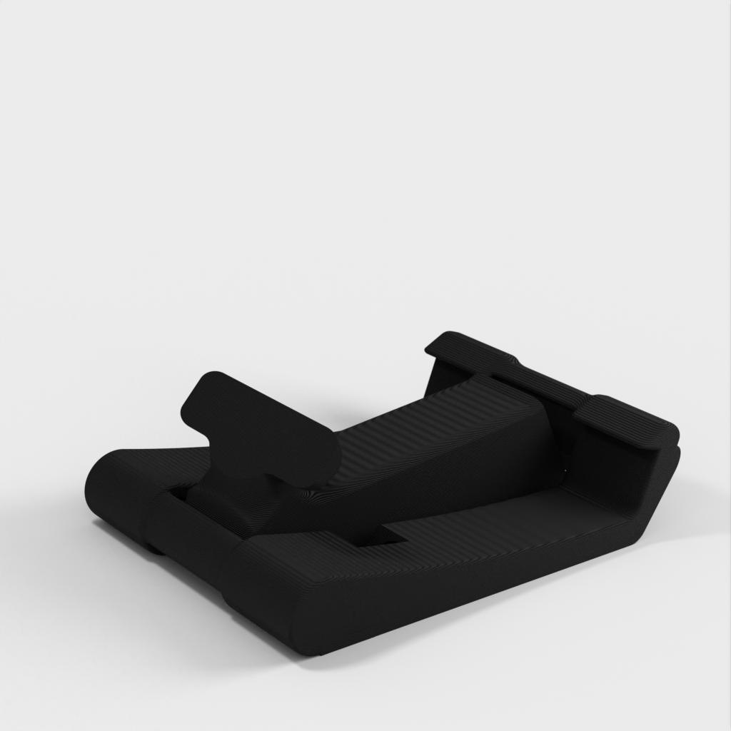 Dies ist ein faltbarer Ständer für Telefone/Smartphones. Ich brauchte einen kleinen, tragbaren Ständer, der auch auf Reisen ein größeres Smartphone tragen kann.