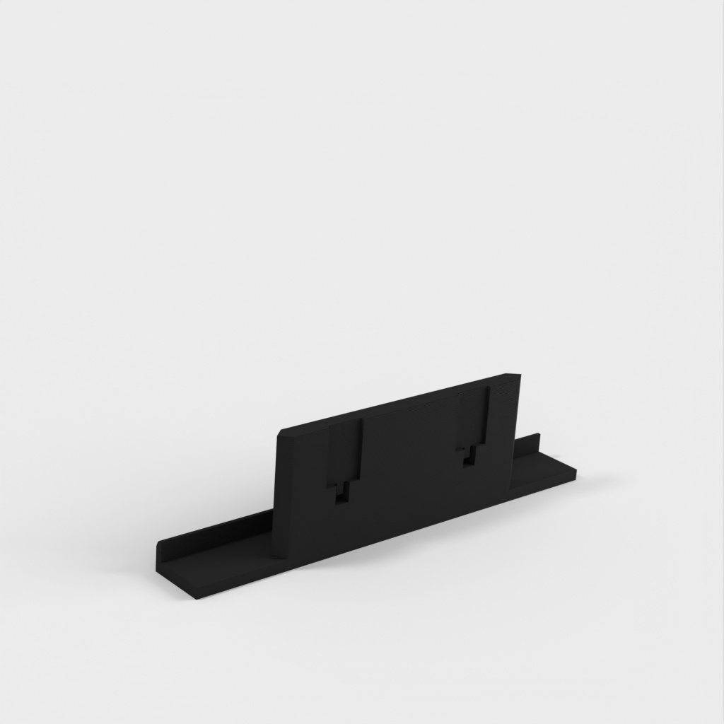 Robuste Wandhalterung für iPad 1 und 2, ideal für Ihre FHEM-Heizungssteuerung. Durch die einfache und sichere Anbringung an der Wand haben Sie stets Zugriff auf Ihre Heizungssteuerung. Durch Hochschieben lässt sich das iPad schnell und einfach aus der Halterung entfernen. Zur Montage werden Loom Bands in der Farbe Grün verwendet.