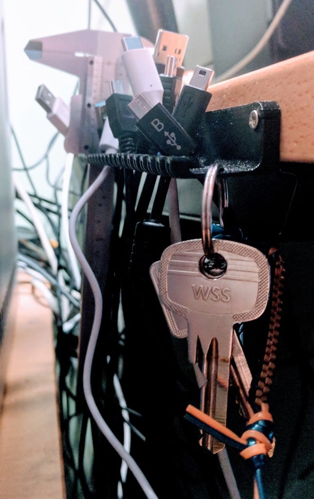 Ein Kabelhalter für den Schreibtisch. Mit dem Cable Management-Halter können Sie Kabel einfach organisieren und verstecken, um einen aufgeräumten Arbeitsplatz zu schaffen. Es hilft Ihnen, Ihren Schreibtisch frei von Unordnung zu halten und steigert Ihre Effizienz.