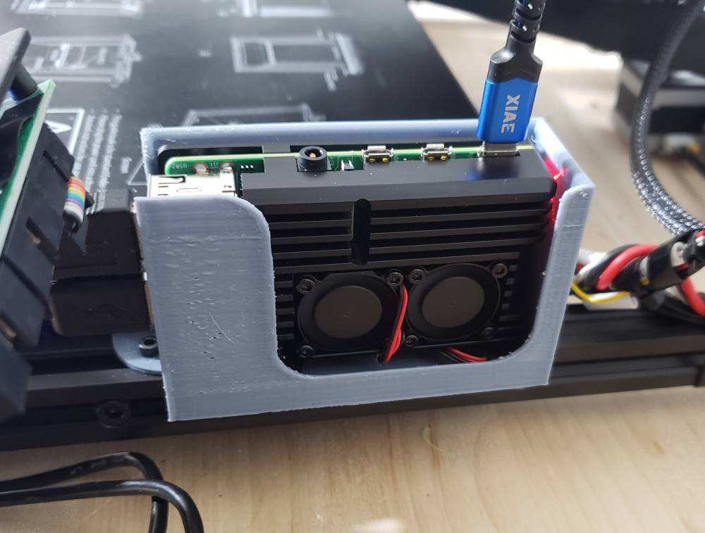 Eine Tasche für Raspberry Pi 4, komplett mit Kühlrippen zur Montage an einem Drucker. Es passt perfekt zum Raspberry Pi 4, um eine ordnungsgemäße Kühlung und einfachen Zugang zu gewährleisten. Diese Tasche ermöglicht die sichere und organisierte Aufbewahrung Ihres Raspberry Pi 4 und Ihrer Kühlkörper.