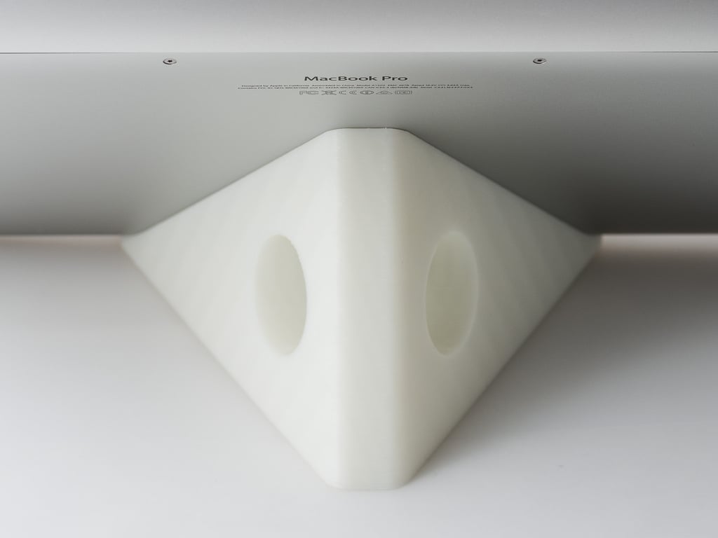 Ständer für 13" MacBook Pro Retina aus dem Jahr 2013. Erhöht den Bildschirm und hält ihn vertikal, ideal für die Verwendung mit einer externen Tastatur/Maus. Perfekt zur Optimierung Ihres Arbeitsplatzes und für eine bequemere Position bei längerem Arbeiten.