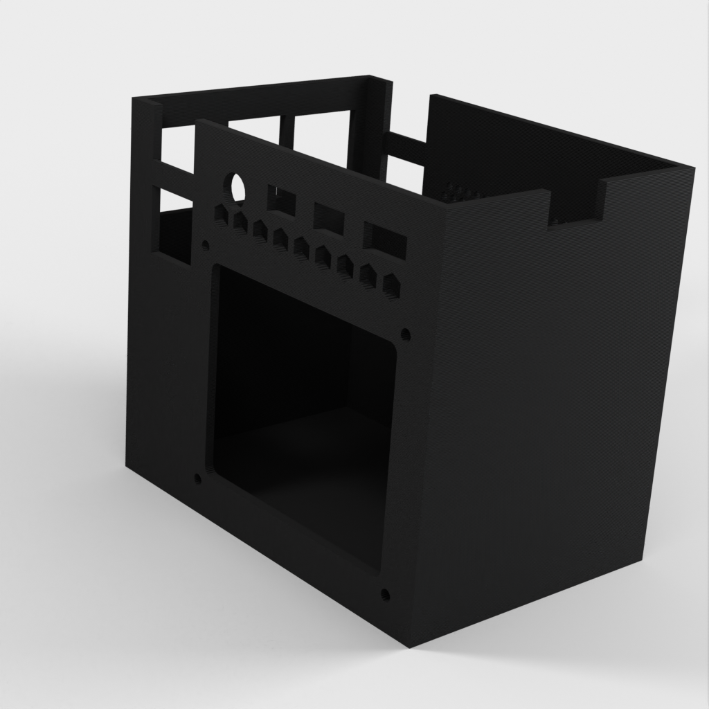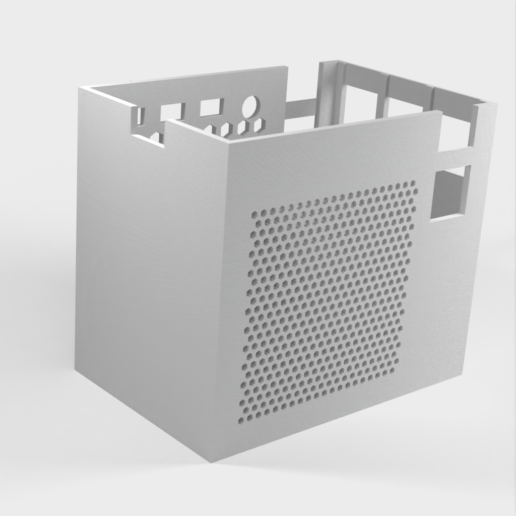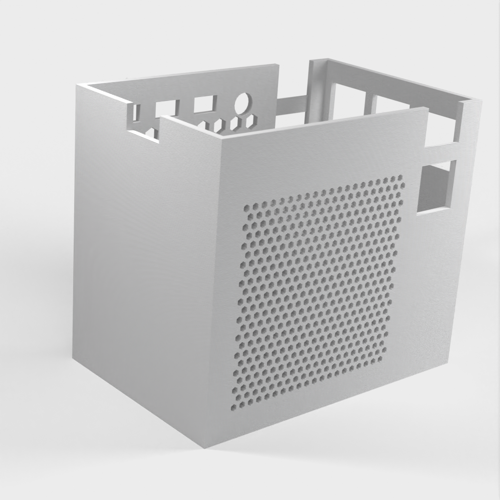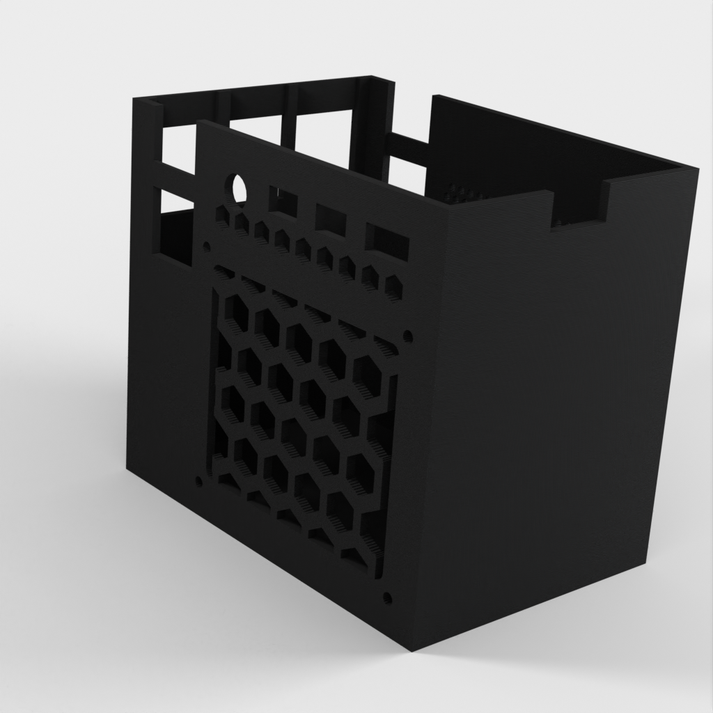 Dies ist ein minimalistisches Gehäuse für den Raspberry Pi 4, in das ein Ice Tower-Kühler passt. Das obere Design der Box hat auf der Rückseite größere Sechsecke, die das Bedrucken erleichtern. Nach dem Drucken können diese Sechsecke entfernt werden, um dem Gehäuse ein schöneres Aussehen zu verleihen, indem die Acrylplatte, die mit dem Ice Tower-Kühler geliefert wird, an der Seite des Gehäuses montiert wird. Die Clips und der Boden der Box wurden angepasst, um besser zu passen und mehr Durchmesser von Gummifüßen zu unterstützen.