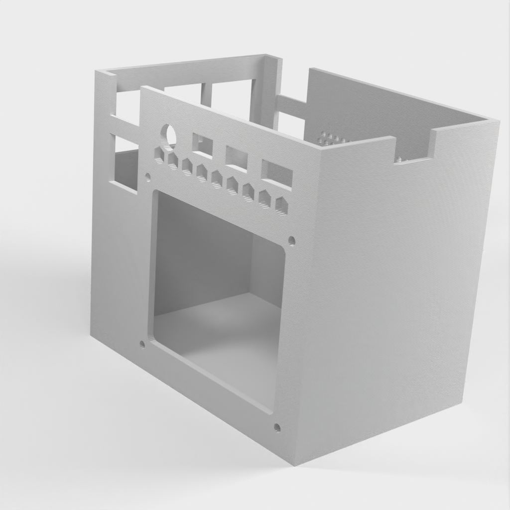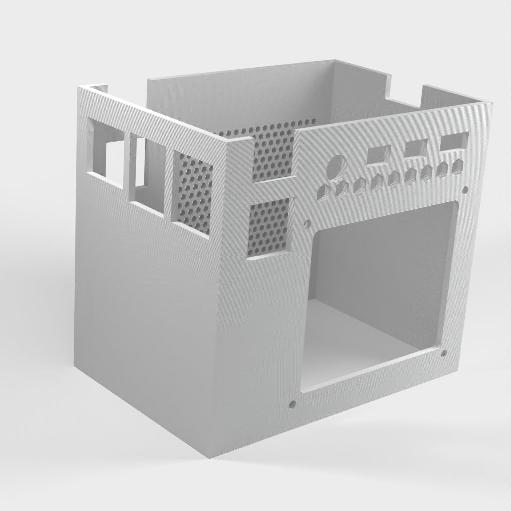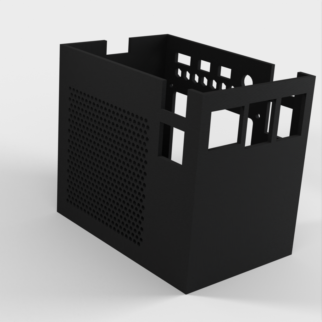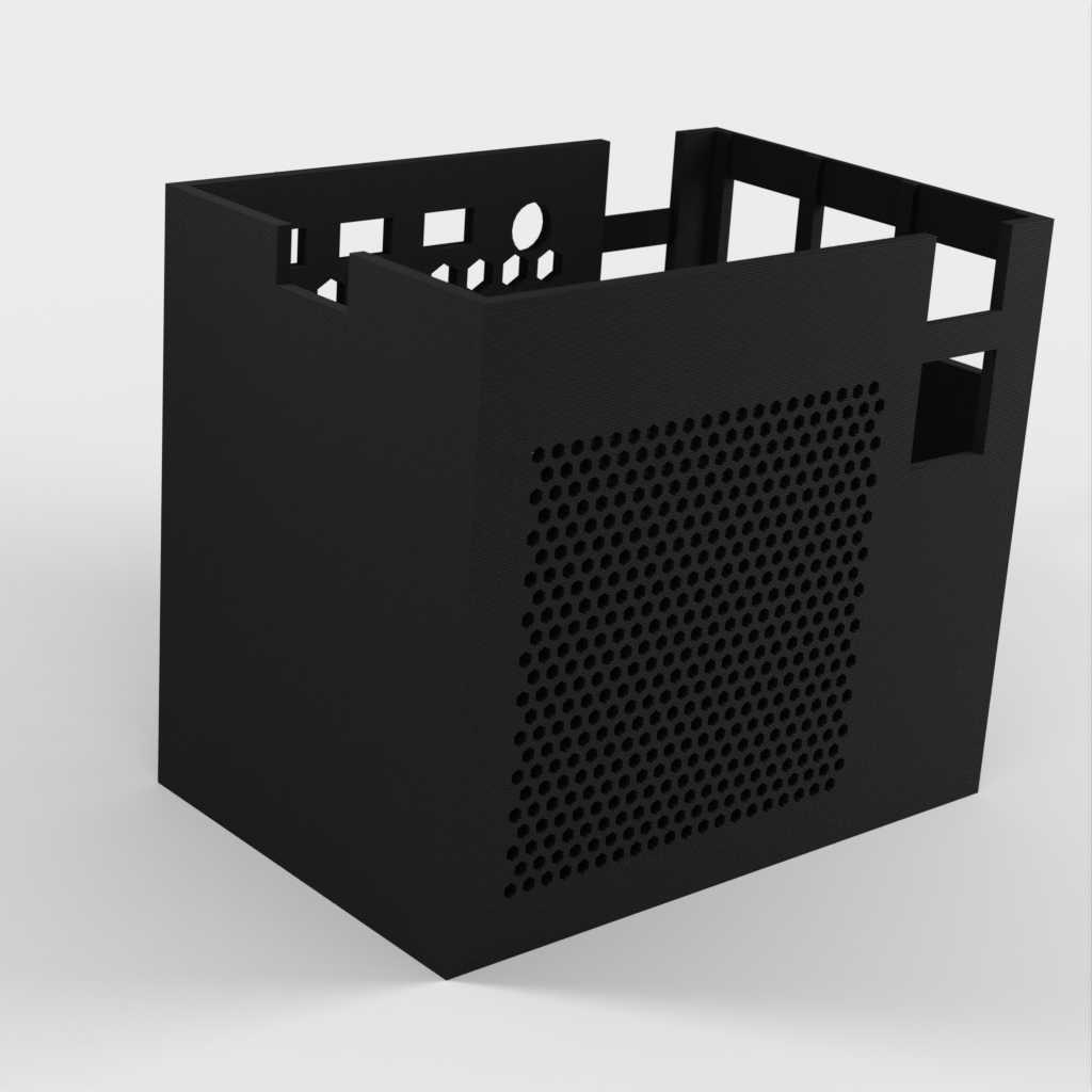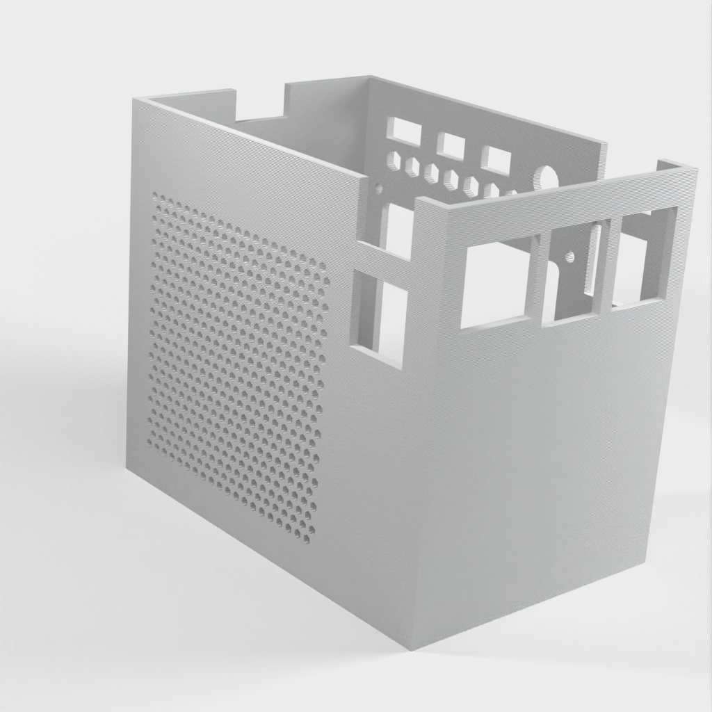 Dies ist ein minimalistisches Gehäuse für den Raspberry Pi 4, in das ein Ice Tower-Kühler passt. Das obere Design der Box hat auf der Rückseite größere Sechsecke, die das Bedrucken erleichtern. Nach dem Drucken können diese Sechsecke entfernt werden, um dem Gehäuse ein schöneres Aussehen zu verleihen, indem die Acrylplatte, die mit dem Ice Tower-Kühler geliefert wird, an der Seite des Gehäuses montiert wird. Die Clips und der Boden der Box wurden angepasst, um besser zu passen und mehr Durchmesser von Gummifüßen zu unterstützen.