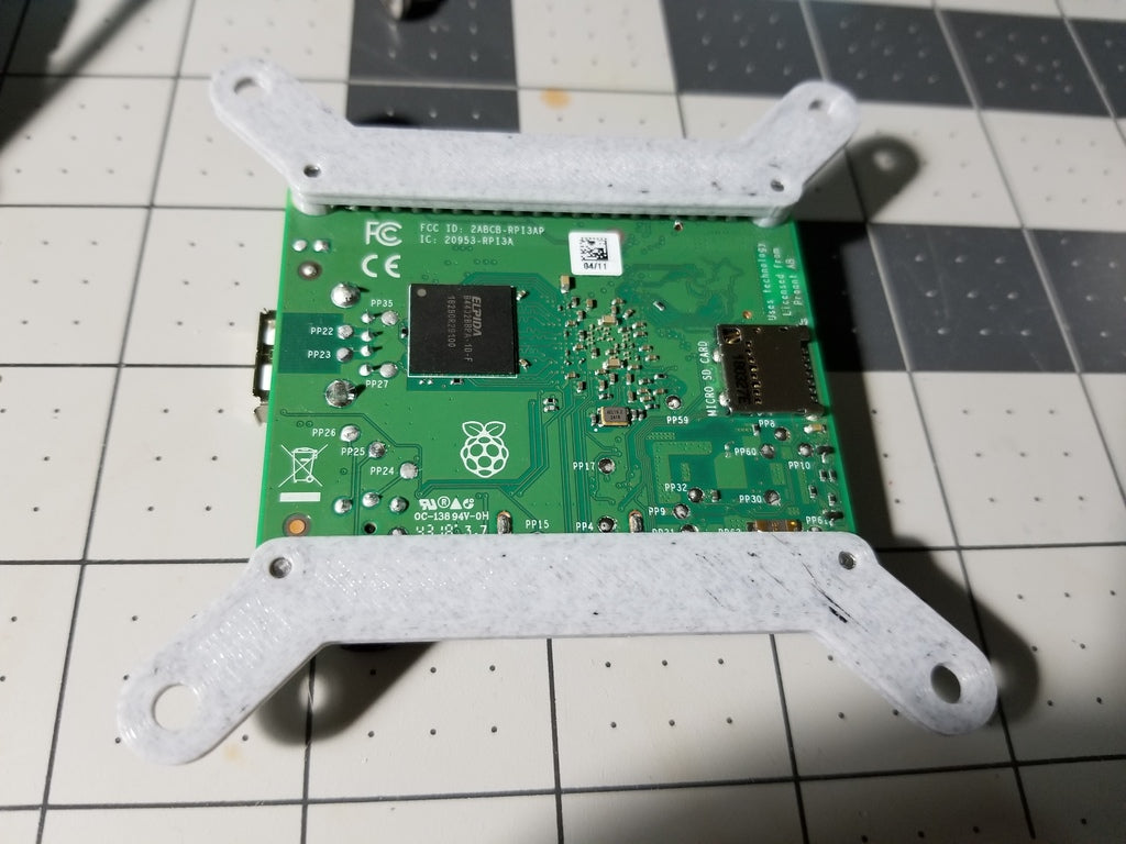 Die Halterungen können auch mit anderen Einplatinencomputern mit einem Lochmuster von 49 mm x 58 mm verwendet werden, wie zum Beispiel dem Tinker Board, Odroid C2 oder C4, Rock Pi usw.