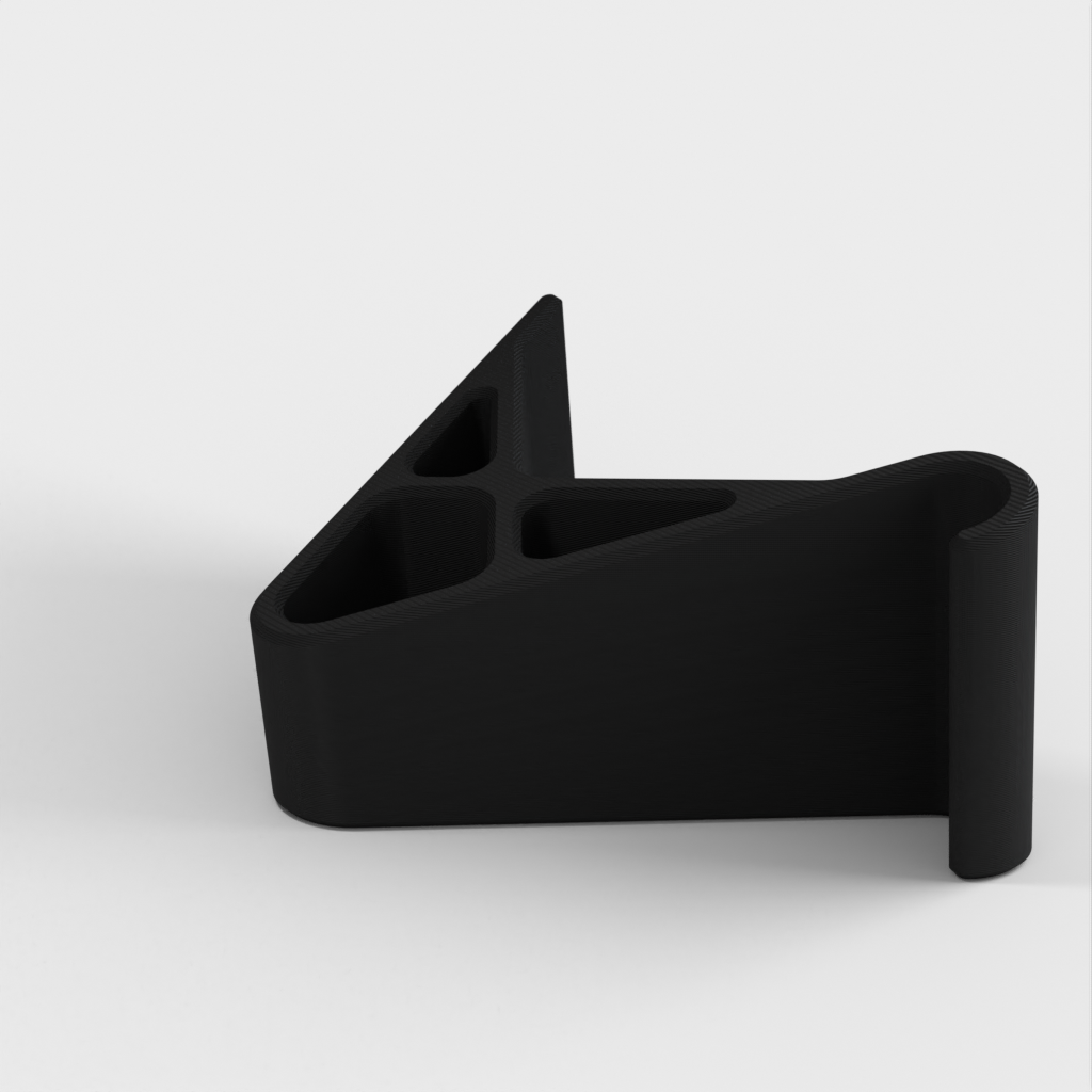 Schlichte und elegante Halterung für Ihr Tablet oder Mobiltelefon. Der moderne Telefonhalter ist so konzipiert, dass er sowohl Android- als auch iPhone-Geräte unterstützt. Es hält Ihr Gerät sicher an Ort und Stelle, sodass Sie beim Ansehen von Filmen, beim Tätigen von Videoanrufen, beim Surfen im Internet oder beim Befolgen eines Rezepts die Hände frei haben können. Er kann auch als Ständer für Tablets nützlich sein, sodass Sie Ihr Gerät problemlos in einem bequemen Betrachtungswinkel platzieren können.
