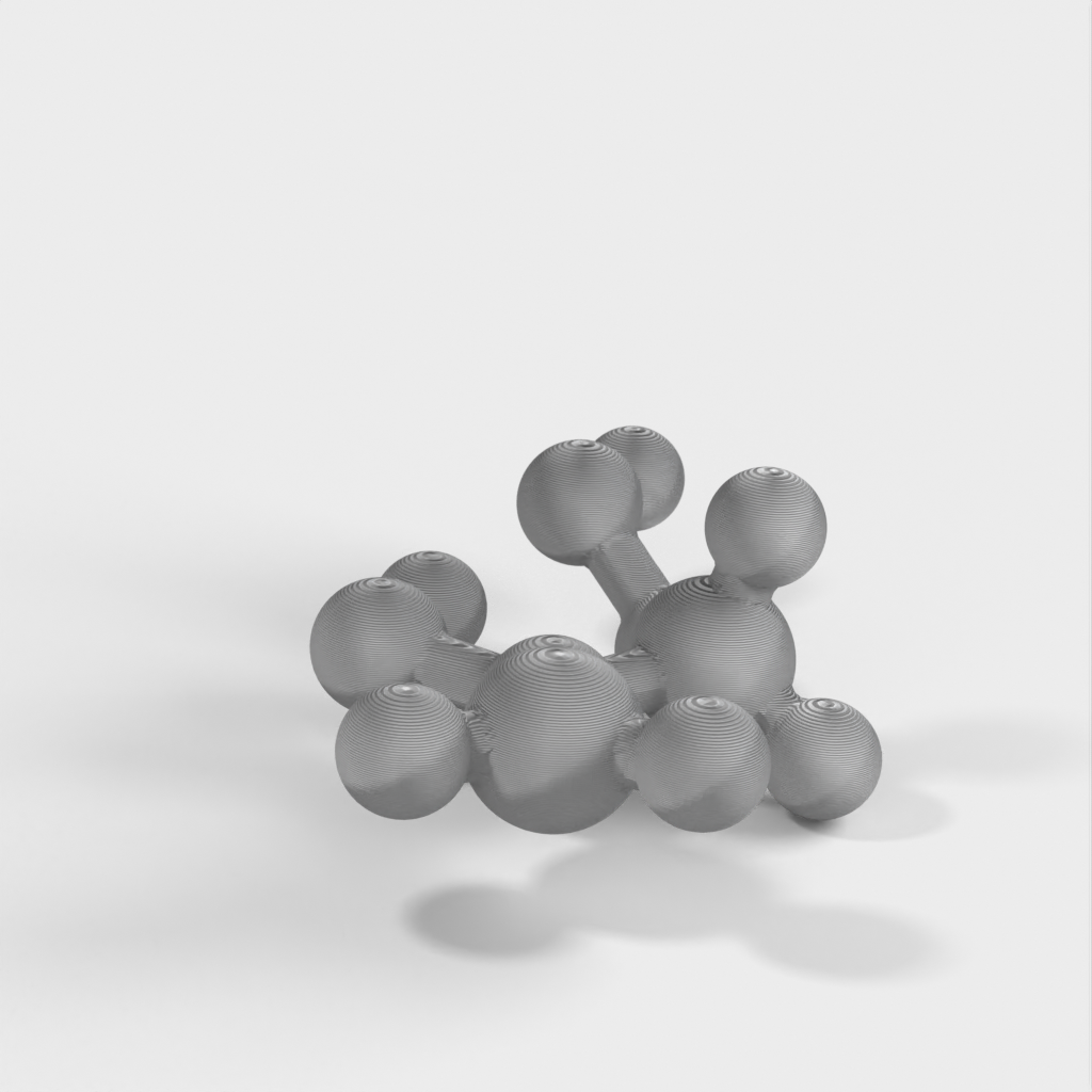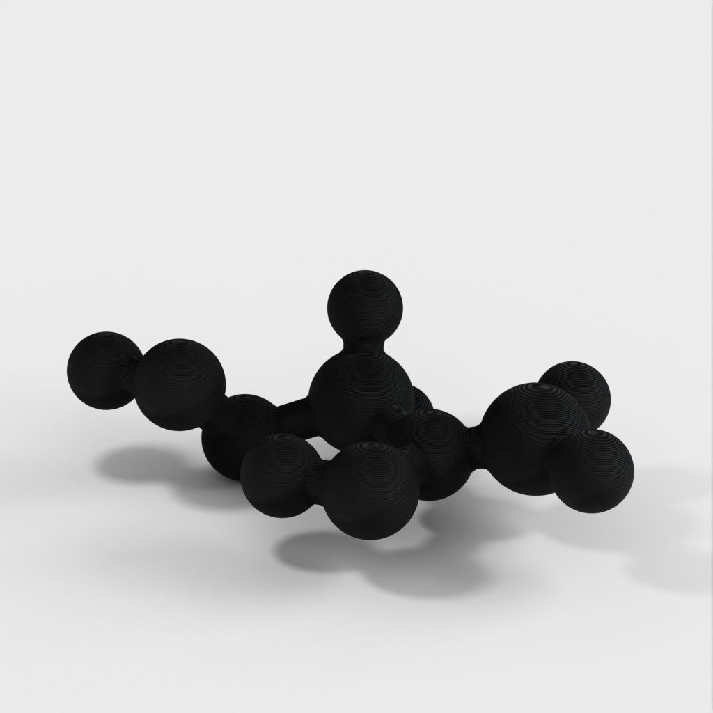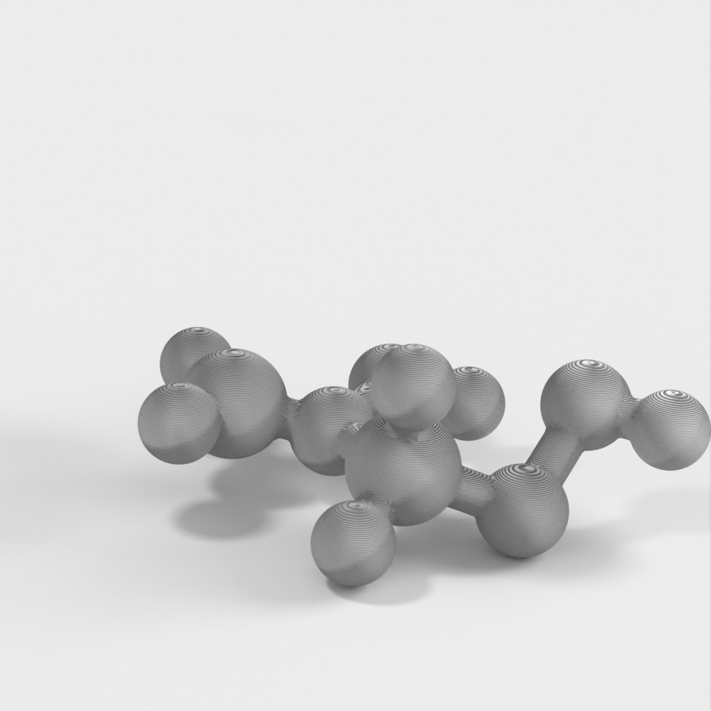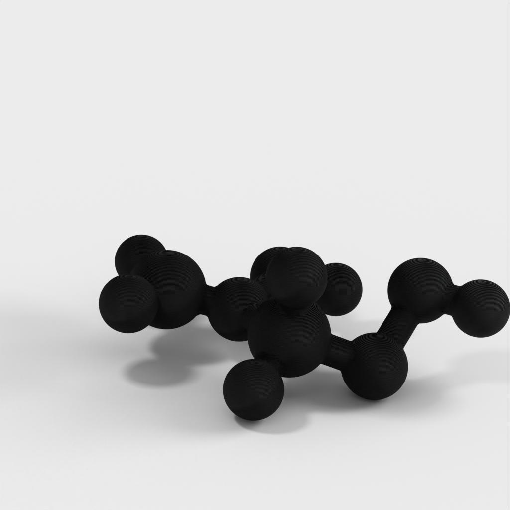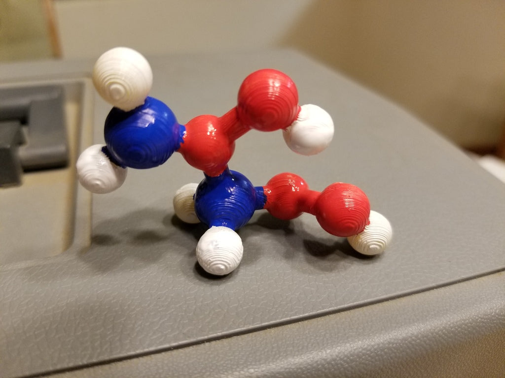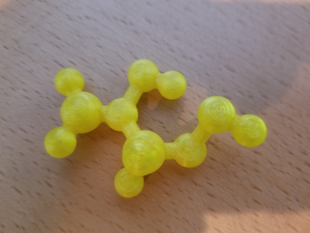 Dies ist ein molekulares Modell von Vinylacetat. Das Modell wird verwendet, um Kindern etwas über Chemie beizubringen, insbesondere über Polyvinylacetat (PVA), den weißen Kleber, der in der Grundschule zur Herstellung von Schleim verwendet wird. Dieses Modell vermittelt ein visuelles Bild davon, was im Schleim enthalten ist.