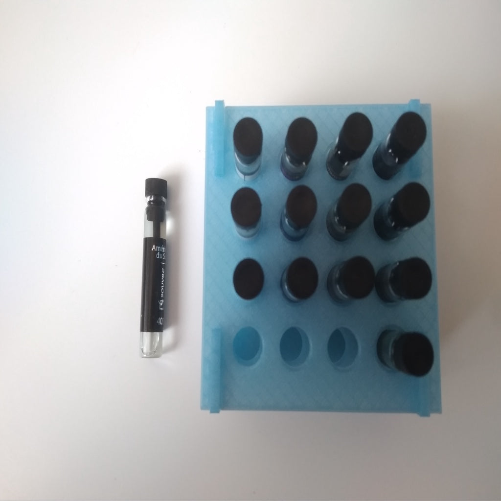 Probenhalter für Parfümflakons bieten Platz für bis zu 16 Proben und eignen sich für Proben mit einem Durchmesser von ca. 8 mm. Dieser praktische Halter sorgt für Ordnung in Ihren Proben und kann problemlos auf einem Regal oder Tisch platziert werden.