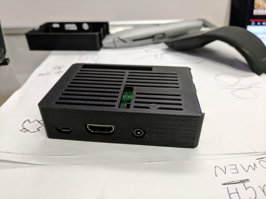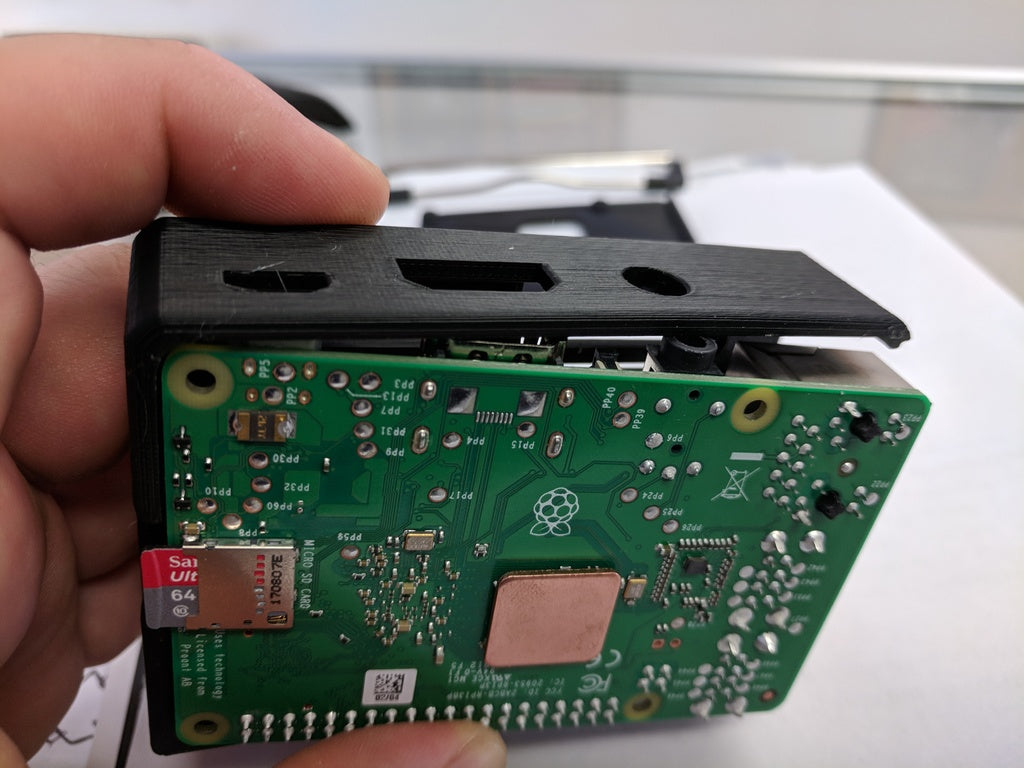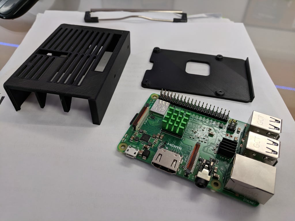 • Specialdesignet kabinet, der giver plads til en Raspberry Pi 3 B+ med ekstra køleelementer.