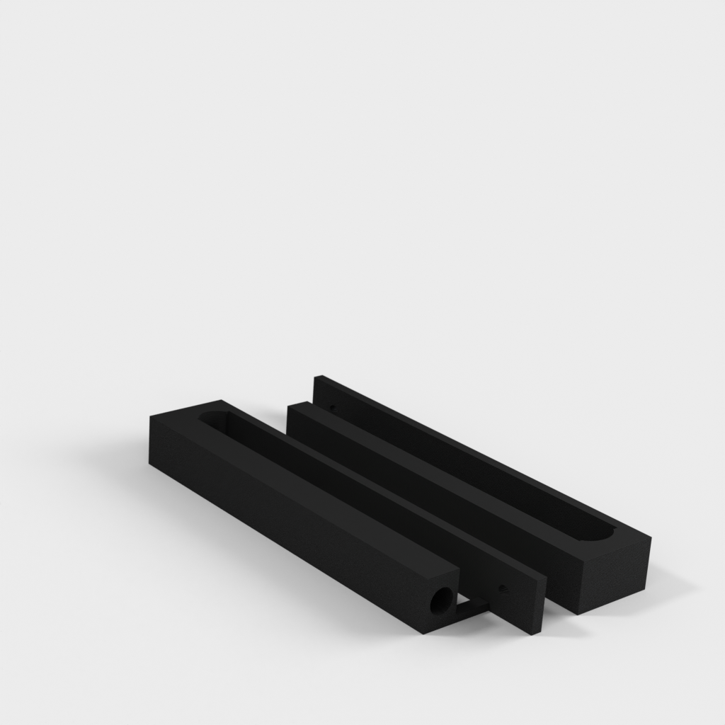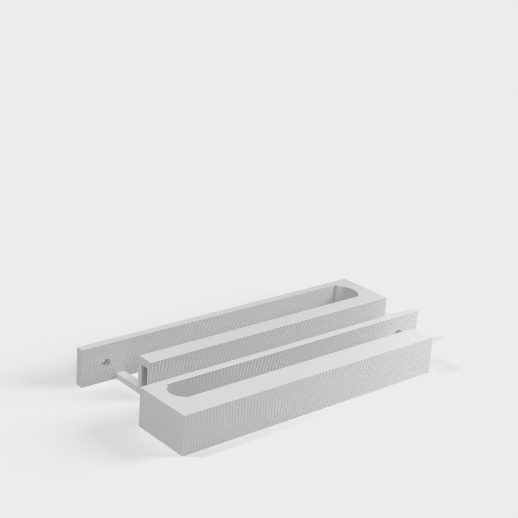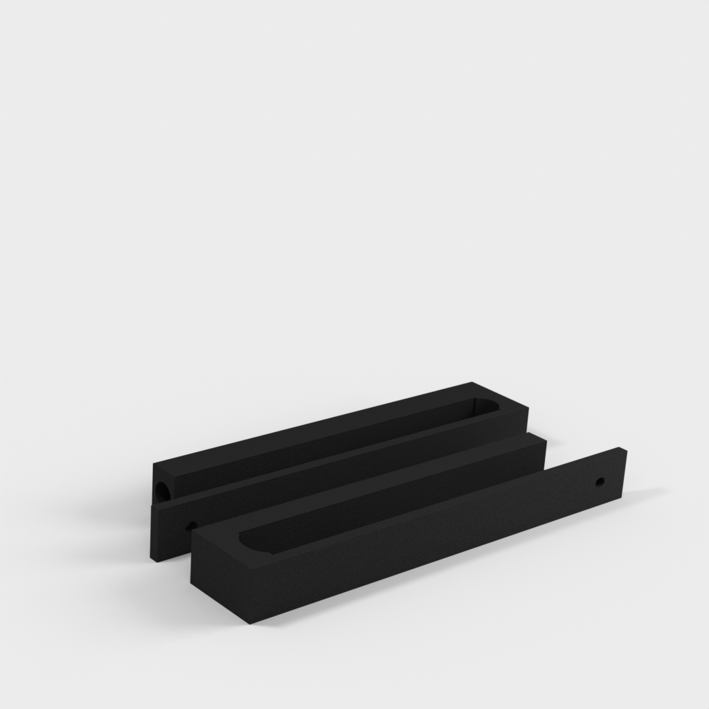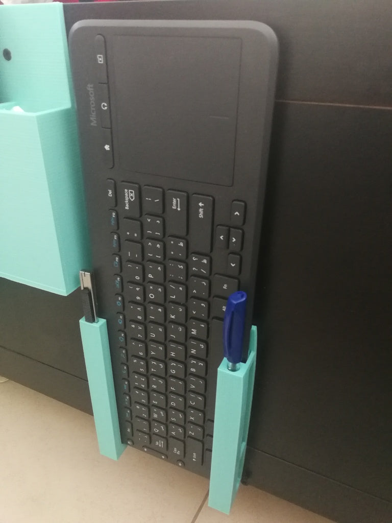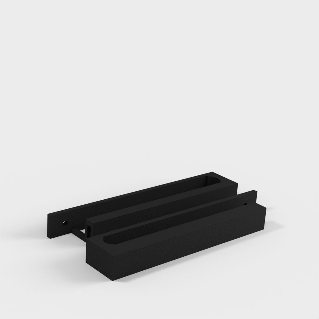 Dies ist ein Tastaturhalter, der an Ihrem Couchtisch montiert werden kann, um einen einfachen Zugriff zu gewährleisten, ohne Platz auf dem Tisch zu beanspruchen. Es kann mit jeder Tastatur verwendet werden, die mit einem Fernseher verwendet wird.