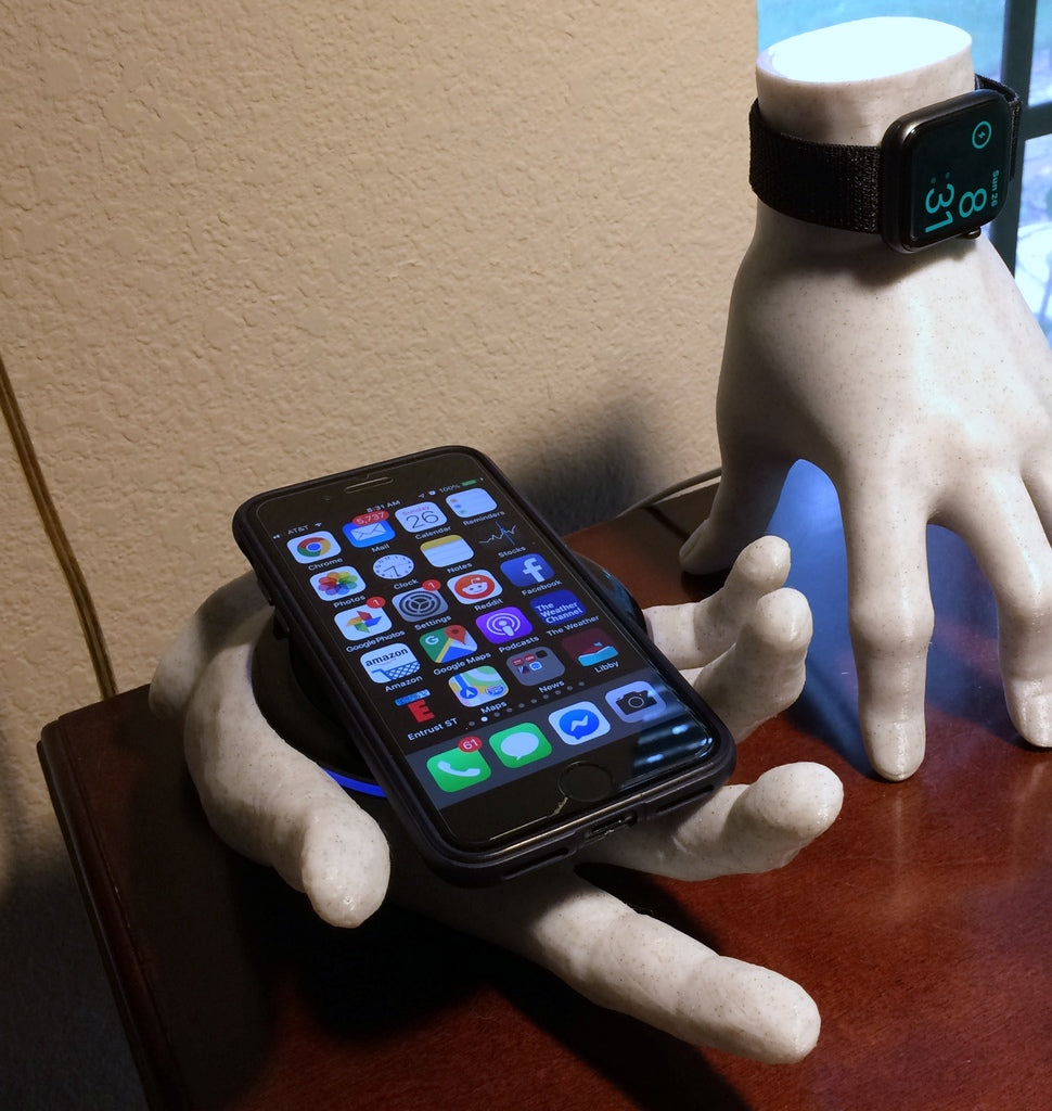 In der Hand selbst ist Platz für ein kabelloses Ladegerät. Die Aussparung ist so gestaltet, dass sie in einen kabellosen Growler passt, der die Form eines Kreises mit einem maximalen Durchmesser von 94 mm hat.