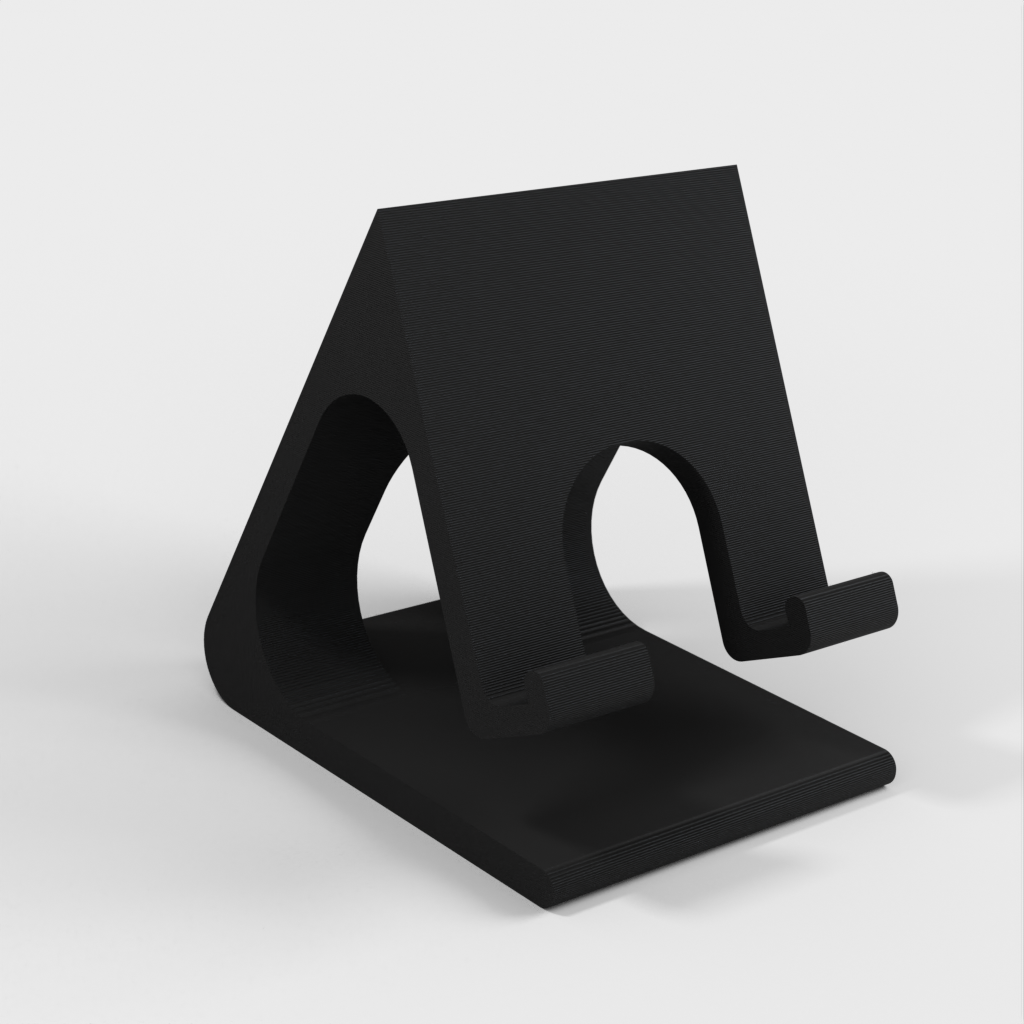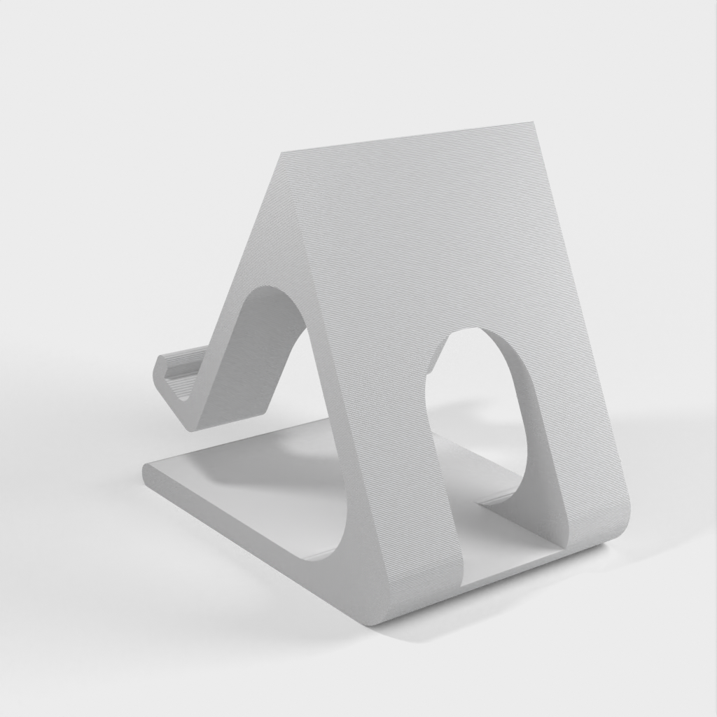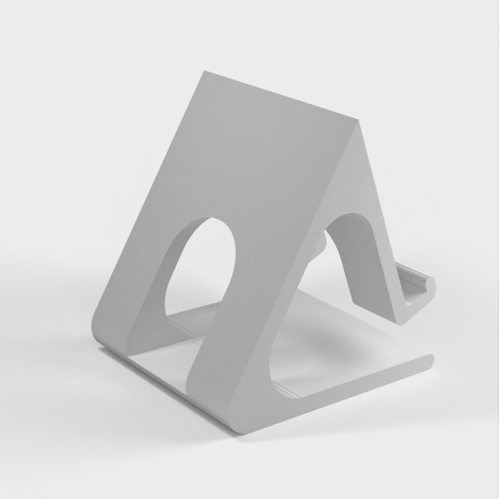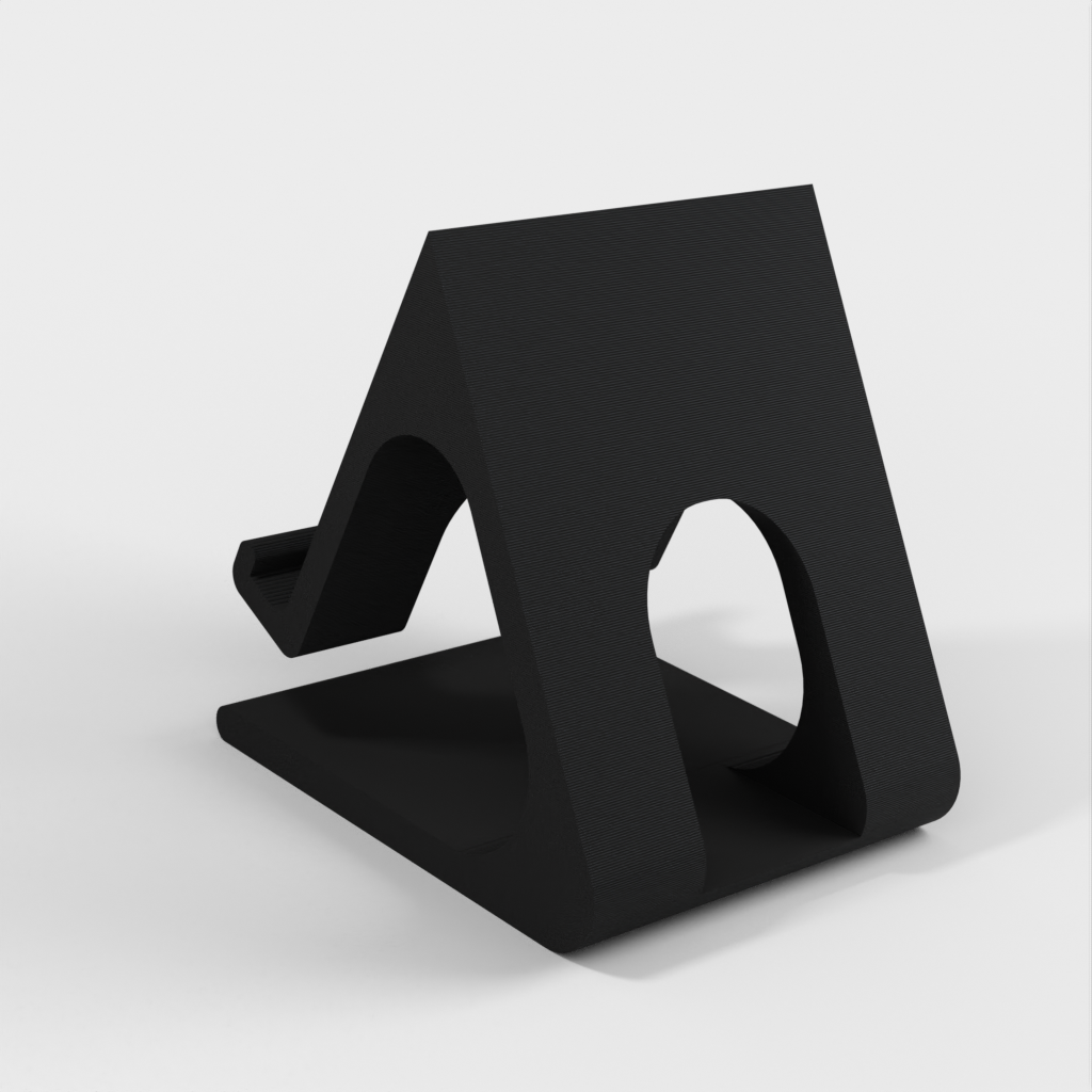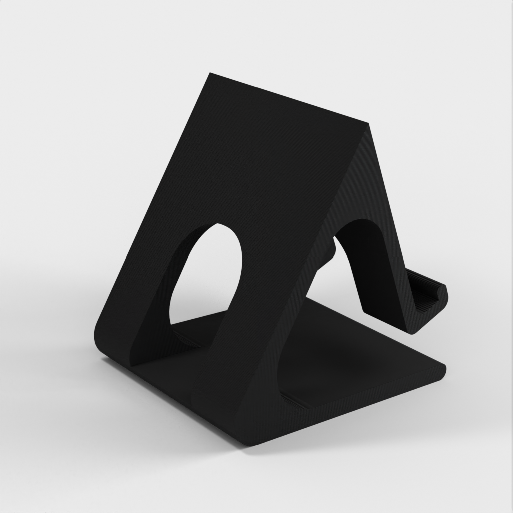Einfacher Telefonständer für ein iPhone 6, der auch für andere Modelle geeignet ist. Das Kabel wird durch das Loch geführt und ist somit sofort einsatzbereit. Dieser Telefonständer ist ideal für den Schreibtisch oder das Büro und lässt sich leicht an Ihre Bedürfnisse anpassen.