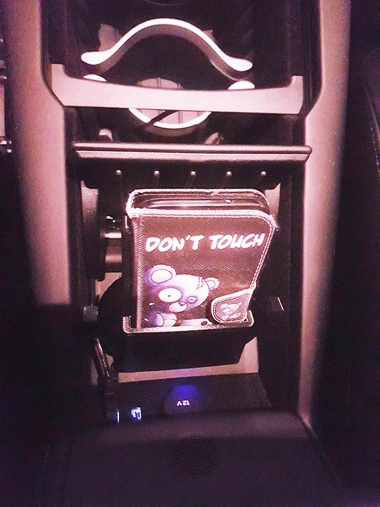 Ein kabelloser Qi-Ladehalter für das Tesla Model S für Samsung-Telefone. Dieses Gerät fungiert als einfacher Telefonhalter, den Sie an einem Qi-Ladepad befestigen können. Es ist so konzipiert, dass es perfekt in die Tesla Model S-Konsole passt. Es ist speziell mit dem „Samsung Fast Charge“-Ladegerät kompatibel, kann aber problemlos an andere Qi-Ladeplatten angepasst werden.
