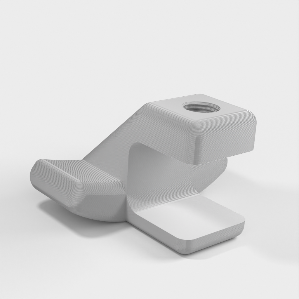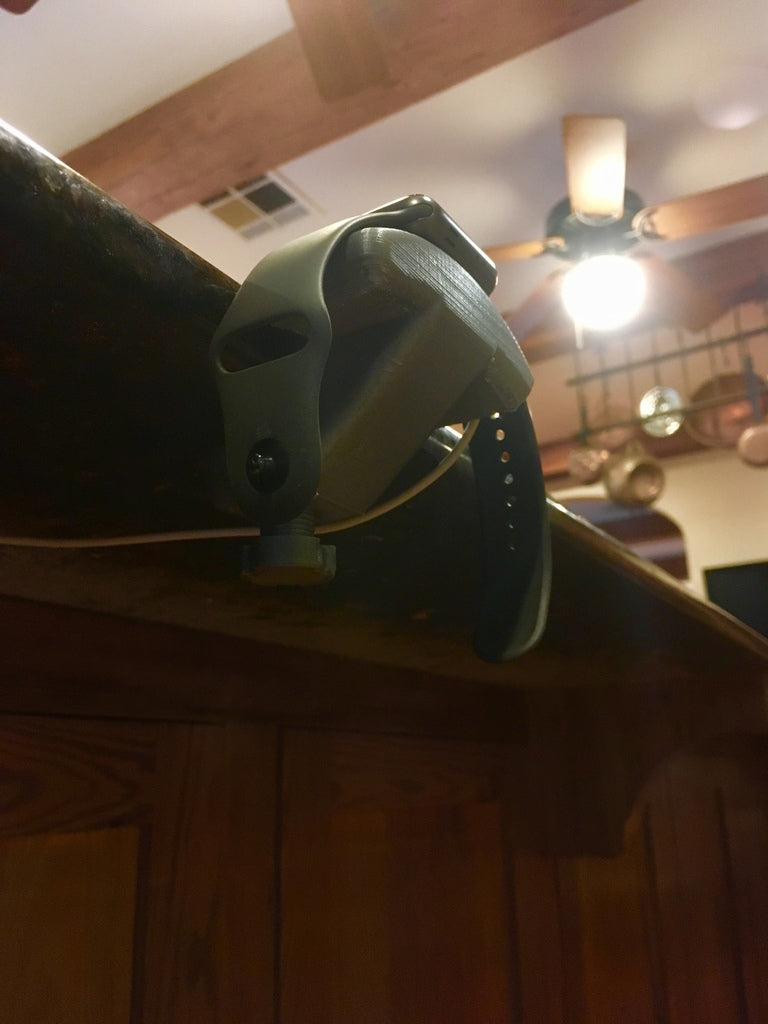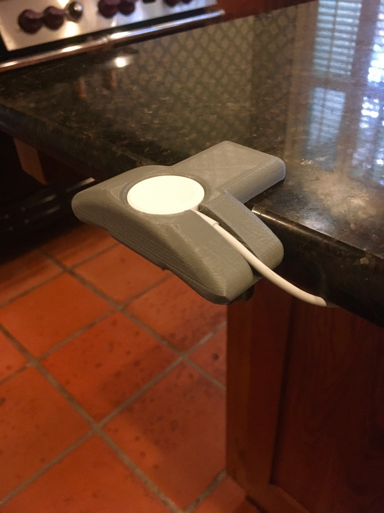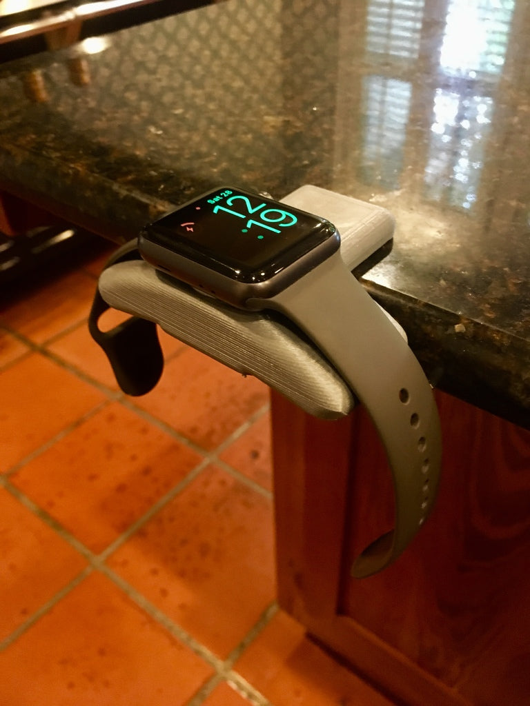 Eine einfache Ladestation für die Apple Watch, die auf den meisten Tischen befestigt werden kann. Funktioniert mit allen Apple Watches. Damit das Kabel auf der Rückseite unter der Uhr herausgeführt werden kann, gibt es einen Kanal.