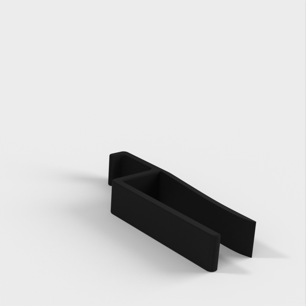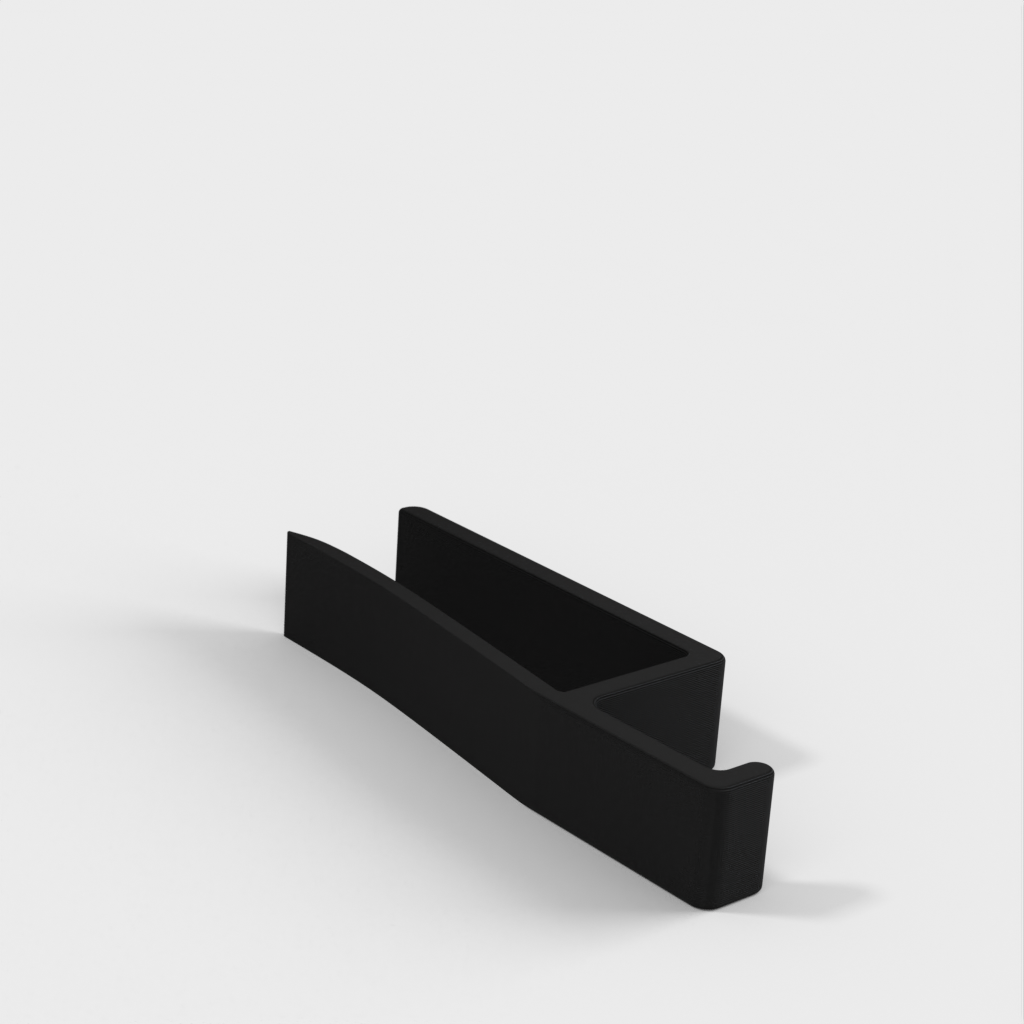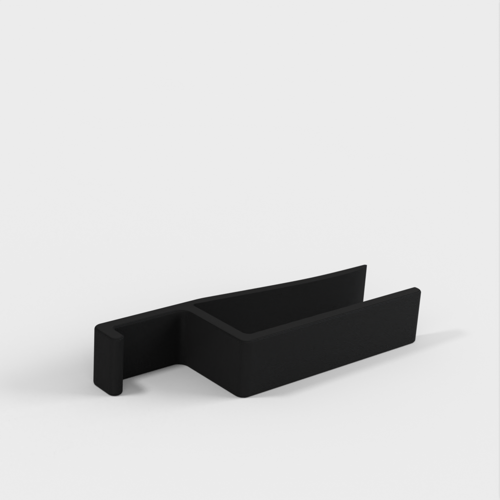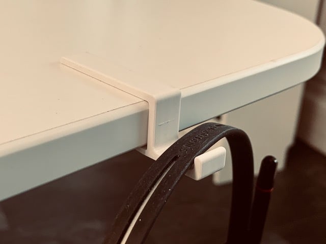 Ein einfacher Haken für die Bekant-Schreibtische von IKEA. Es lässt sich leicht auf die Tischplatte schieben.