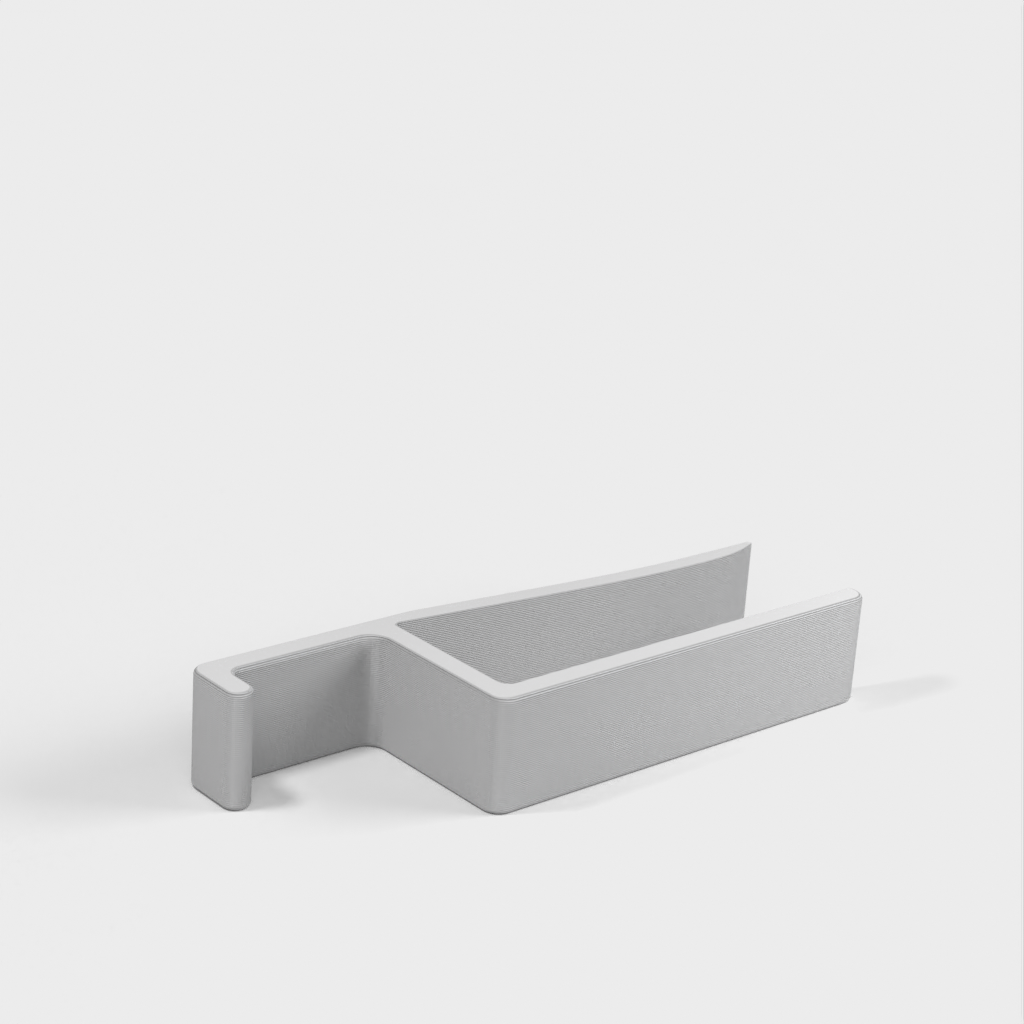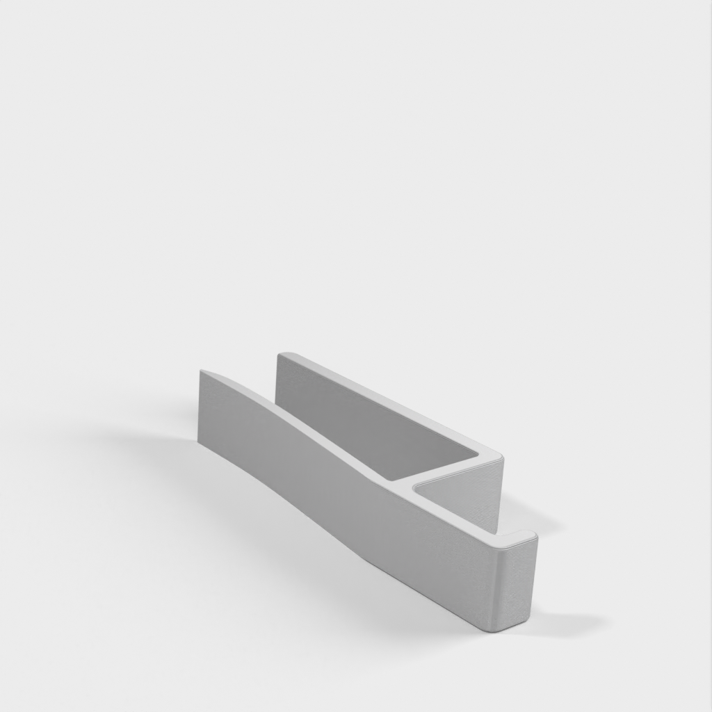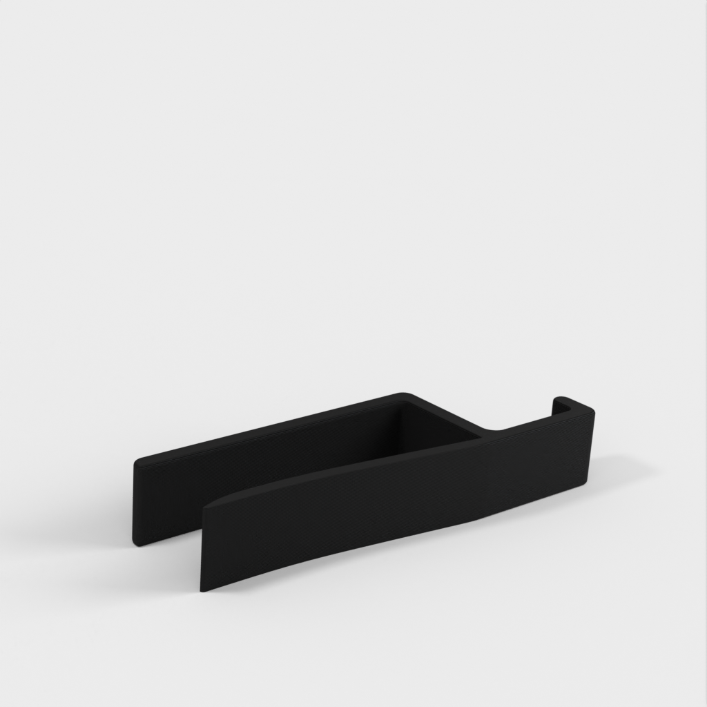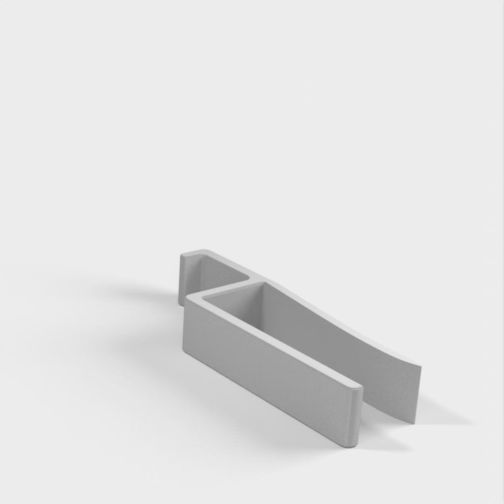 Ein einfacher Haken für die Bekant-Schreibtische von IKEA. Es lässt sich leicht auf die Tischplatte schieben.