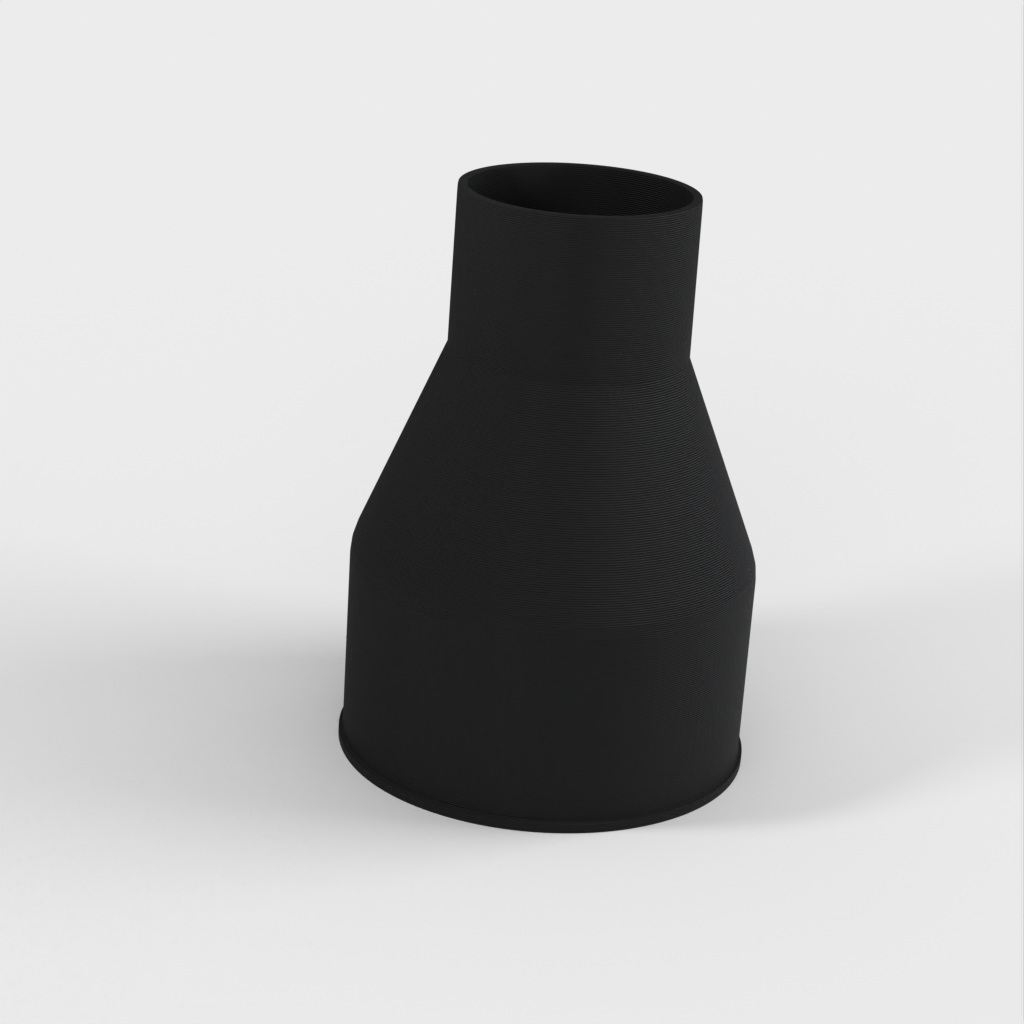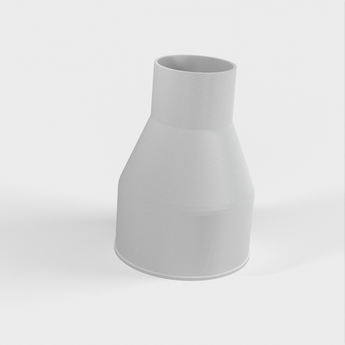 Adapter für den Staubanschluss meiner Tischkreissäge Bosch GTS 10 XC, der auf einen 100-mm-Spänesaugschlauch passt. Die große Seite des Adapters ist 100 mm lang und verfügt über eine kleine Lippe, um ein Verrutschen des Schlauchs zu verhindern, während die kleinere Seite von 58 mm auf 57 mm abschneidet, um einen kraftschlüssigen Sitz im Staubanschluss der Tischkreissäge zu gewährleisten.
