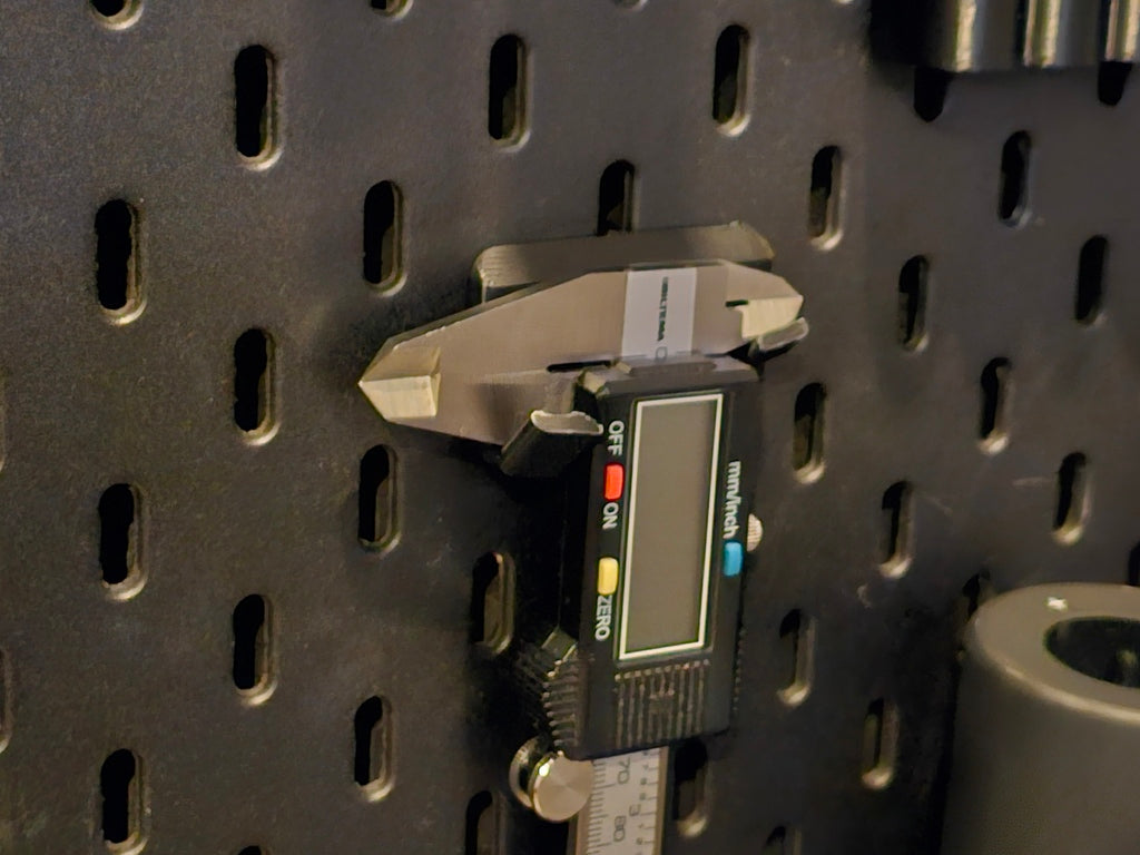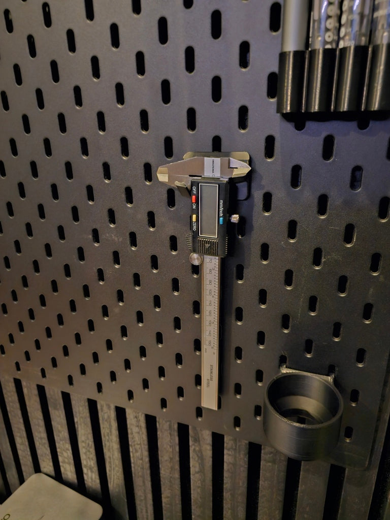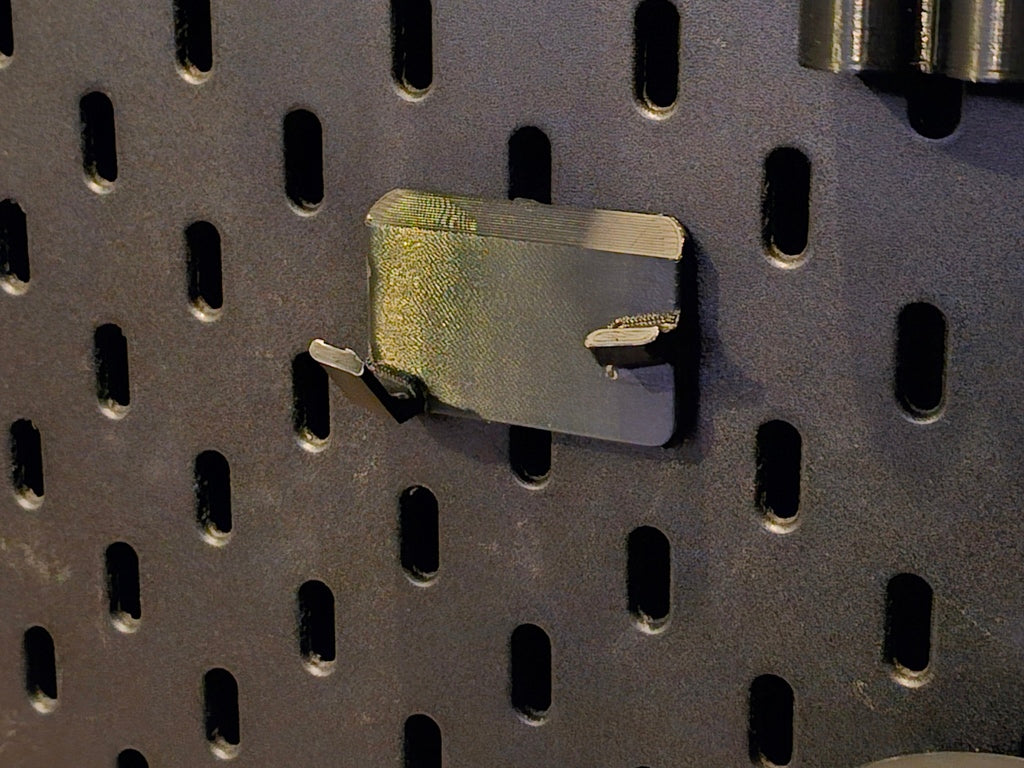 Dies ist eine Messgerätehalterung für eine IKEA SKÅDIS-Montageplatte. Sein Oberkörper ist etwas kleiner und hat schönere abgerundete Kanten im Vergleich zum Originalmodell. Auch die Hakenkonstruktion wurde für eine bessere Bedienbarkeit leicht modifiziert.