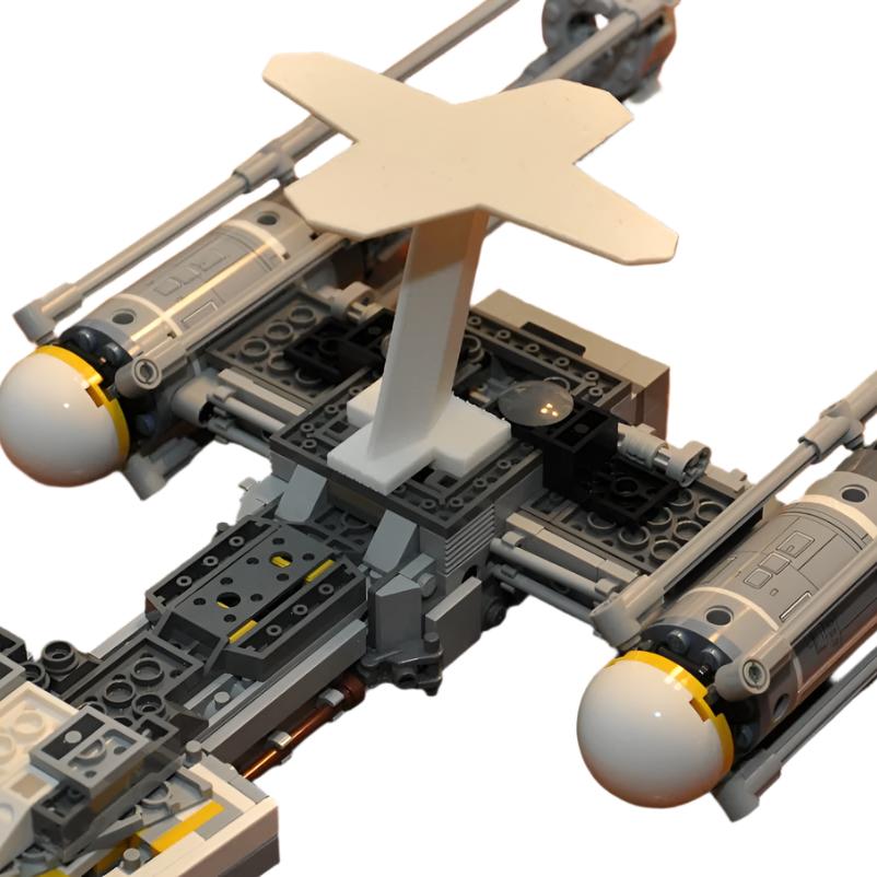 Dies ist ein Ausstellungsständer für LEGO 75172, Y-Wing Starfighter. Dieser Ständer sorgt dafür, dass Ihr Y-Wing Starfighter sicher und stabil aufgestellt werden kann. Der obere Teil (der Ziegelstein) würde von einer höheren Auflösung profitieren.