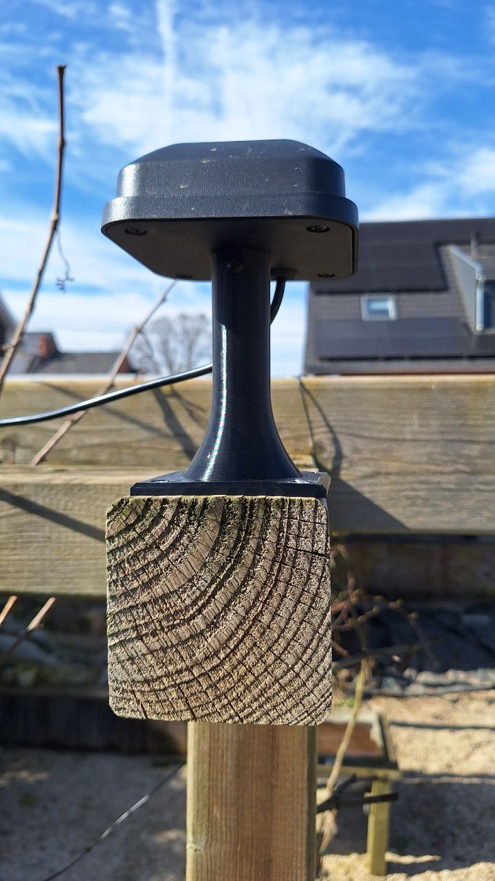 GPS-Antennenhalterung für Segway Navimow. Diese Halterung ist so konzipiert, dass sie auf einen standardmäßigen 90-mm-Holzbalken passt, sodass Sie Ihr Navimow GPS problemlos auf Ihrer Pergola oder einer ähnlichen Struktur im Hinterhof montieren können.