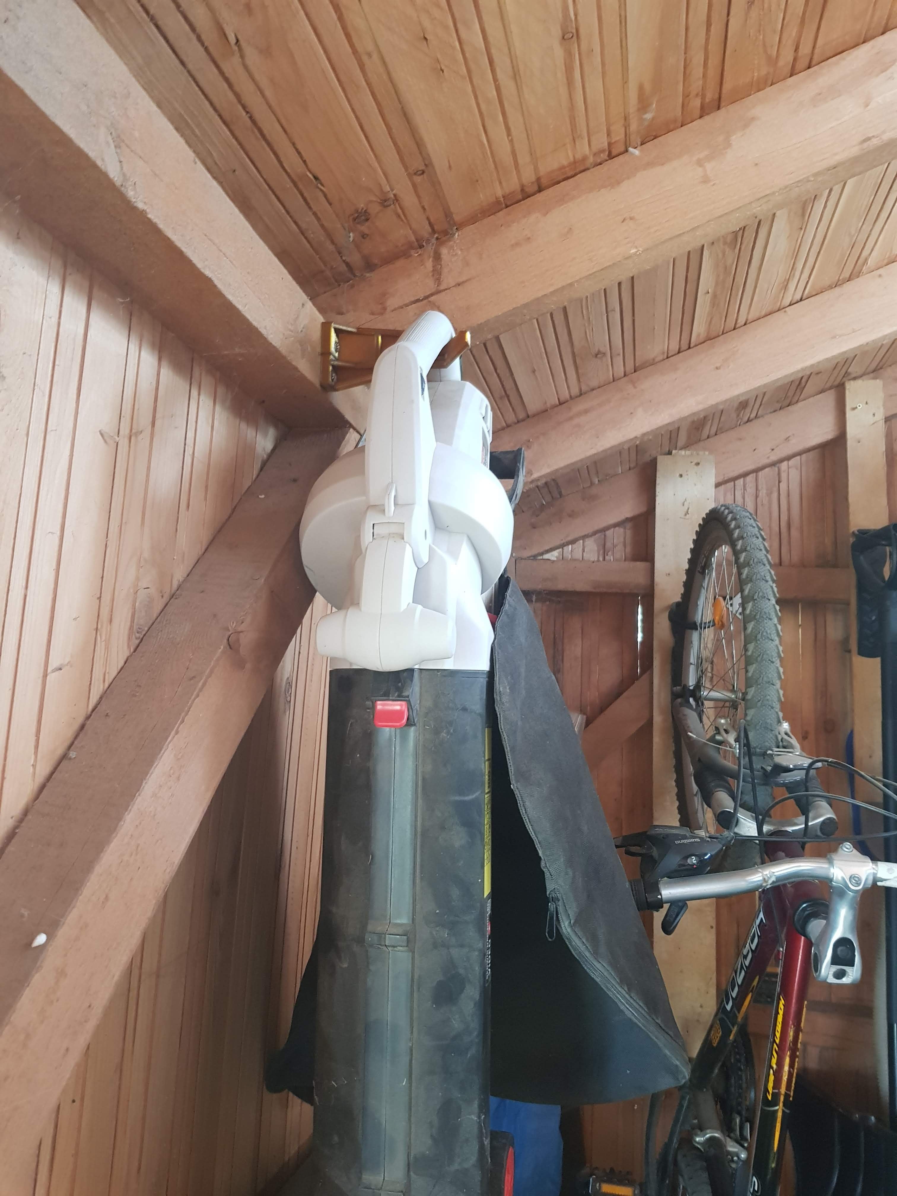 Dies ist eine Hecke, die perfekt auf einen 7x7-Holzbalken passt. Es ist sehr steif und kann problemlos schwere Werkzeuge wie einen Laubbläser tragen. Ideal zur praktischen Aufbewahrung von Gartengeräten in Ihrem Garten.