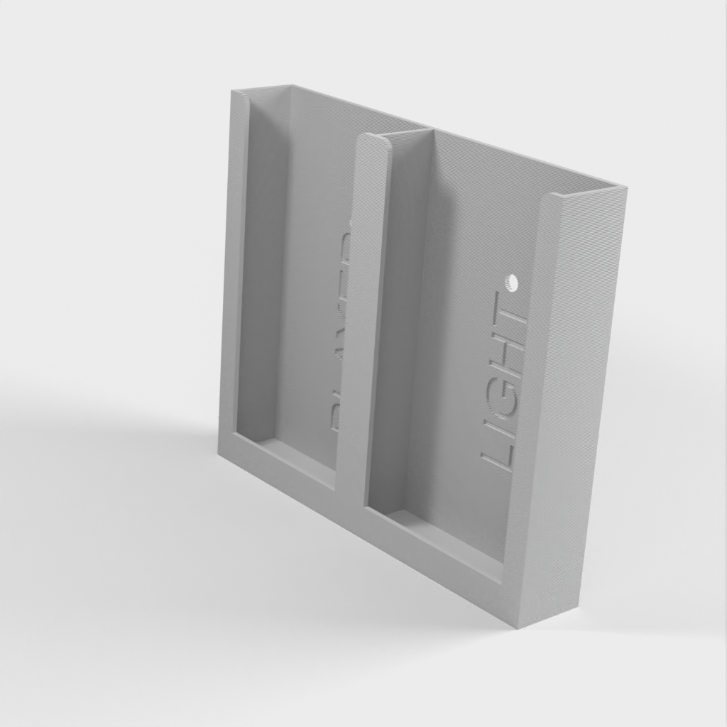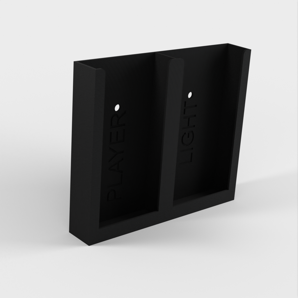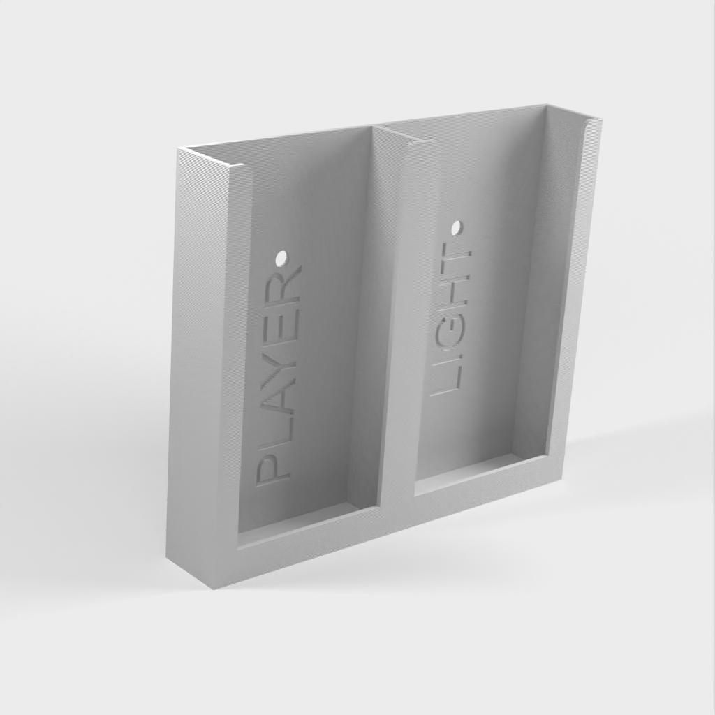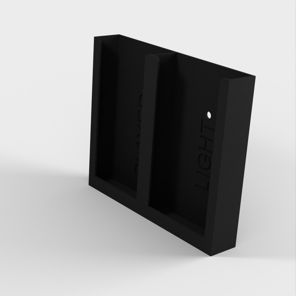 Dies ist eine einfache Halterung, die 2 Fernbedienungen aufnehmen kann. Es kann entweder vertikal oder horizontal installiert werden. Sie können es entweder mit zwei Schrauben oder mit doppelseitigem Klebeband befestigen, je nachdem, was am besten zu Ihrem Zuhause passt.
