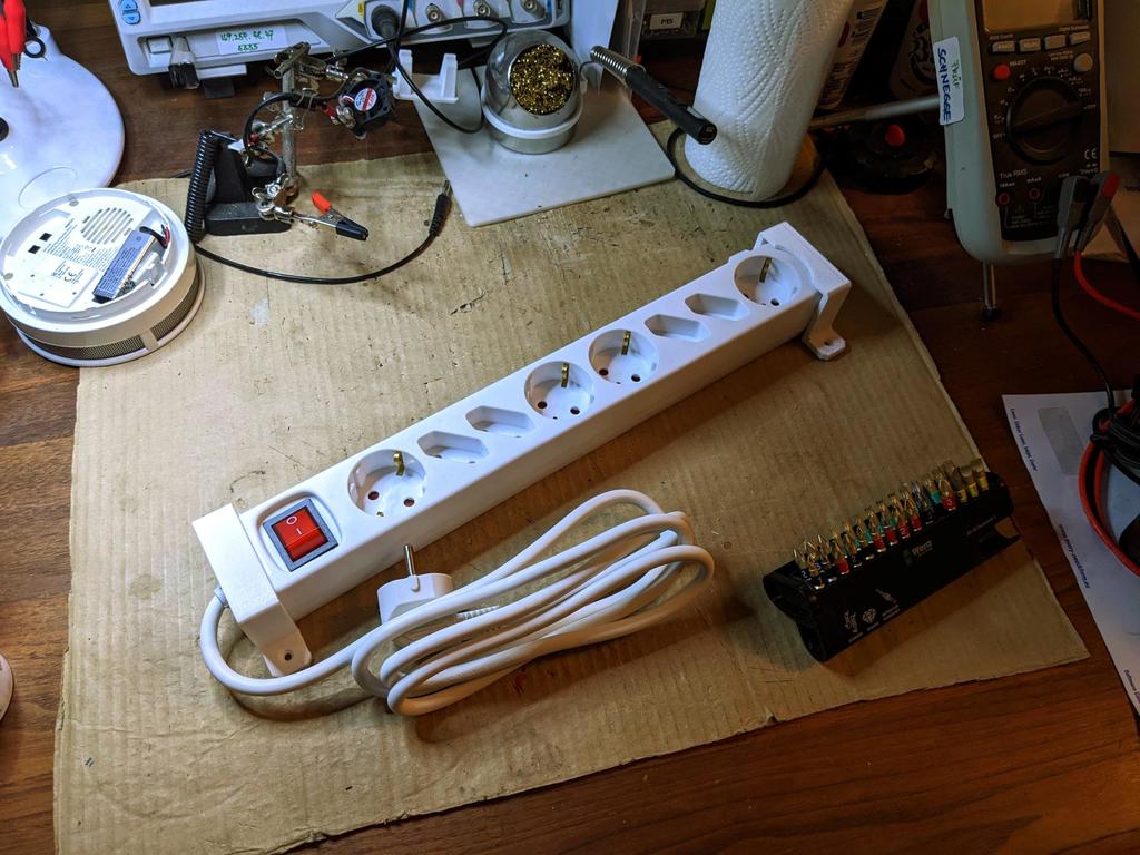Ich habe die OpenSCAD-Datei „power-strip.scad“ hinzugefügt, die etwas parametrisch ist und leicht für andere Steckdosenleisten angepasst werden kann. Siehe die Kommentare oben in der Datei.