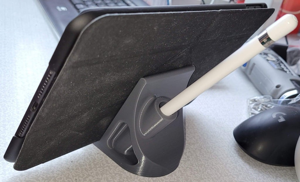 Optimieren Sie Ihren Arbeitsplatz oder Ihre Freizeit mit diesem praktischen iPad-Ständer. Er bietet Ihrem iPad einen stabilen und sicheren Stand, egal ob Sie arbeiten, lernen oder Medieninhalte genießen. Der Ständer verfügt über eine integrierte Halterung für Ihren Apple Pencil oder andere Eingabestifte, sodass dieser immer griffbereit ist und nicht verloren geht. So haben Sie Ihren Stift schnell zur Hand, wenn Sie eine Inspiration haben.