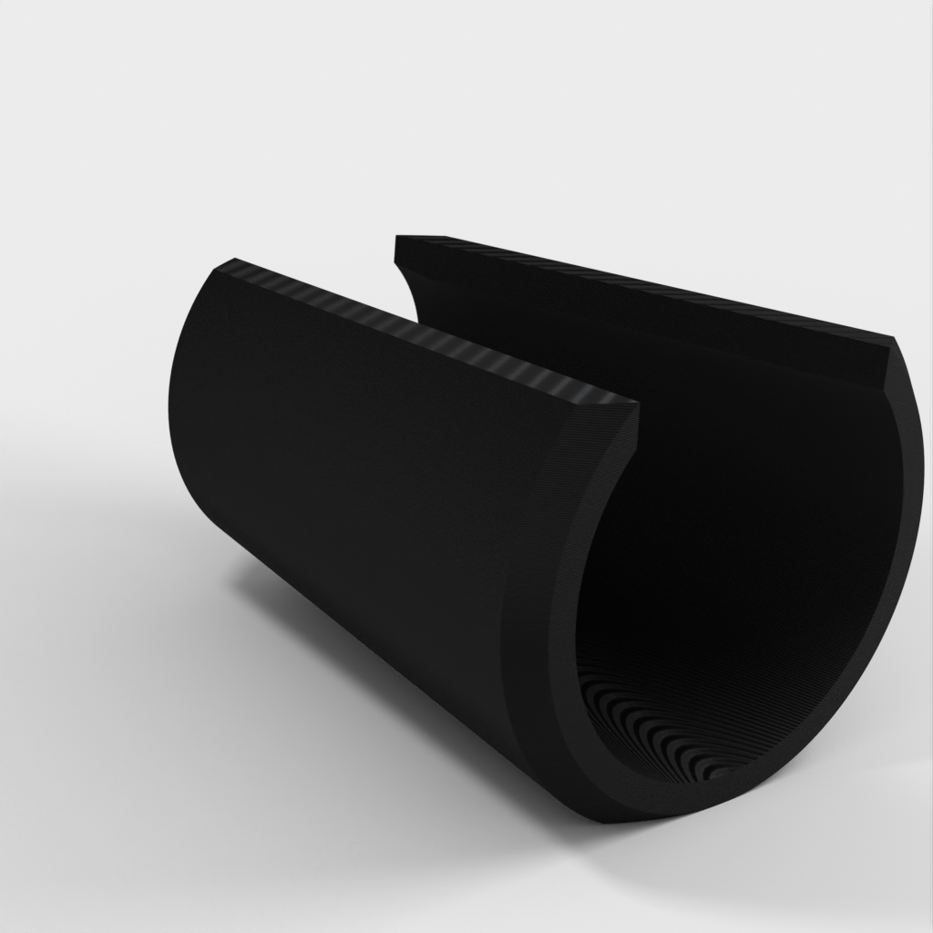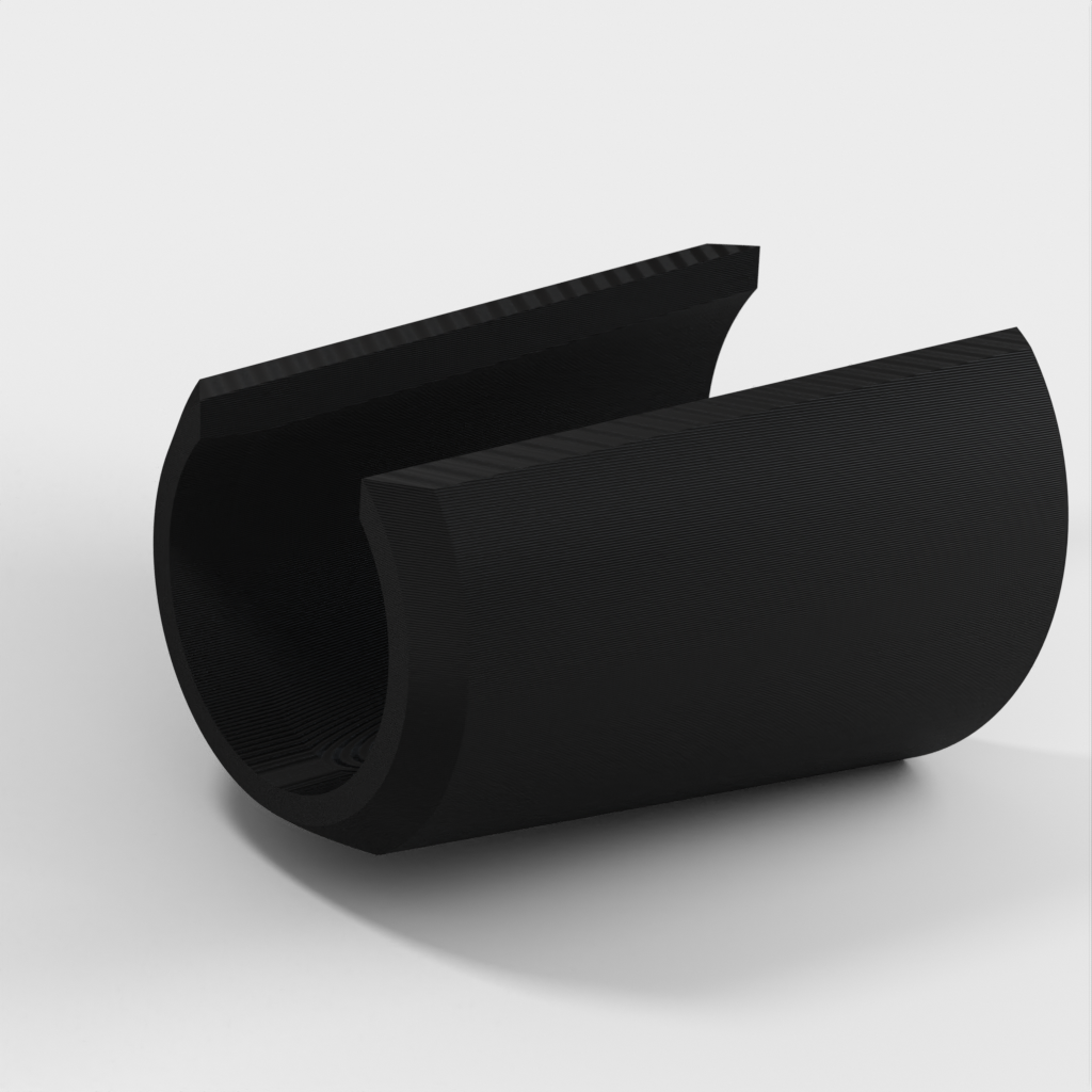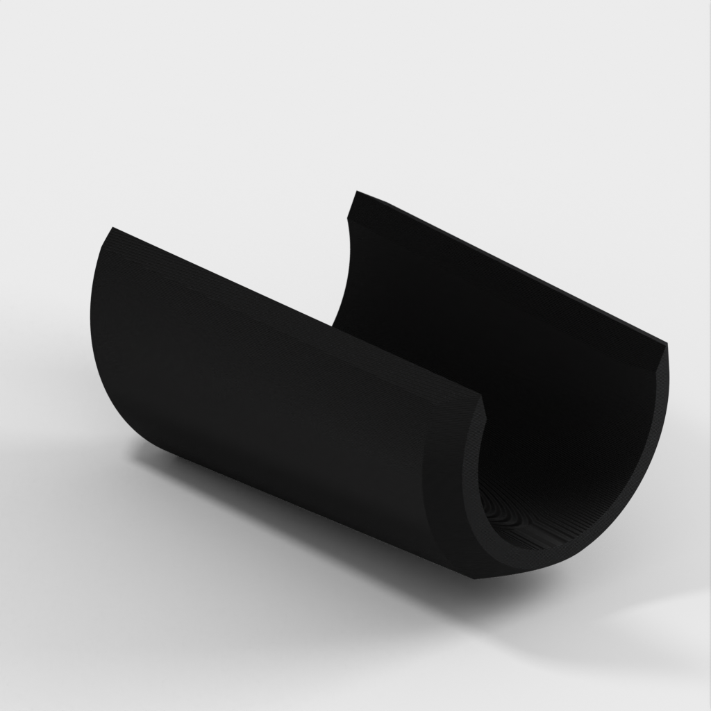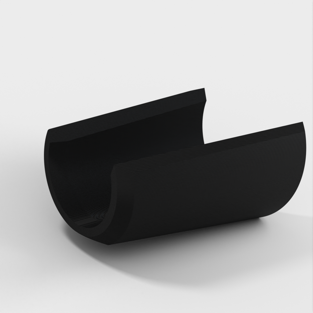 Halter für dickere Kabel. Hat eine flache Unterseite, sodass es mit doppelseitigem Klebeband oder Kleber befestigt werden kann.