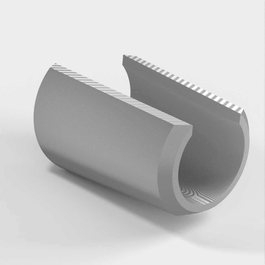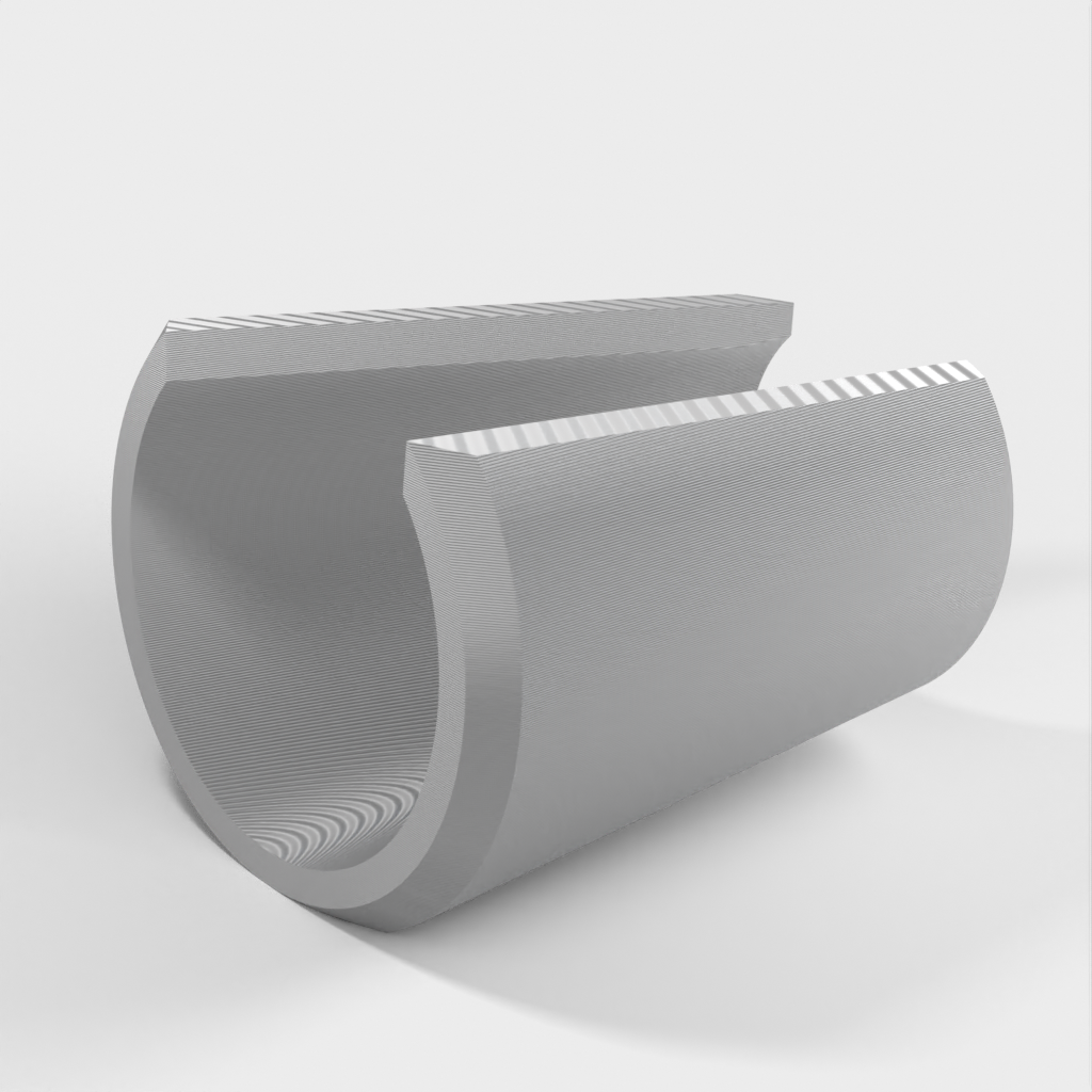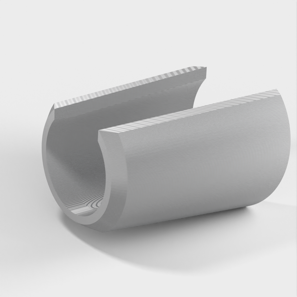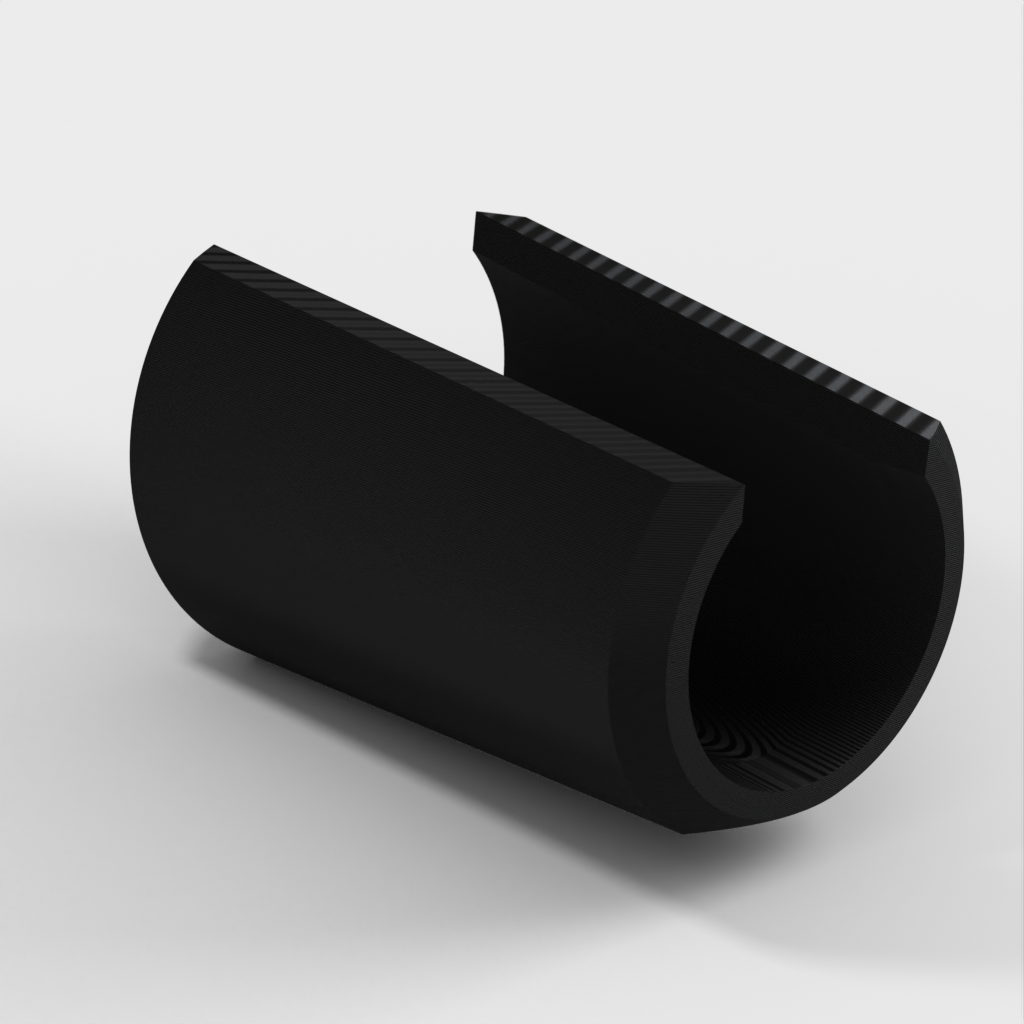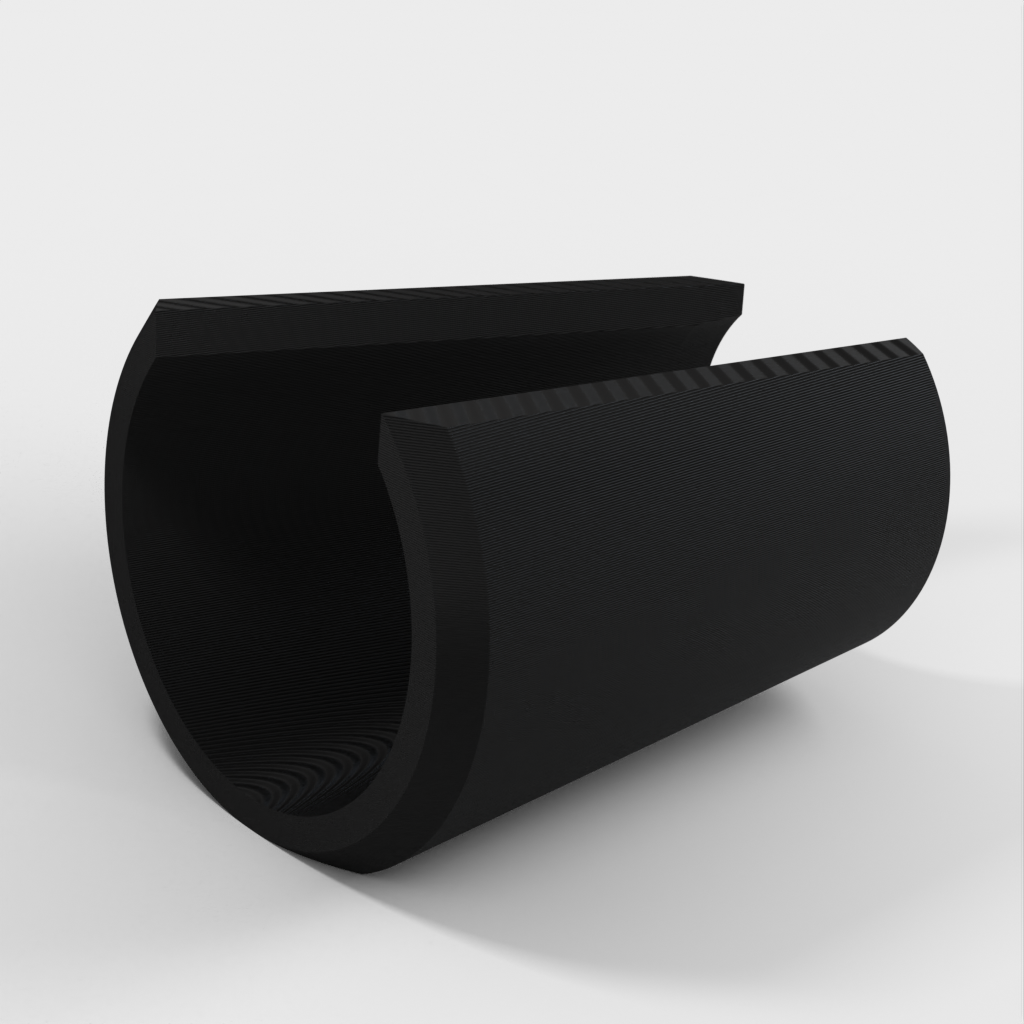 Halter für dickere Kabel. Hat eine flache Unterseite, sodass es mit doppelseitigem Klebeband oder Kleber befestigt werden kann.