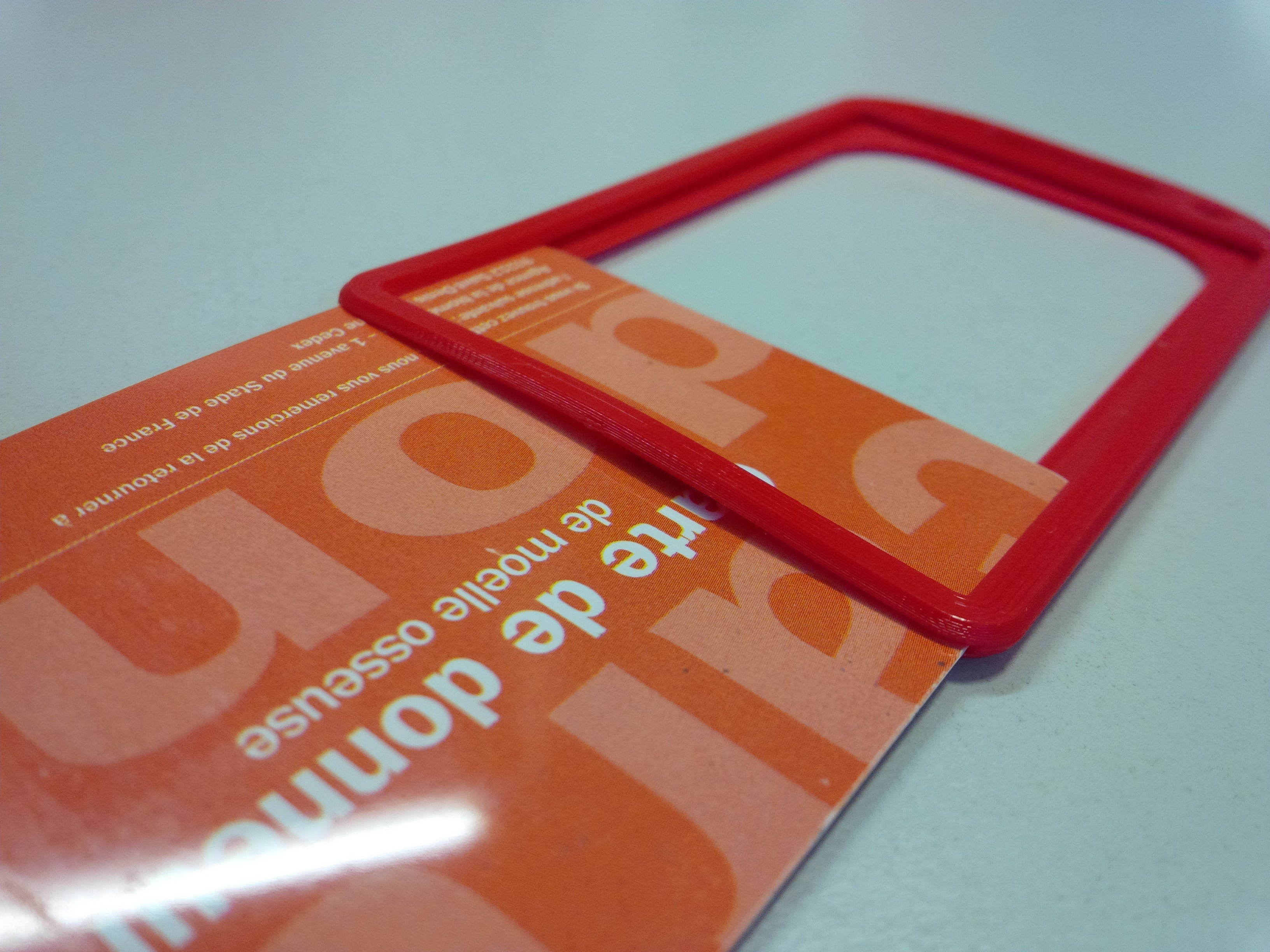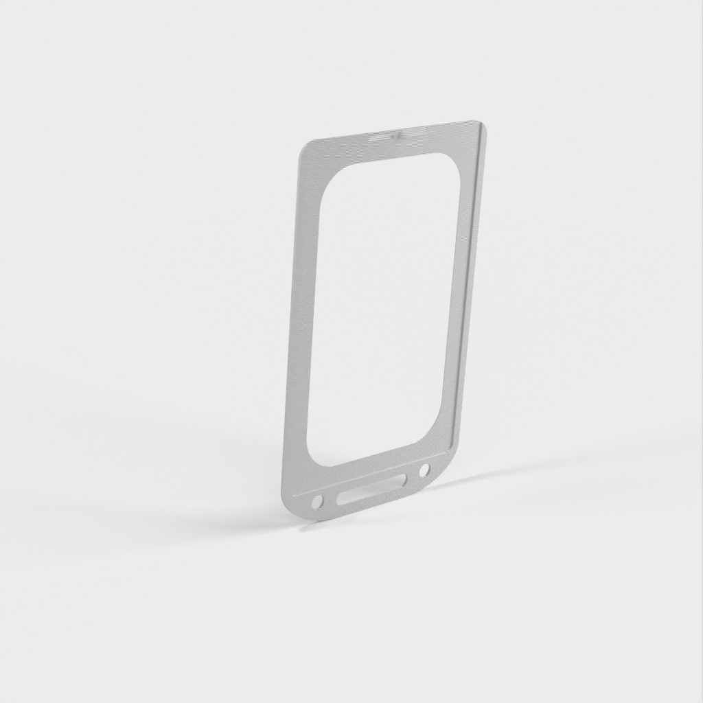 Ein einfacher Halter für Karten oder Ausweise. Die Karte wird eingelegt und mit Clips gesichert.