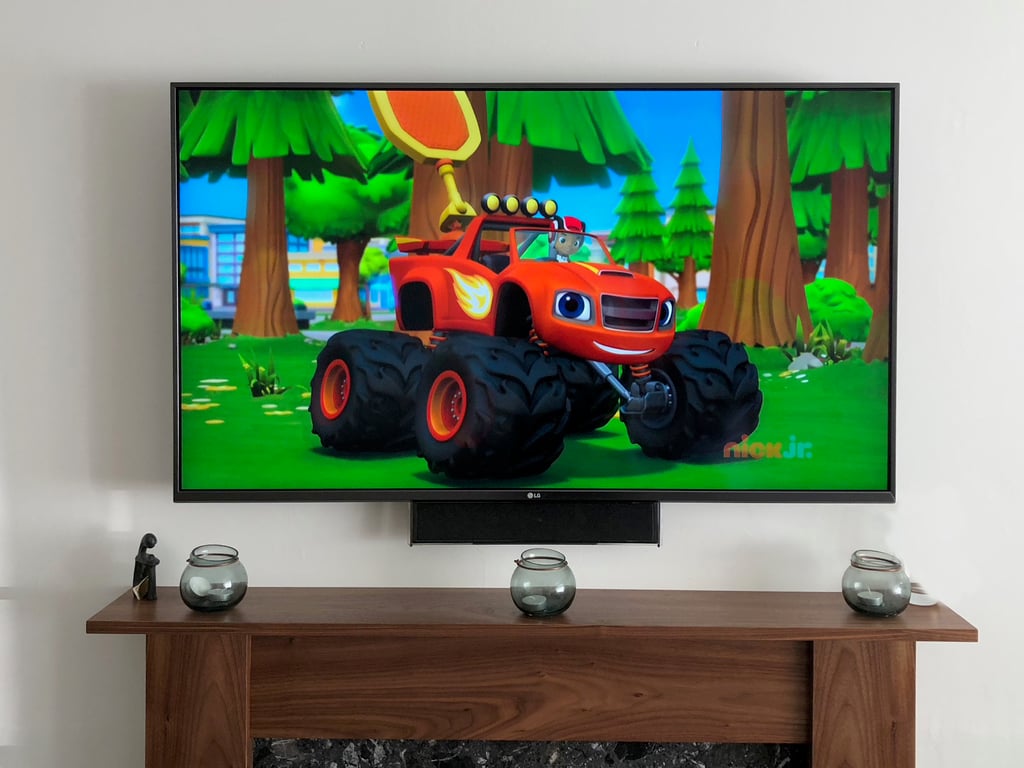 - Positioniert den Lautsprecher bündig mit der Unterseite des Fernsehers