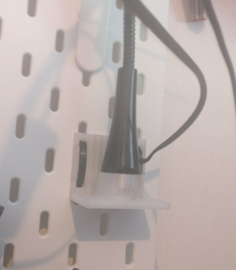 Eine Montagehalterung für die IKEA Jansjö-Lampe an der IKEA Skådis-Aufhängungsplatte. Einfache Montage mit 2 Kabelbindern.