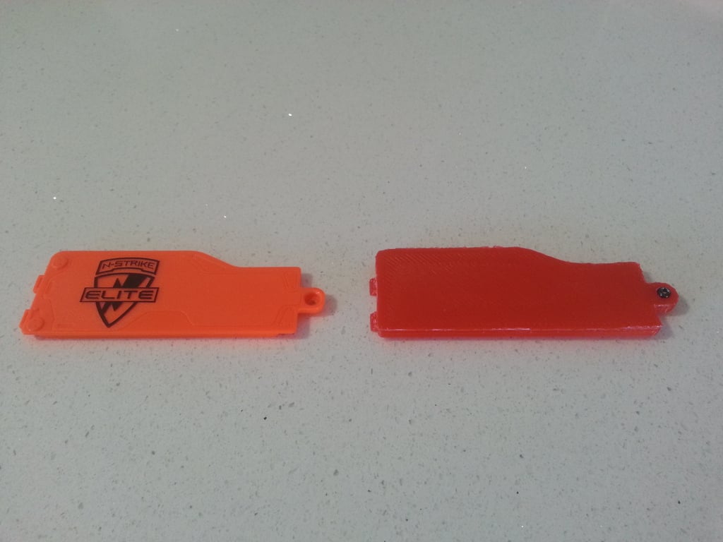 Dies ist eine Ersatzbatteriefachabdeckung für die Nerf Stryfe. Es bietet den zusätzlichen Platz, der zum Einbau einer 9-V-Batterie in das vorhandene Batteriefach erforderlich ist.