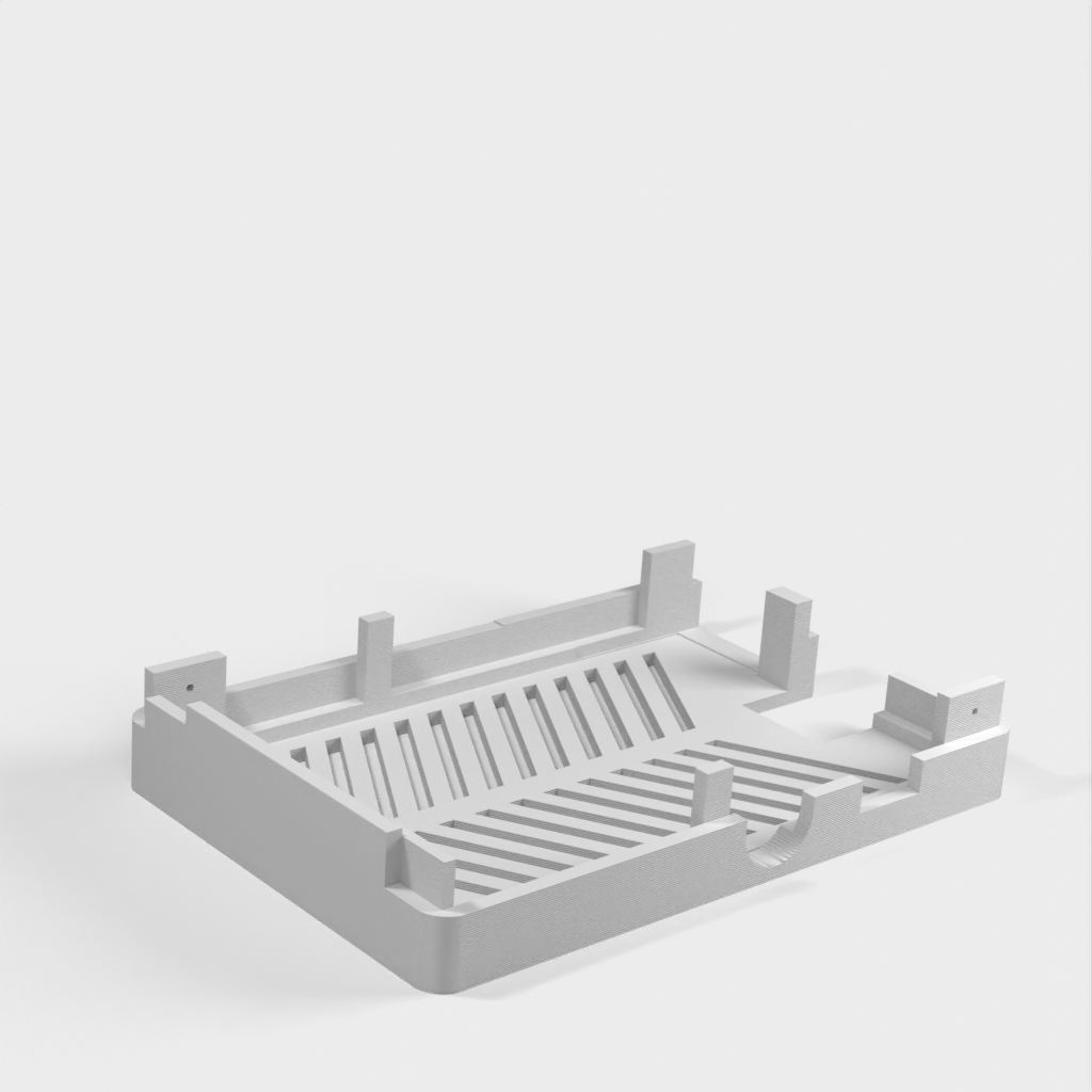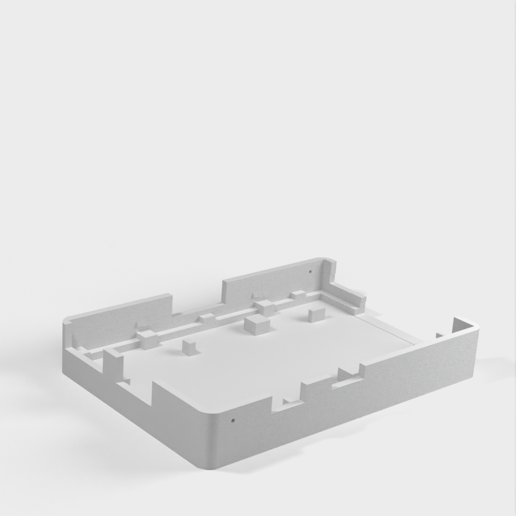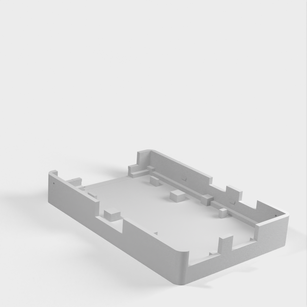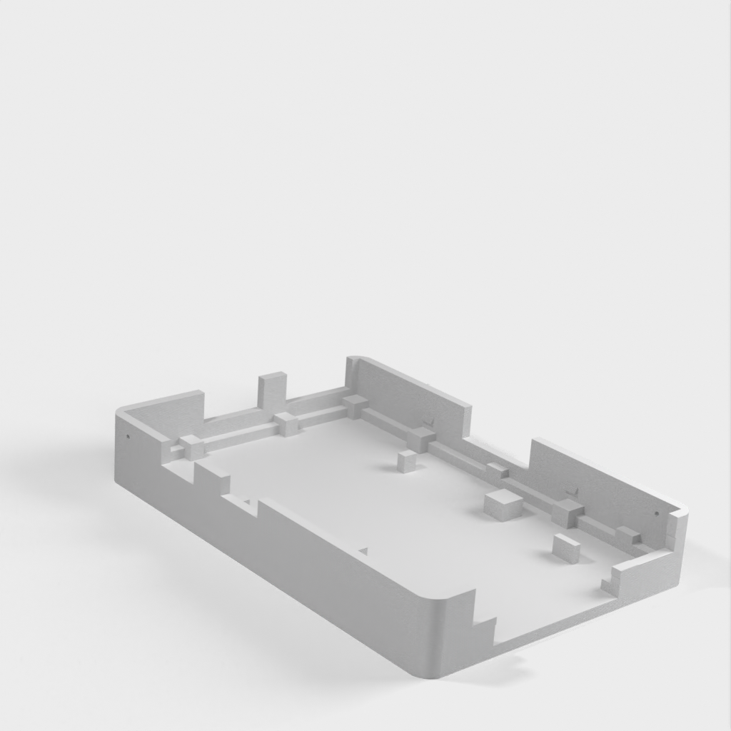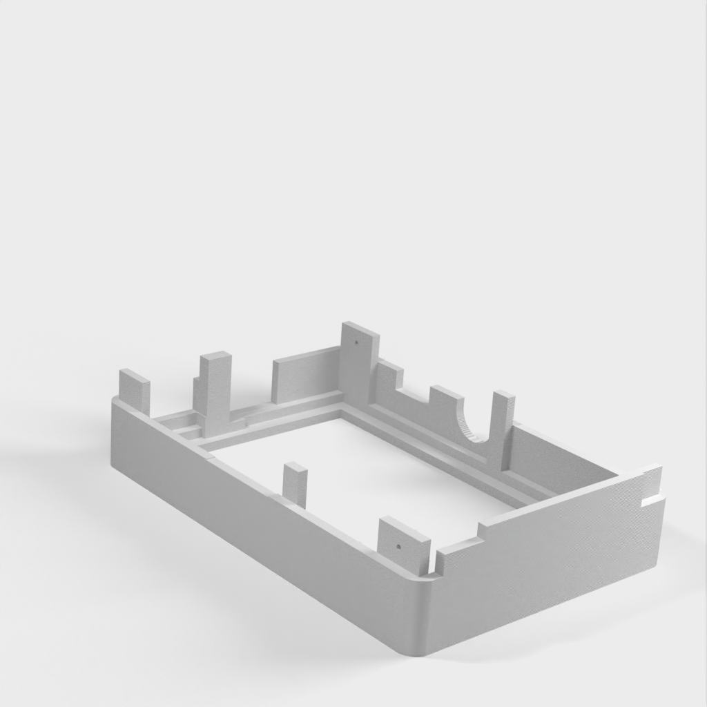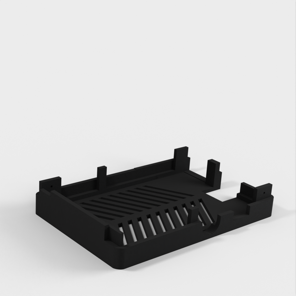 Dies ist ein Fall für den Raspberry Pi, einen Computer im Kreditkartenformat. Das Gehäuse ist mit mehreren Ebenen konzipiert und bietet Platz für Komponenten und GPIO-Anschlüsse. Indem wir bei den Löchern für die Komponenten einen kleinen Spielraum lassen, stellen wir sicher, dass diese immer passen. Es gibt auch die Option eines offenen Logos und eines Leiterplattenhalters.