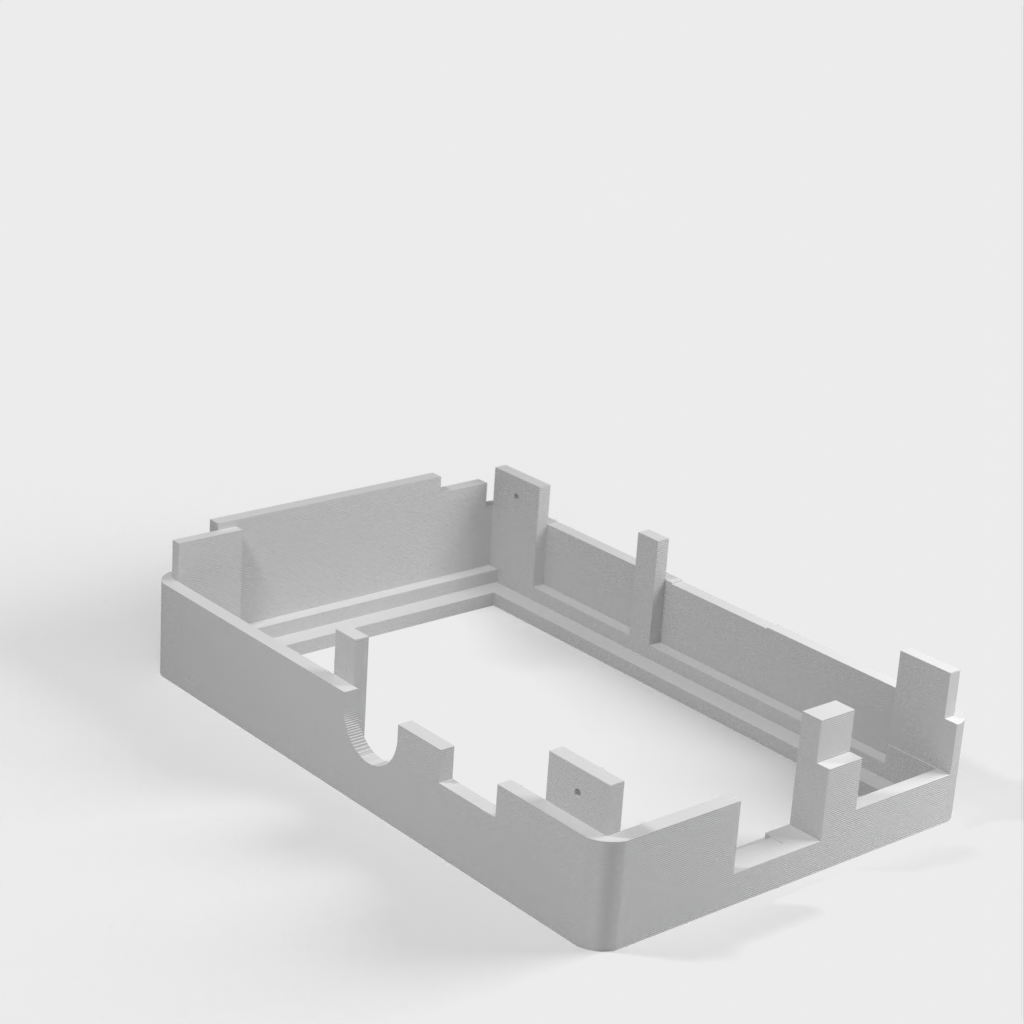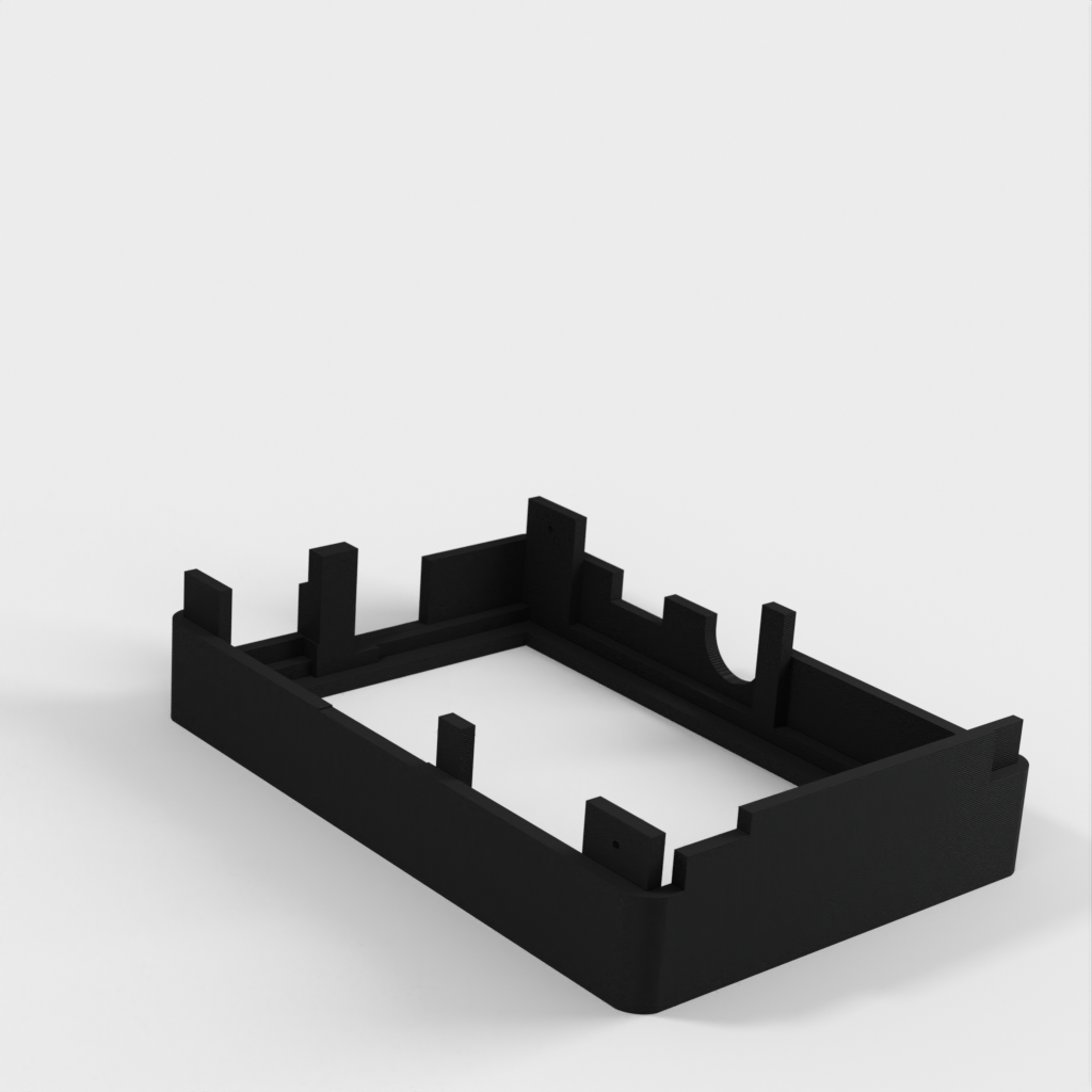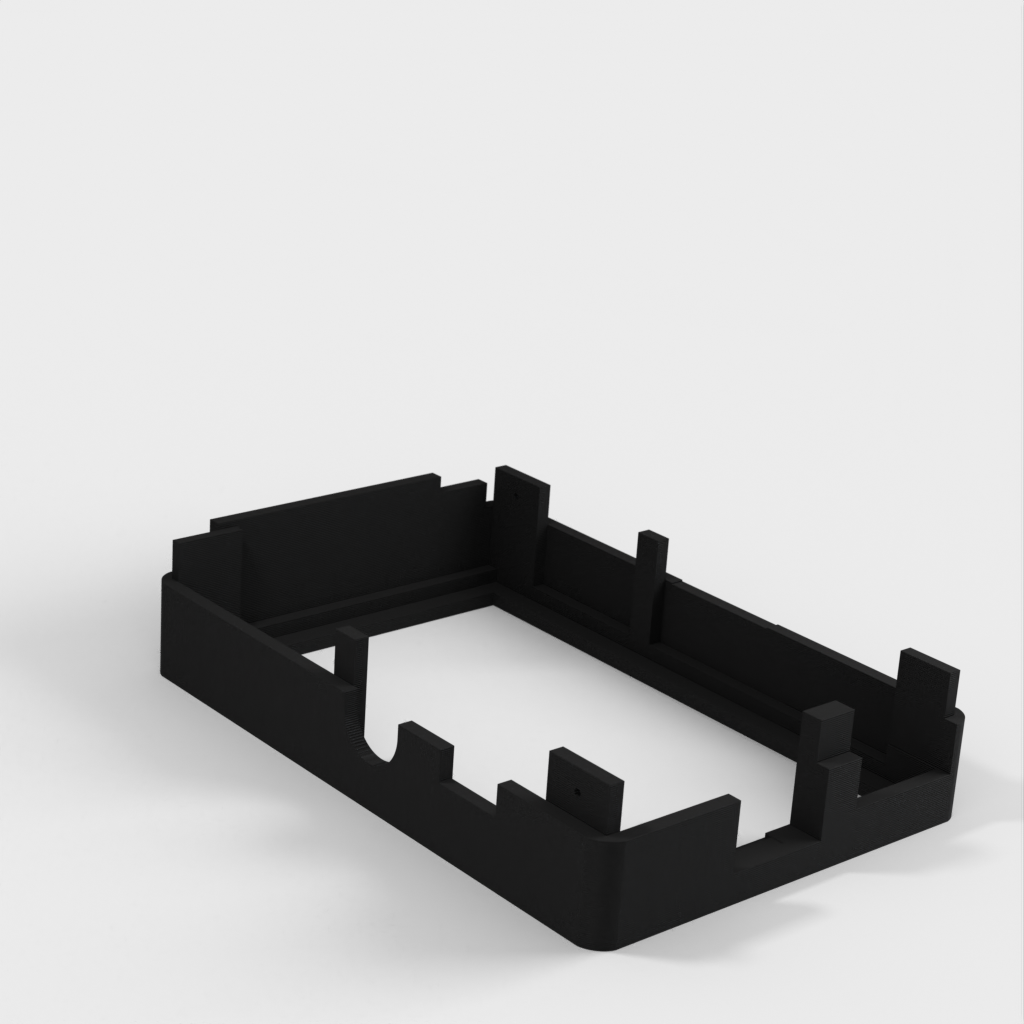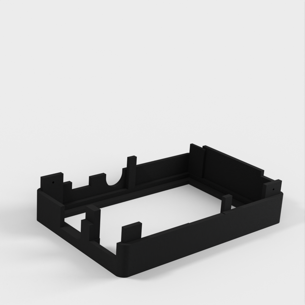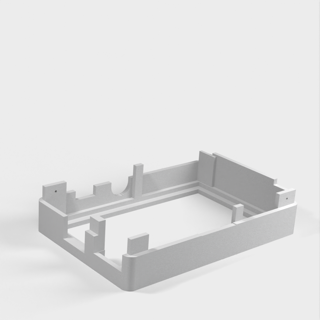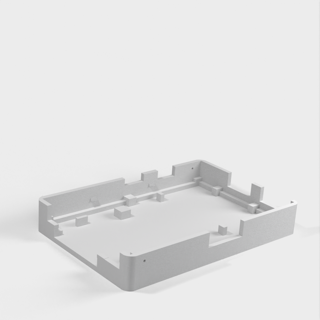 Dies ist ein Fall für den Raspberry Pi, einen Computer im Kreditkartenformat. Das Gehäuse ist mit mehreren Ebenen konzipiert und bietet Platz für Komponenten und GPIO-Anschlüsse. Indem wir bei den Löchern für die Komponenten einen kleinen Spielraum lassen, stellen wir sicher, dass diese immer passen. Es gibt auch die Option eines offenen Logos und eines Leiterplattenhalters.