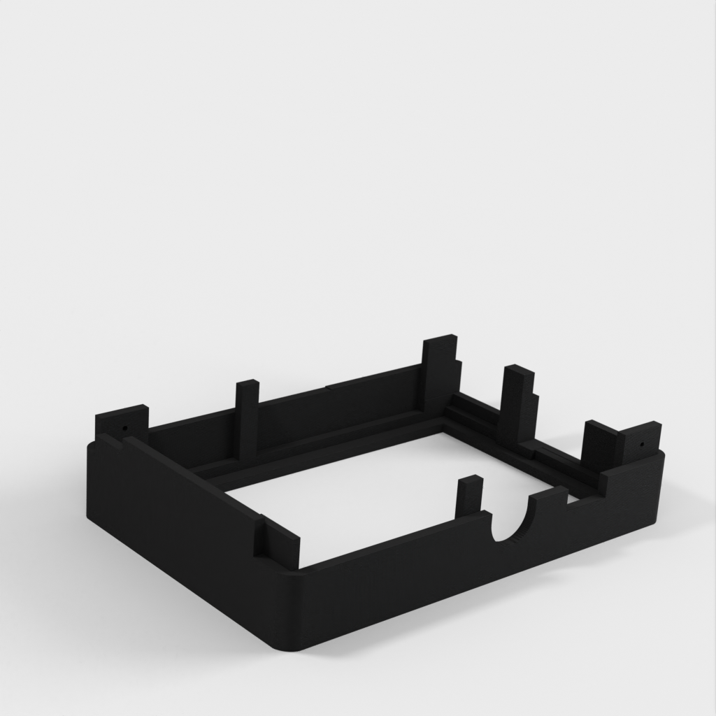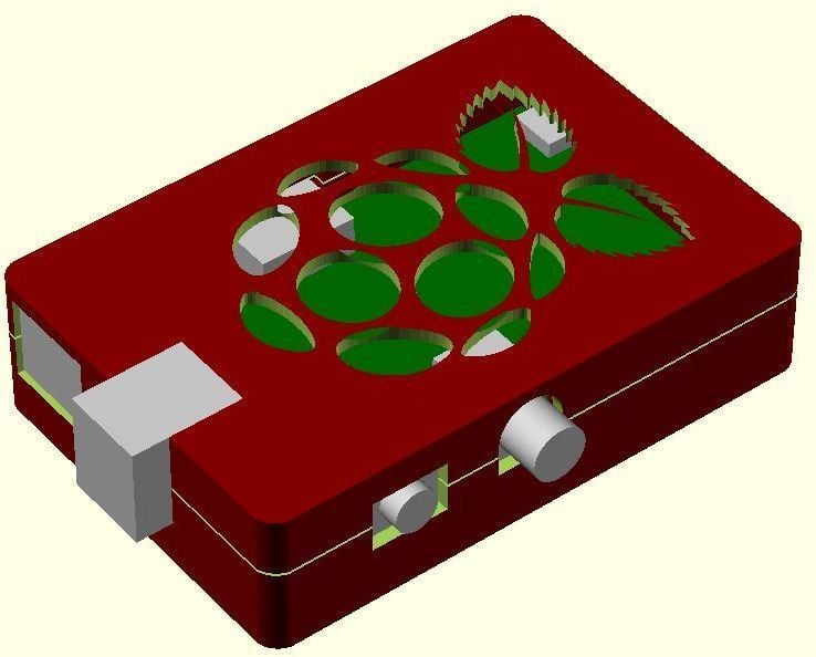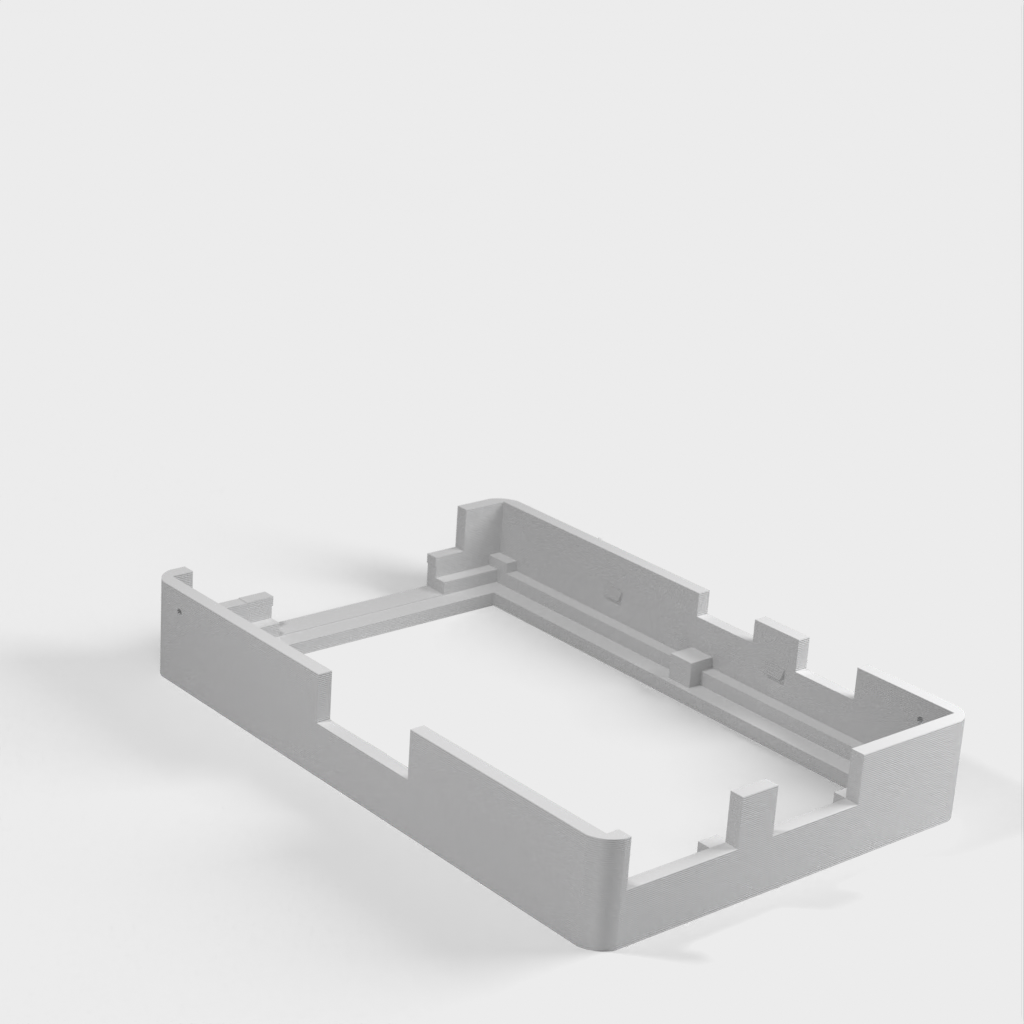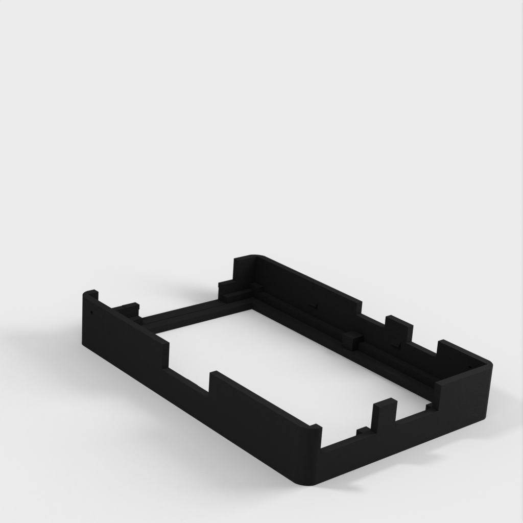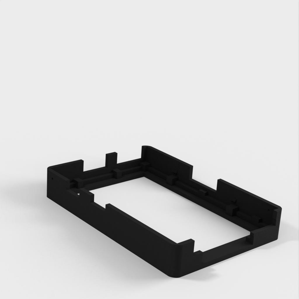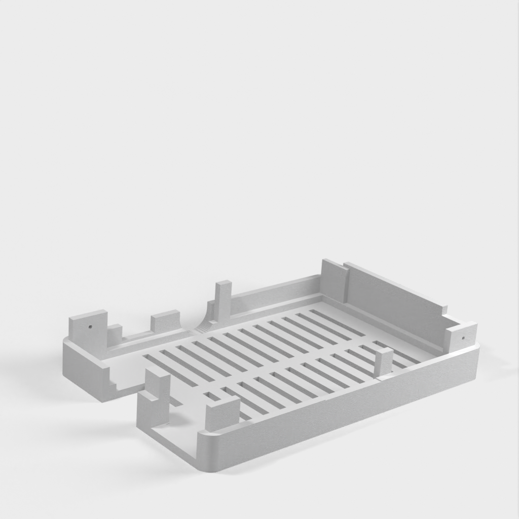 Dies ist ein Fall für den Raspberry Pi, einen Computer im Kreditkartenformat. Das Gehäuse ist mit mehreren Ebenen konzipiert und bietet Platz für Komponenten und GPIO-Anschlüsse. Indem wir bei den Löchern für die Komponenten einen kleinen Spielraum lassen, stellen wir sicher, dass diese immer passen. Es gibt auch die Option eines offenen Logos und eines Leiterplattenhalters.