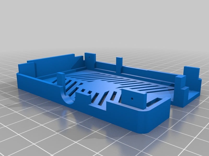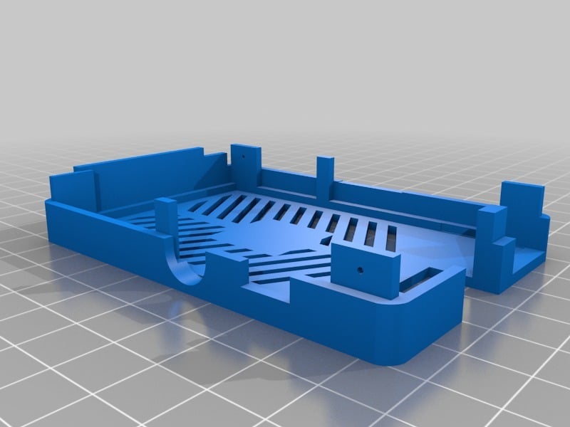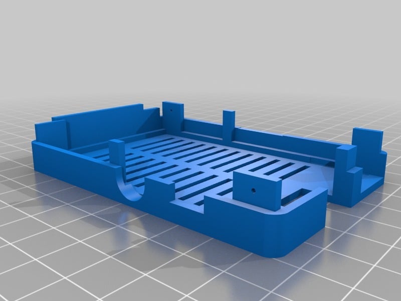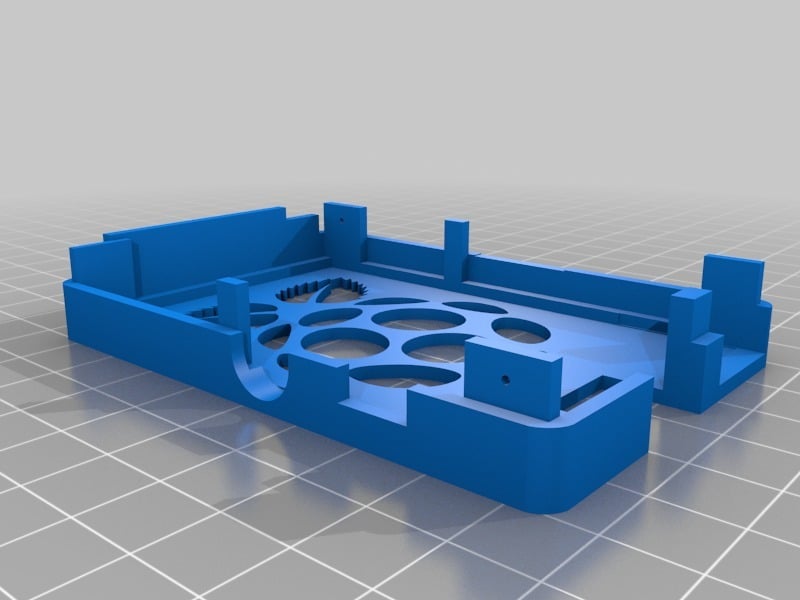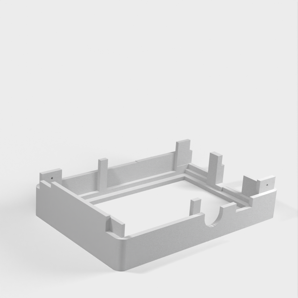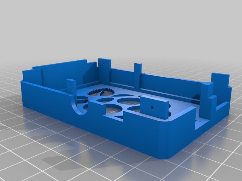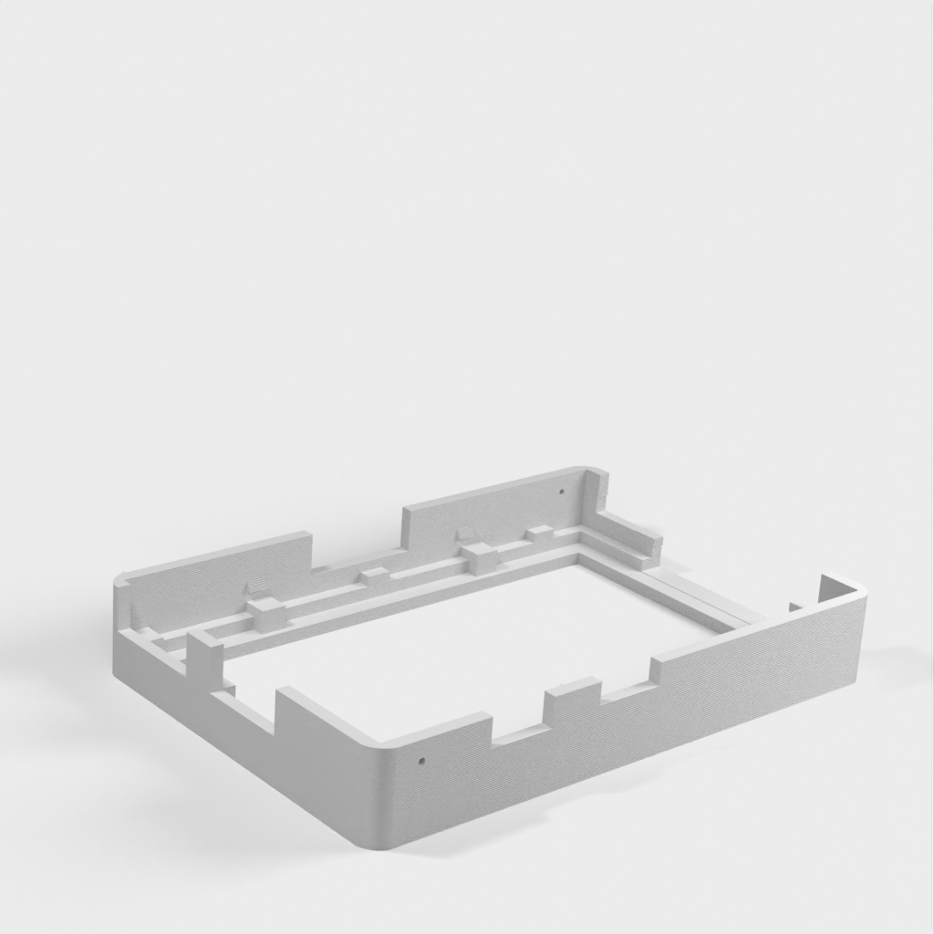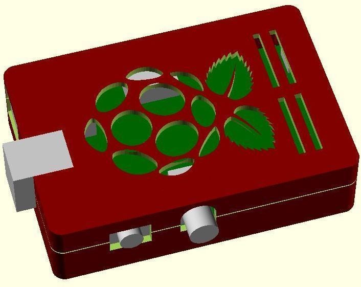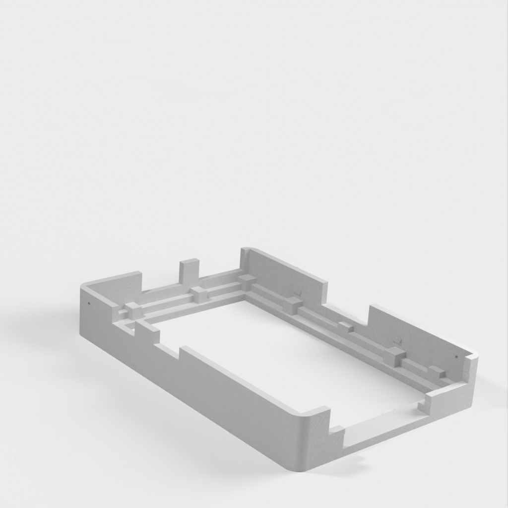 Dies ist ein Fall für den Raspberry Pi, einen Computer im Kreditkartenformat. Das Gehäuse ist mit mehreren Ebenen konzipiert und bietet Platz für Komponenten und GPIO-Anschlüsse. Indem wir bei den Löchern für die Komponenten einen kleinen Spielraum lassen, stellen wir sicher, dass diese immer passen. Es gibt auch die Option eines offenen Logos und eines Leiterplattenhalters.
