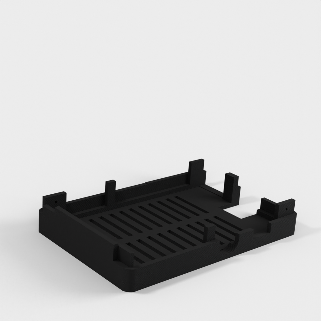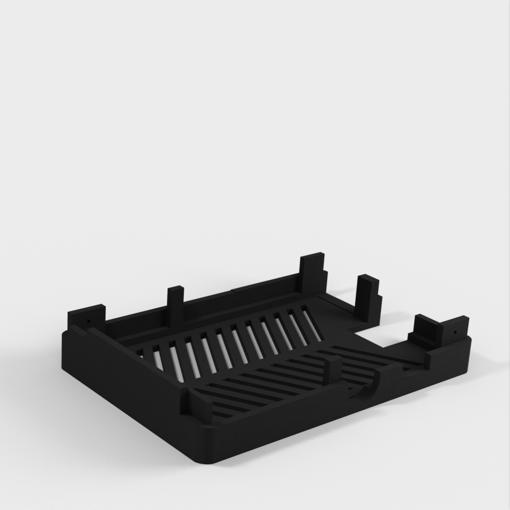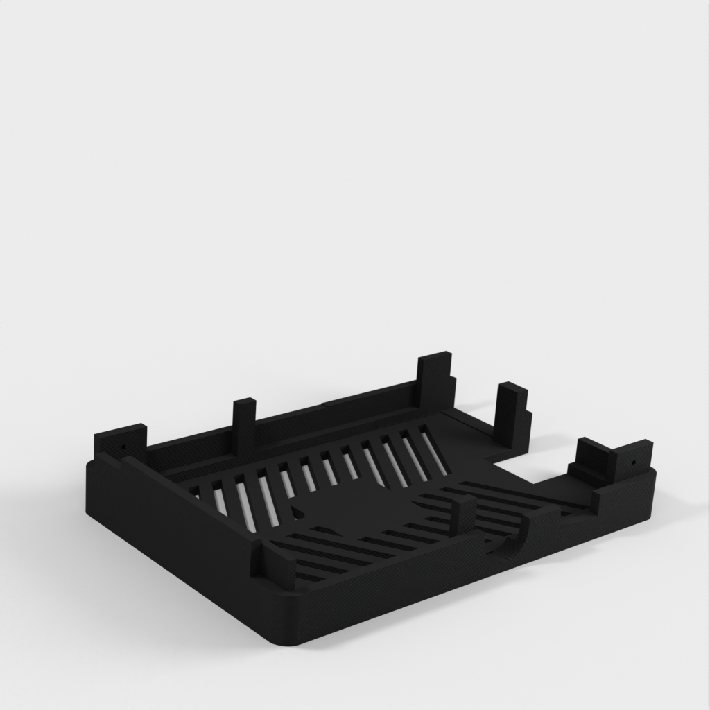 Zusätzlich zum Gehäuse wird auch ein Basishalter mitgeliefert, der einen eigenständigen Minimalrahmen für den Raspberry Pi darstellt. Weitere Teile der Unter- und Oberseite können je nach Bedarf zusammengebaut werden.
