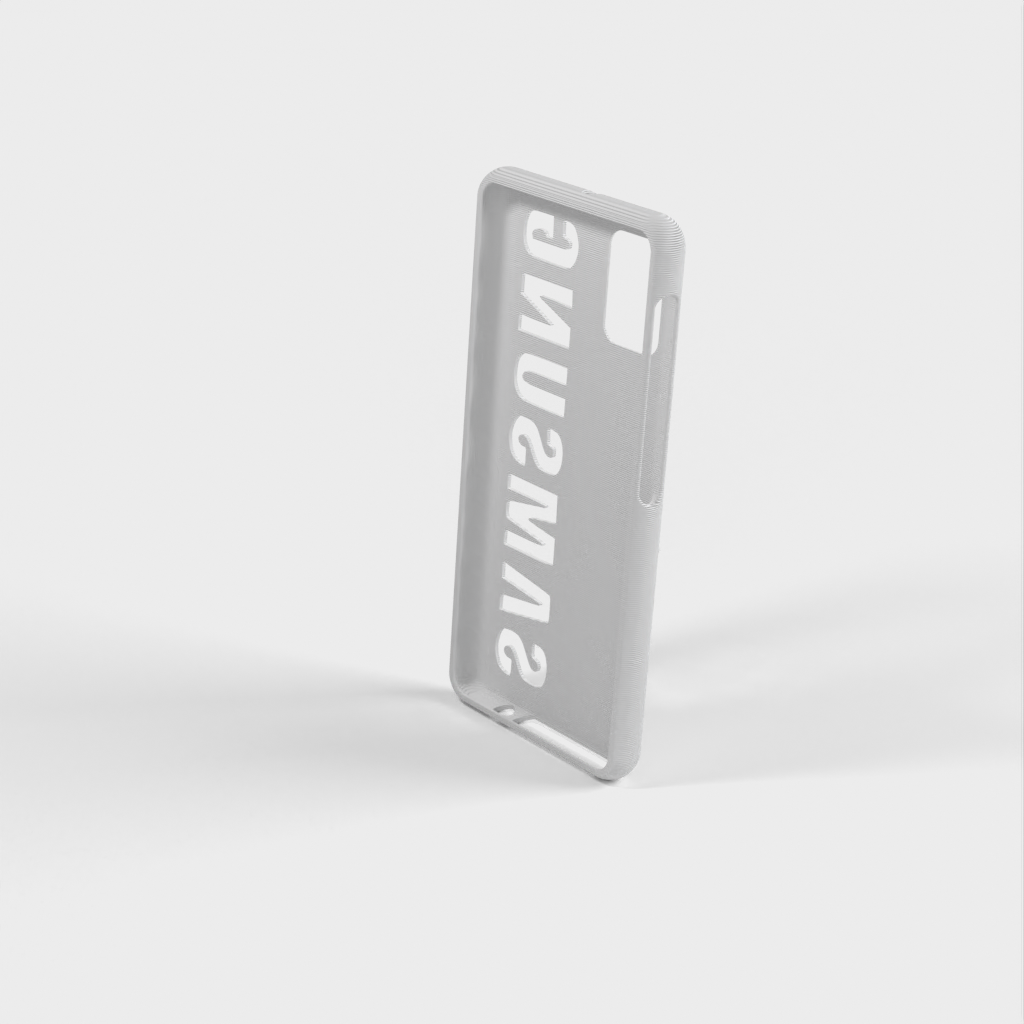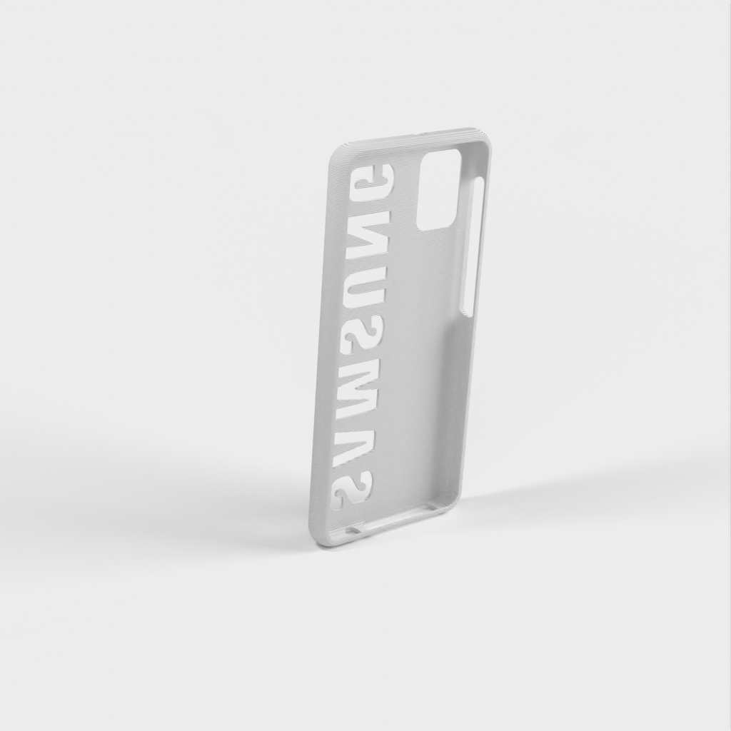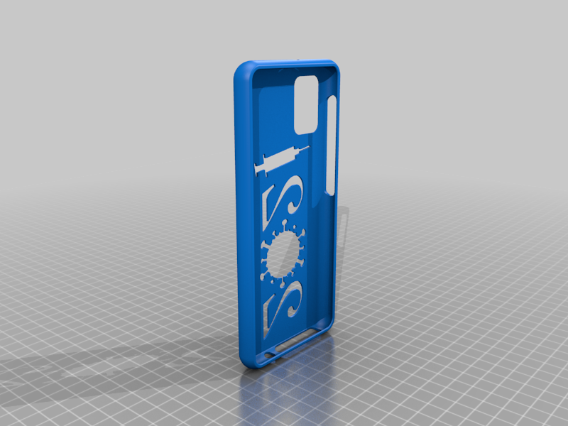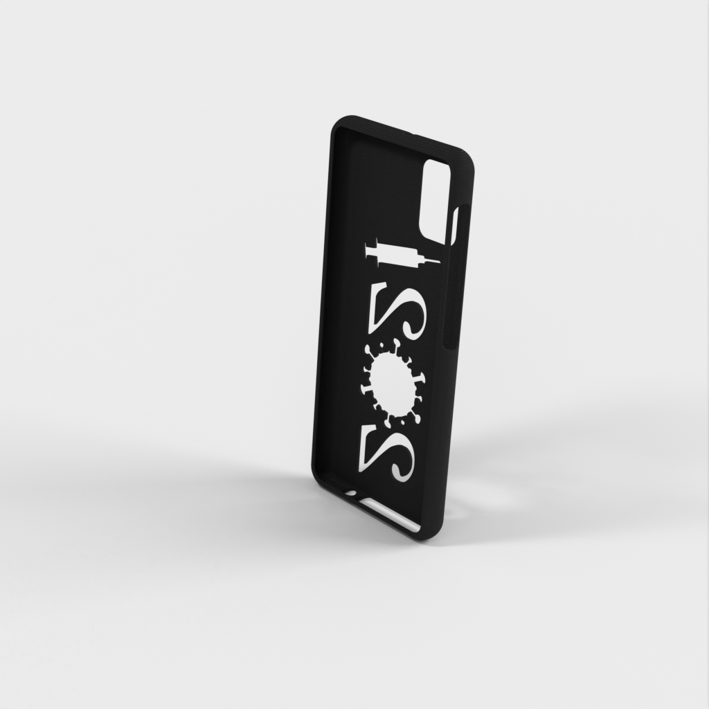 Eine Handyhülle für das Samsung Galaxy A31 a315. Die Hülle ist so konzipiert, dass sie perfekt um das Telefon passt, und es gibt Öffnungen für alle Tasten und Funktionen. Auf der Rückseite des Gehäuses befindet sich ein einzigartiges Design mit der Jahreszahl „2021“ in Form eines Virus und einer Spritze – ein Symbol der Covid-19-Impfung.