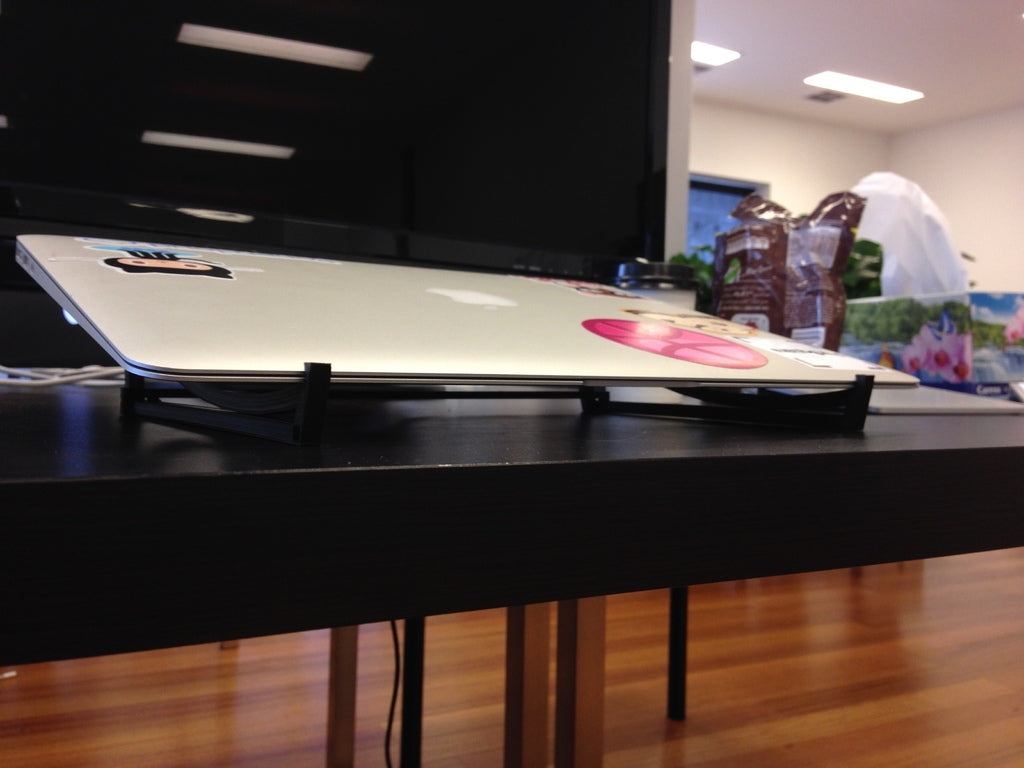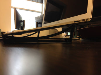 Der Ständer besteht aus drei separaten Teilen, darunter zwei Seitenteile und eine solide Querstrebe, die zusammen eine stabile Plattform bilden. Obwohl er speziell für das Macbook Air 13" entwickelt wurde, ist er äußerst flexibel und kann so eingestellt werden, dass er eine breite Palette von Laptops unterstützt, von kompakten 11"-Modellen bis hin zu größeren 15" -Macbook-Pro -Ständergeräten. Darüber hinaus sind in den Seitenteilen kleine Löcher integriert, die es Ihnen ermöglichen, bei Bedarf eine alternative Querstrebe einzusetzen (die Querstrebe ist nicht im Lieferumfang enthalten). Mit diesem Ständer erhalten Sie eine funktionale und vielseitige Lösung für Ihren digitalen Alltag.