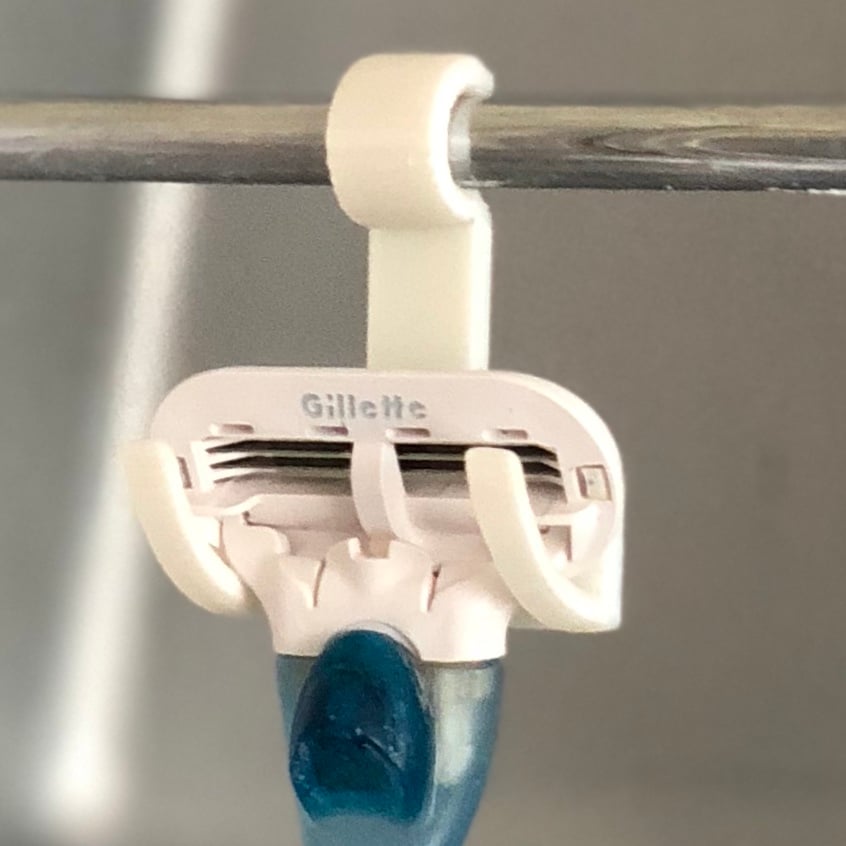 Rasiererhalter zum Festklemmen an einer Stange mit einem Durchmesser von ca. 7,8 mm. Dieser Halter dient zur sicheren Aufbewahrung Ihres Rasierers in der Dusche und verhindert, dass er herunterfällt.
