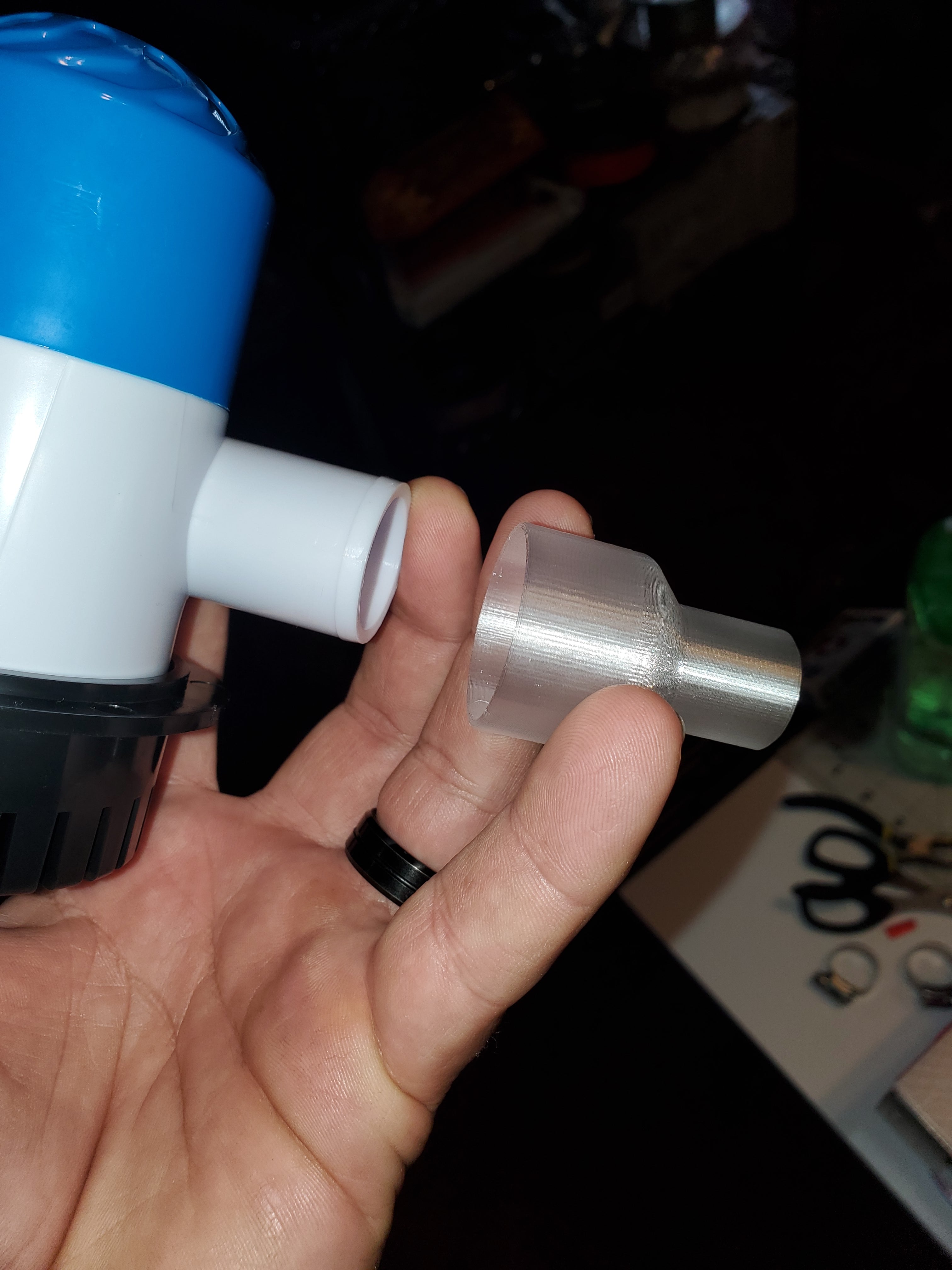 Dieser Adapter reduziert den Auslass Ihrer Bilgenpumpe von 1 Zoll auf 3/4 Zoll. Er ermöglicht die Anpassung Ihrer Bilgenpumpe an kleinere Schläuche oder spezielle Systeme, was bei beengten Platzverhältnissen oder bei Bedarf eines präzisen Wasserflusses von Vorteil sein kann. Der Reduzieradapter eignet sich besonders für den maritimen Einsatz, z. B. auf Booten, und für Wasseraufbereitungssysteme wie motorisierte Schleusenkästen. Für optimale Haltbarkeit und eine sichere Verbindung empfiehlt es sich, diesen Reduzieradapter aus PETG zu drucken und mit einem geeigneten wasserfesten Klebstoff wie E6000, Shoegoo oder Silikon zu befestigen. Dies gewährleistet eine zuverlässige Funktion auch in anspruchsvollen, feuchten Umgebungen.