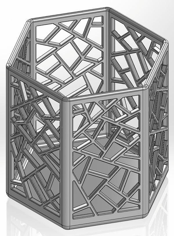 Sechseckiger Stifthalter mit rechteckigen Mustern