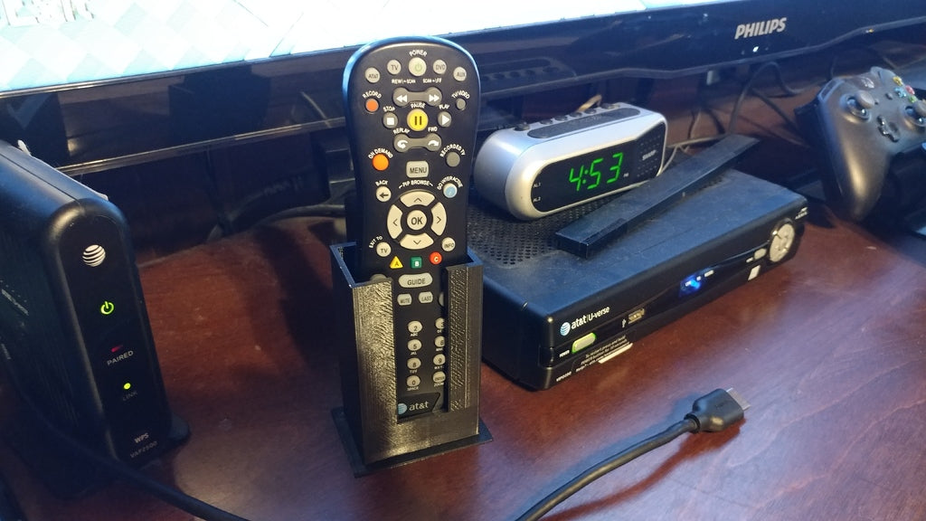 Sind Sie es leid, ständig nach Ihrer U-Verse-Fernbedienung zu suchen? Dieser einfache und praktische Halter gibt Ihrer Fernbedienung einen festen Platz in Ihrem Zuhause. Platzieren Sie ihn neben Ihrem Fernseher, damit die Fernbedienung immer griffbereit ist und nicht verloren geht. Der Halter schafft Ordnung und trägt zu einem übersichtlicheren Medienbereich bei, sodass Sie Ihre Fernbedienung bei Bedarf leicht finden. Er ist eine diskrete Lösung, die zu einem aufgeräumten und funktionalen Ambiente in Ihrem Wohnzimmer beiträgt.
