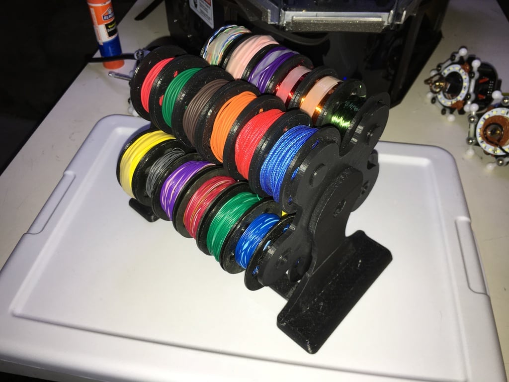 Das Design ermöglicht die Montage an der Wand und schafft so wertvolle Arbeitsfläche, beispielsweise in der Werkstatt, im Makerspace oder im Hobbyraum. Dank der Drehfunktion lässt sich die gewünschte Kabelrolle schnell und einfach finden und auswählen. Als praktischer Kabelorganizer hilft er, den Überblick über Ihre Materialien zu behalten und dient als effektiver Kabelhalter für verschiedene Projekte.