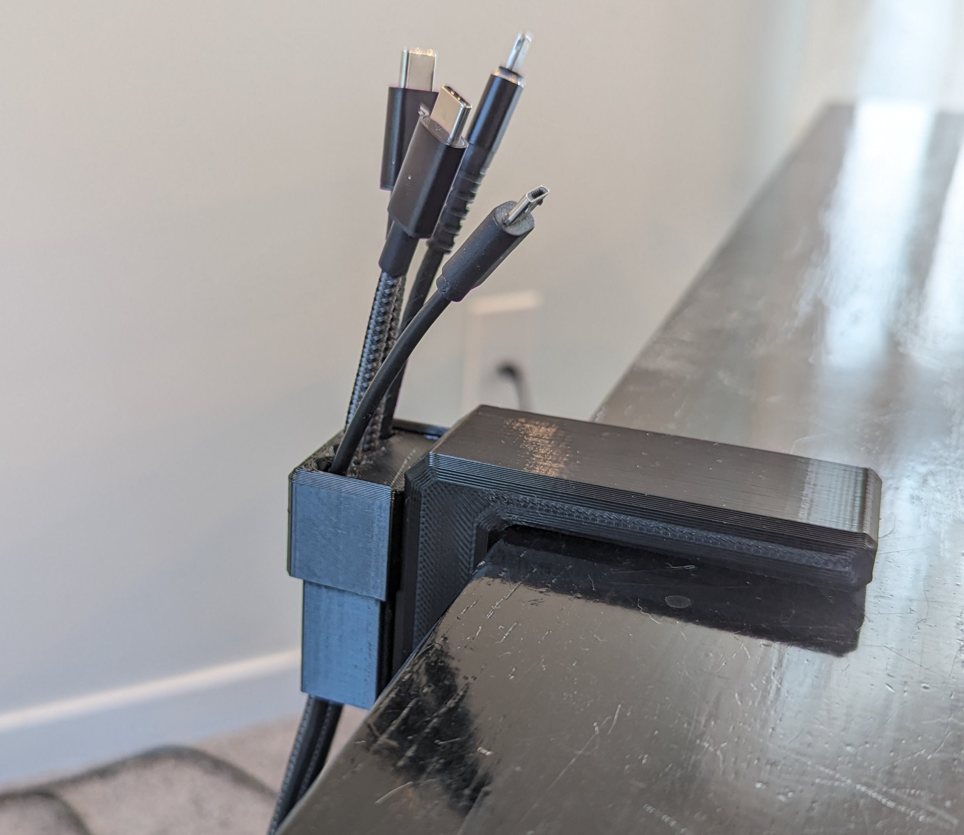 Dieses modulare Kabelmanagementsystem wurde entwickelt, um den Kabelsalat auf Ihrem Schreibtisch effektiv zu beseitigen. Das System besteht aus zwei Teilen, die sich problemlos in ein vorhandenes Tischklemmensystem integrieren lassen und so eine robuste Kabelmanagementlösung schaffen. Ein Teil wird an der Klemme befestigt und sorgt für Ordnung während der andere Teil als Halterung dient und verhindert, dass Kabel herausfallen.